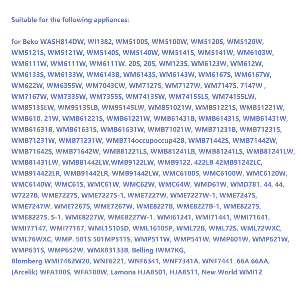 Anwendbar für folgende Geräte: Beko WASH814DW, WI1382, WM5100S, WM5100W, WM5120S, WM5120W, WM5121S, WM5121W,