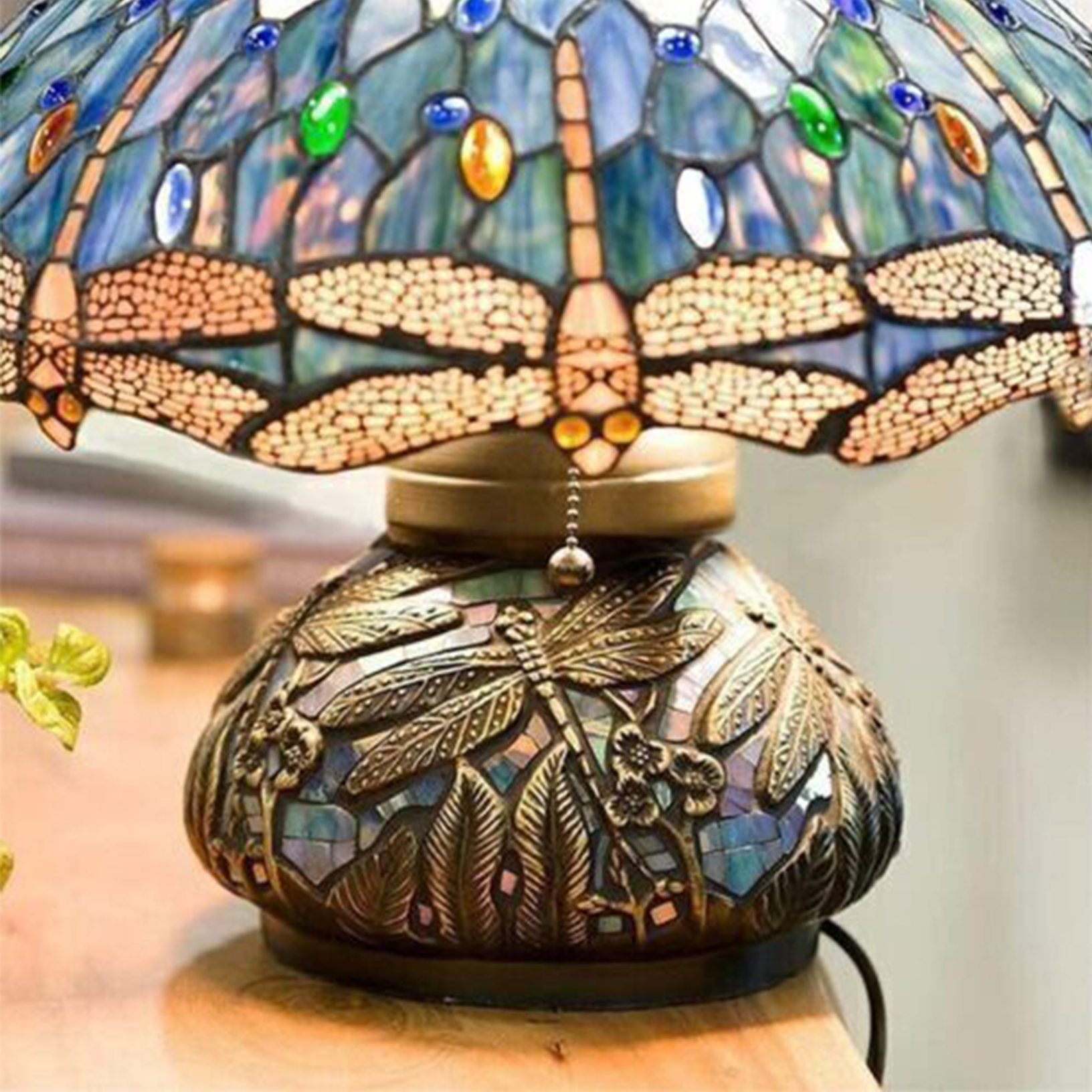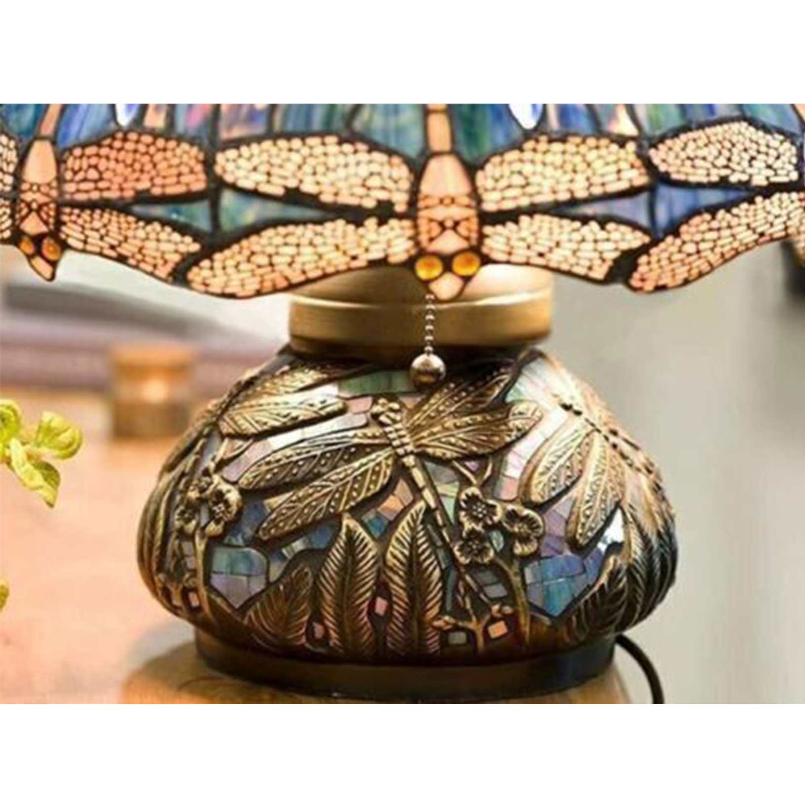 Lampe de table lumineuse en vitrail de style rétro, motif libellule, accent vintage