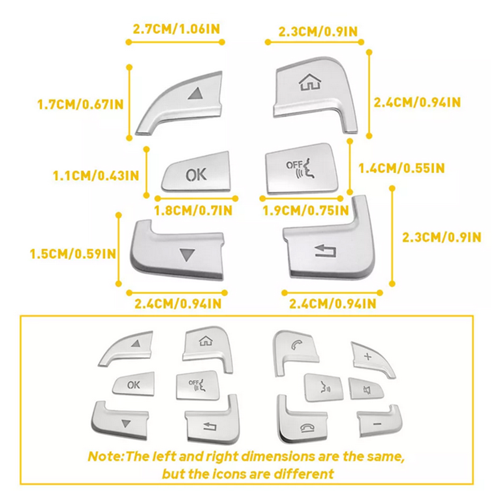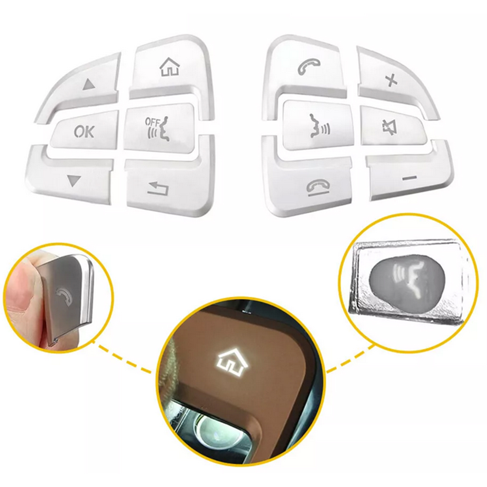 12 x garnitures argentées pour boutons de volant