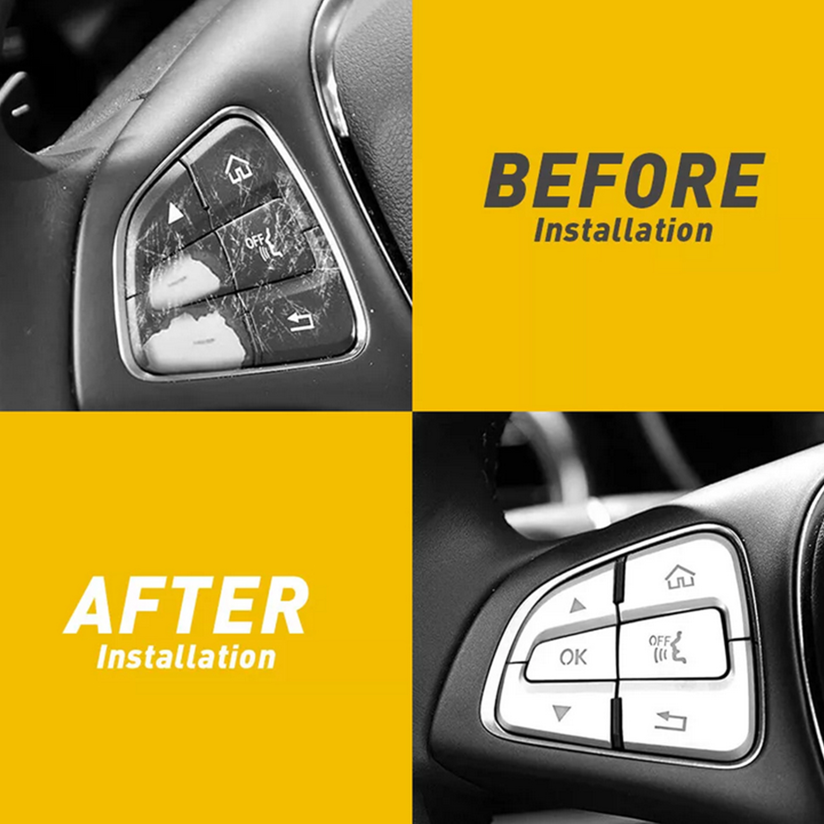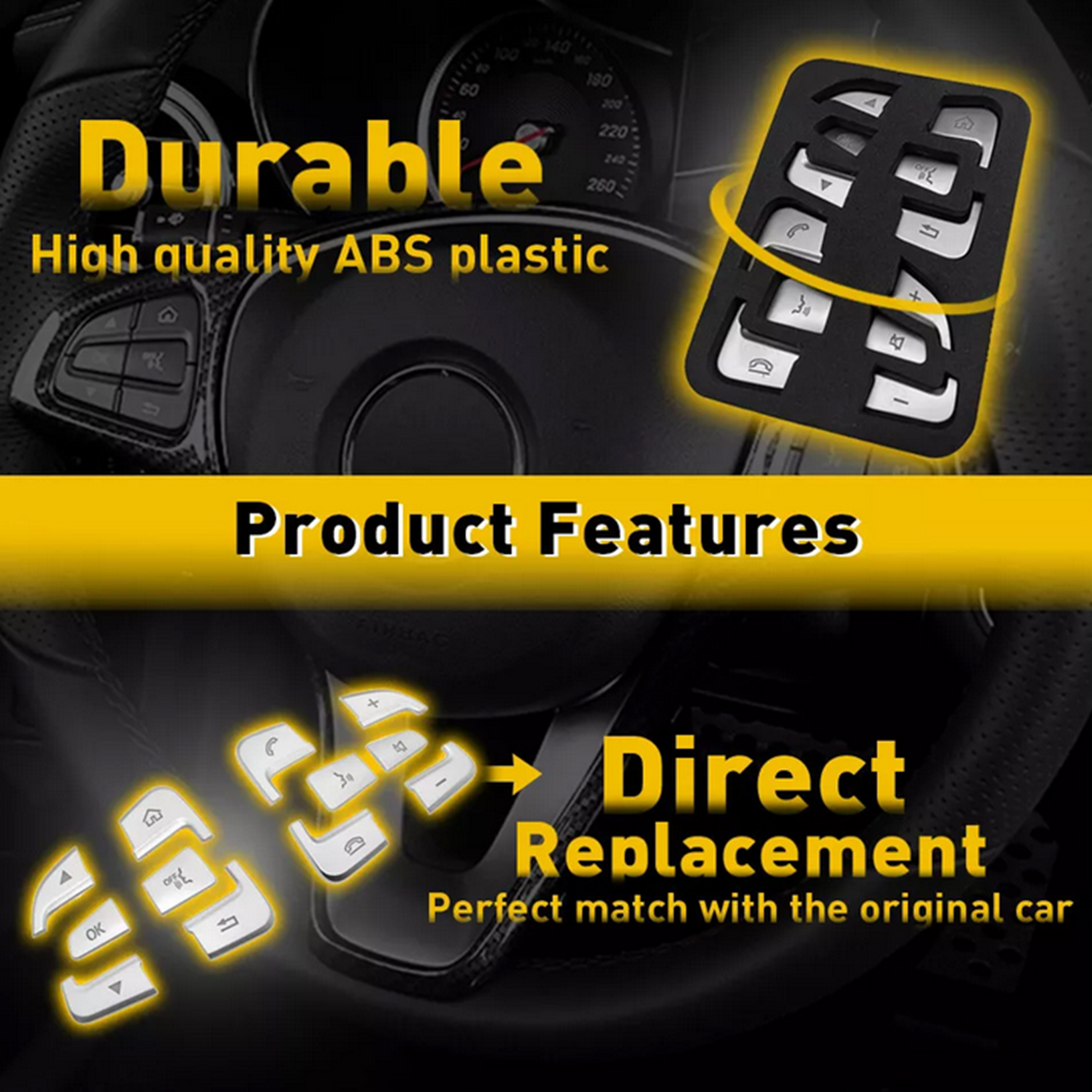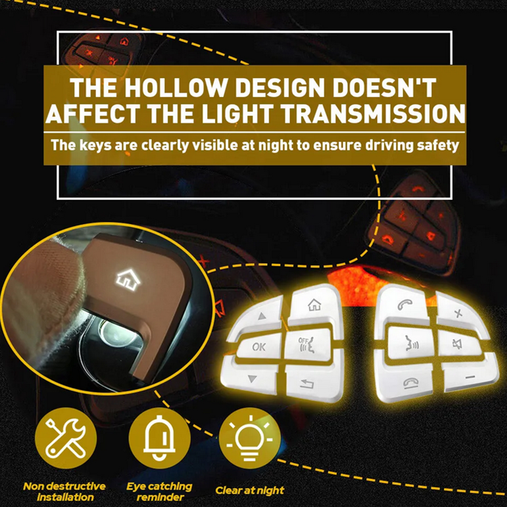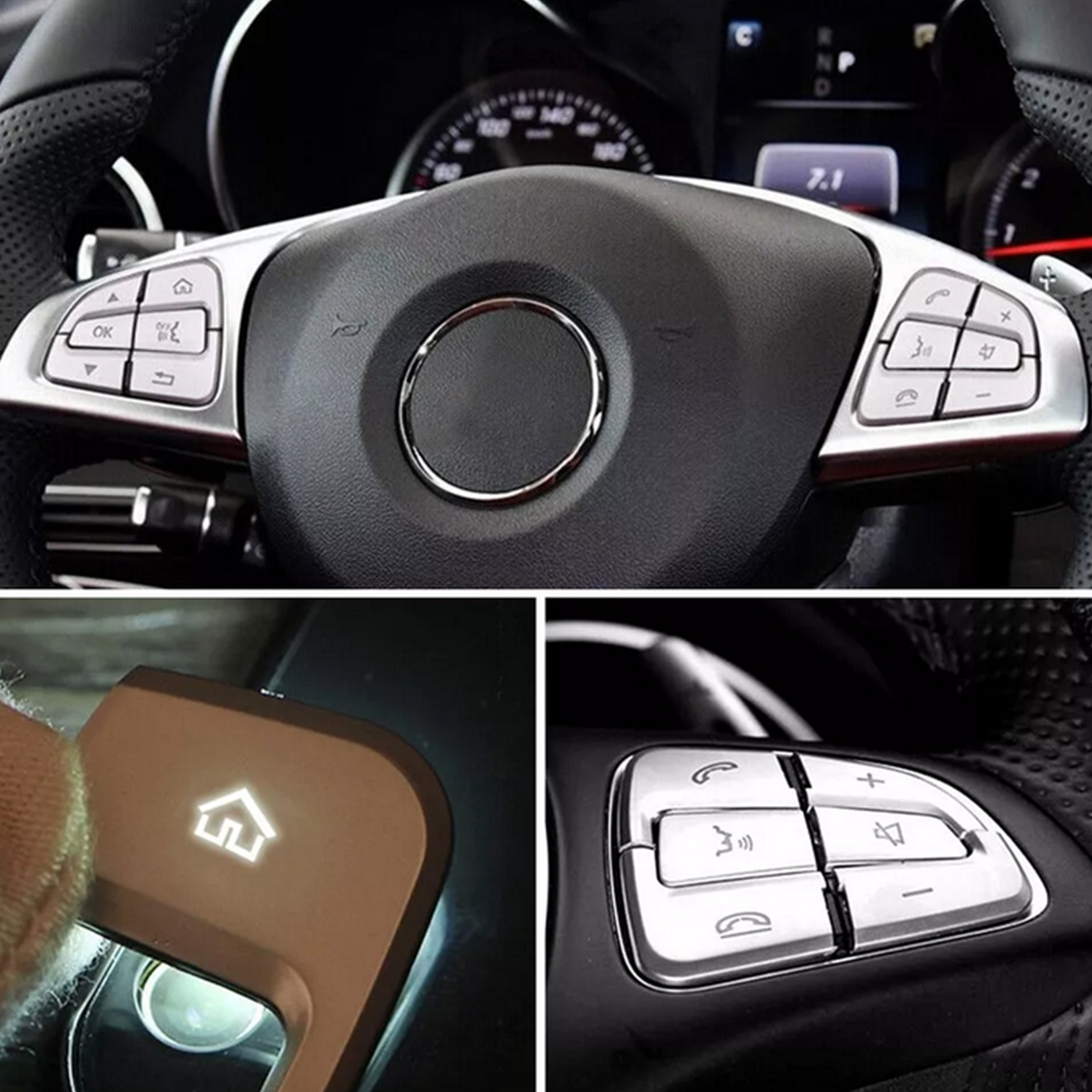 La garniture du bouton du volant avec une conception auto-adhésive vous permet de coller facilement à la voiture.