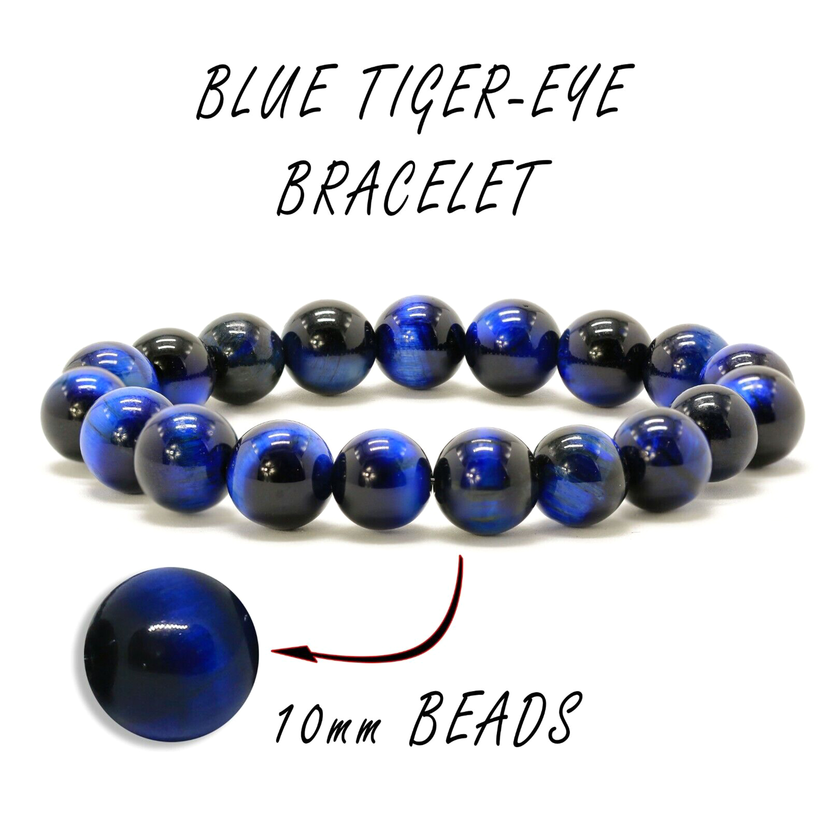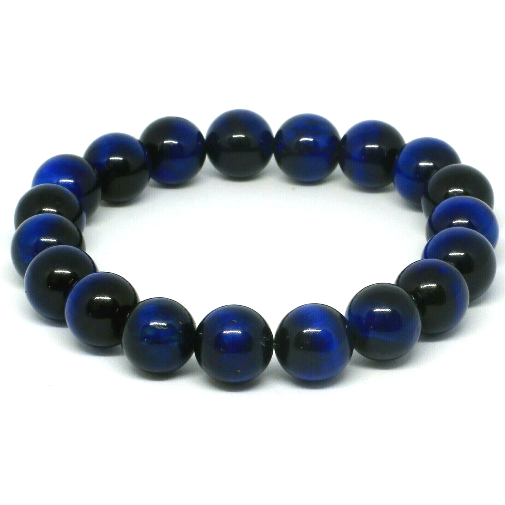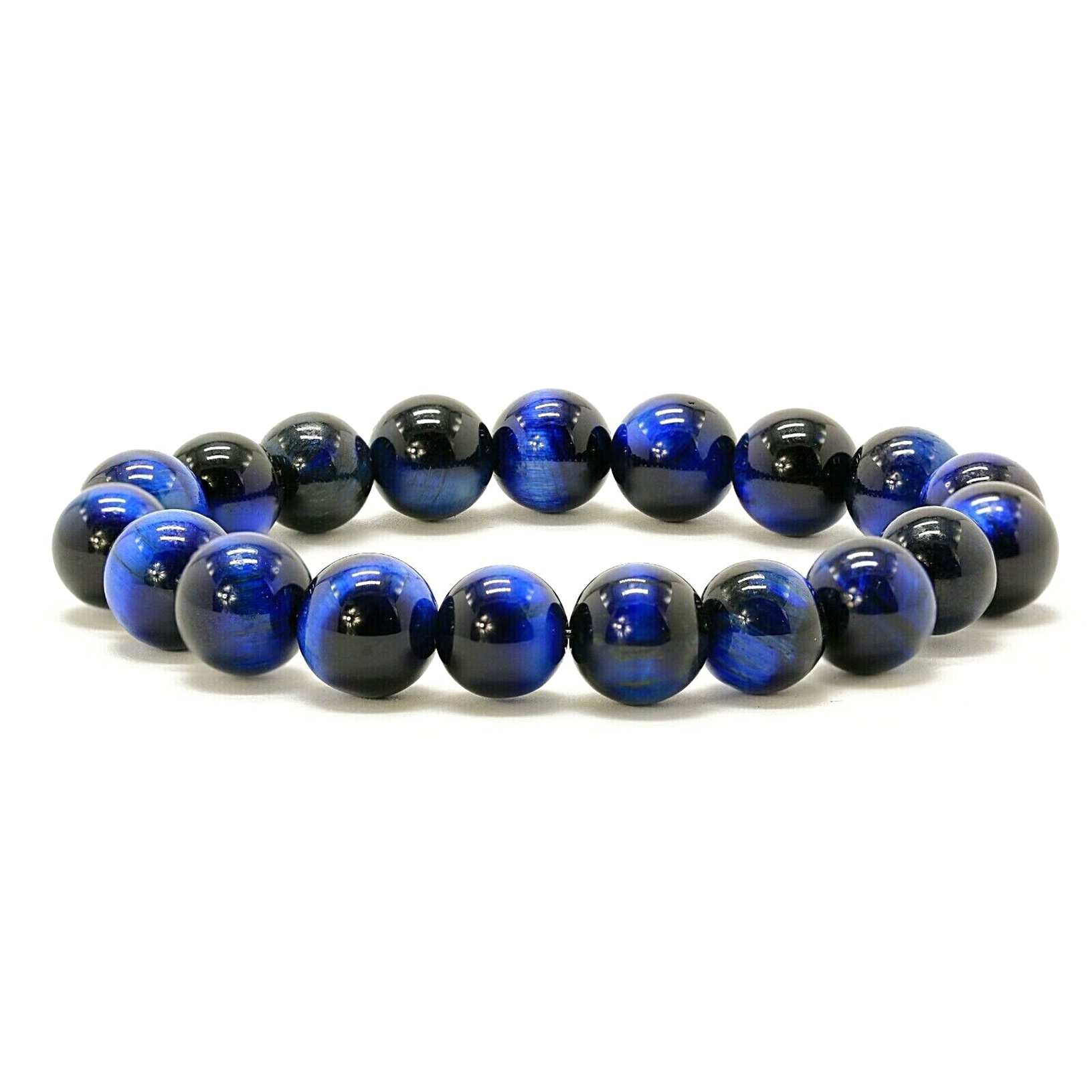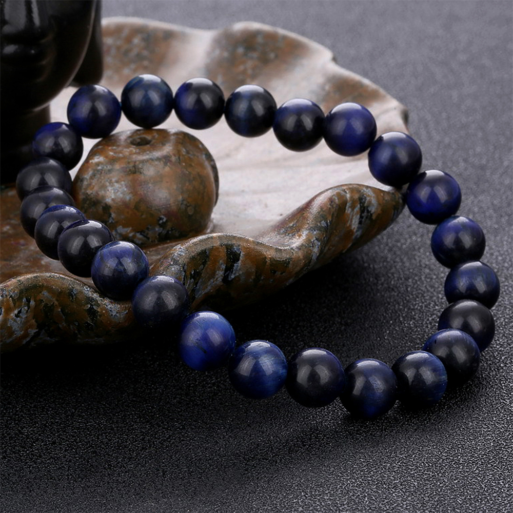 10mm/0.39" Bracelet Perle Oeil de Tigre Bleu Chakra Pierres pour Homme et Femme