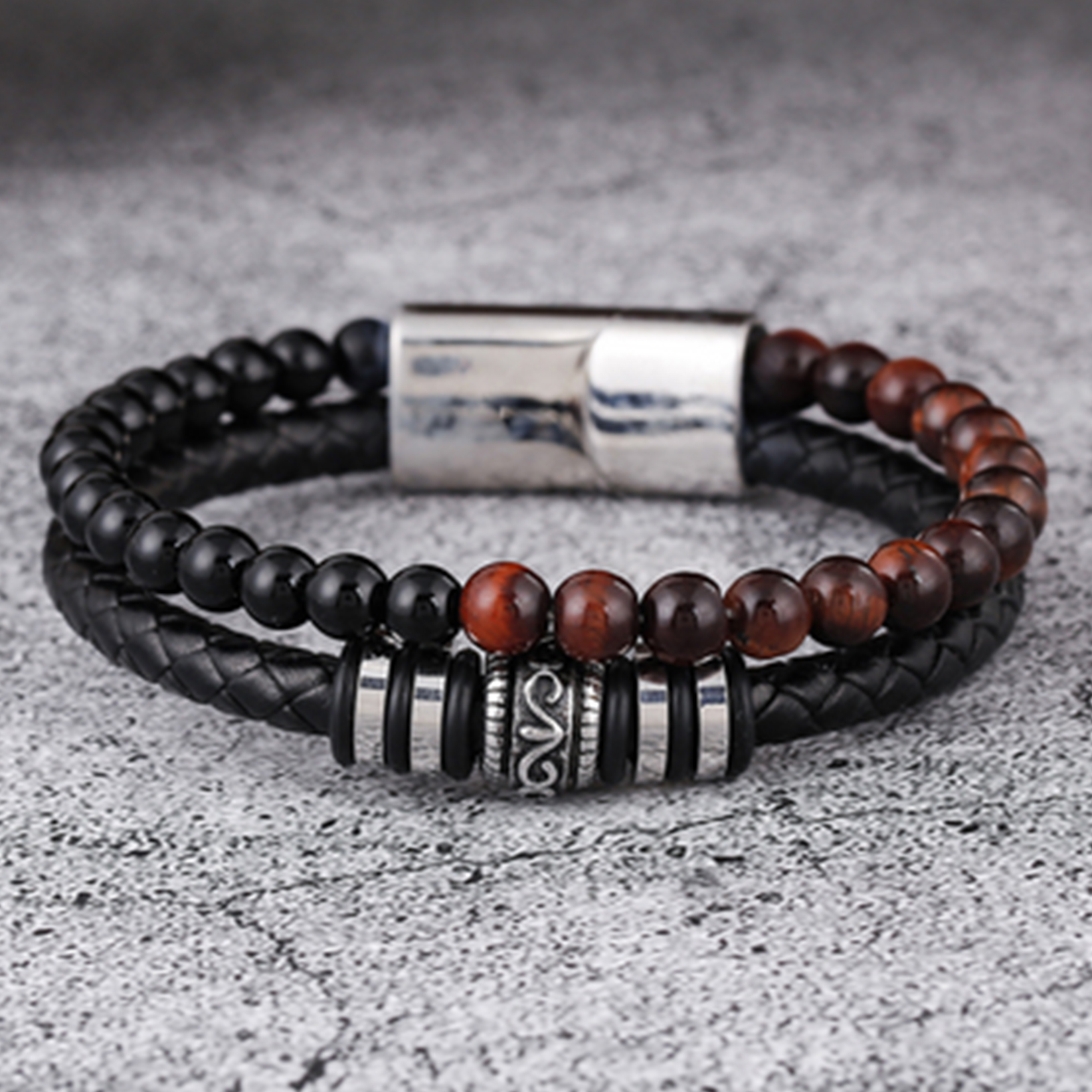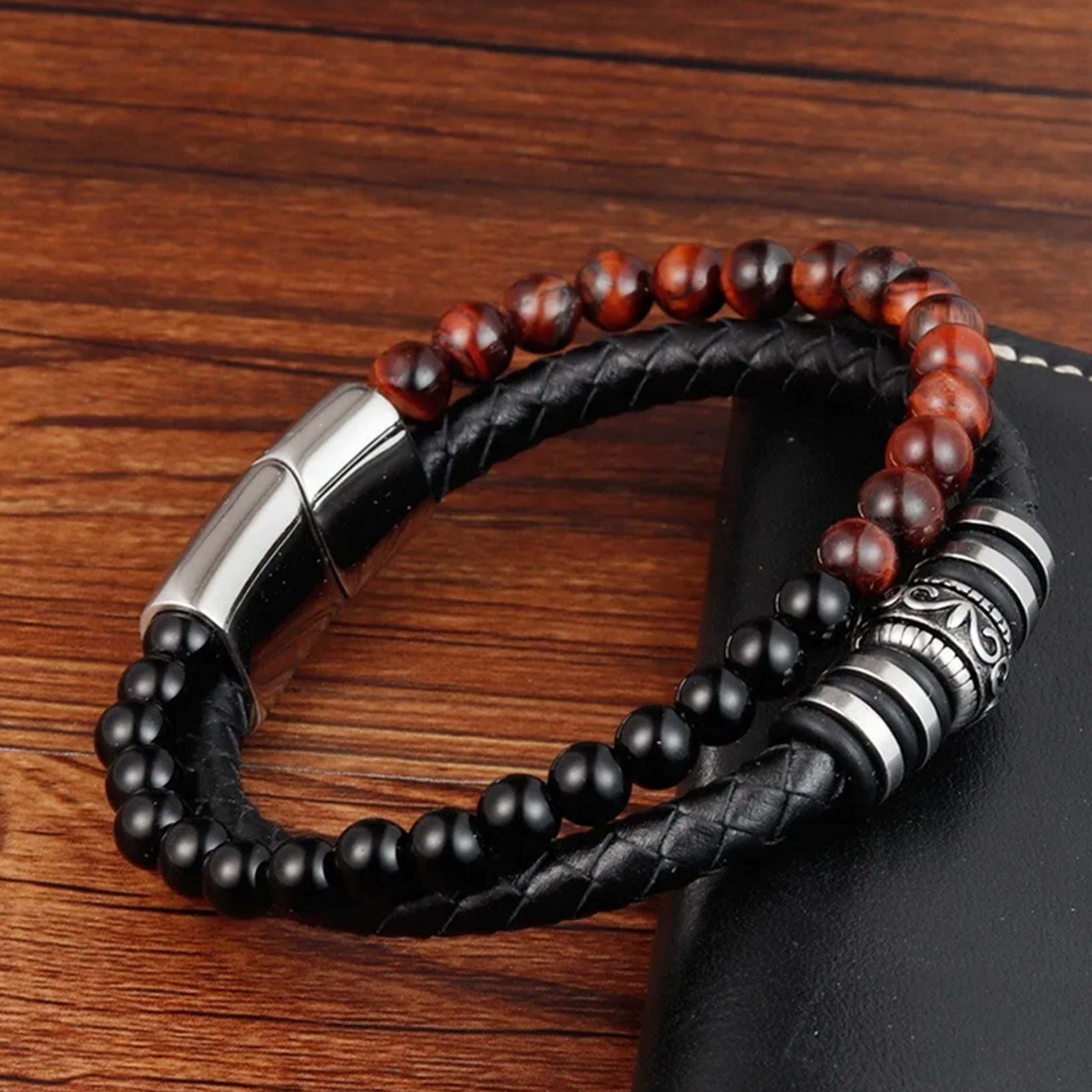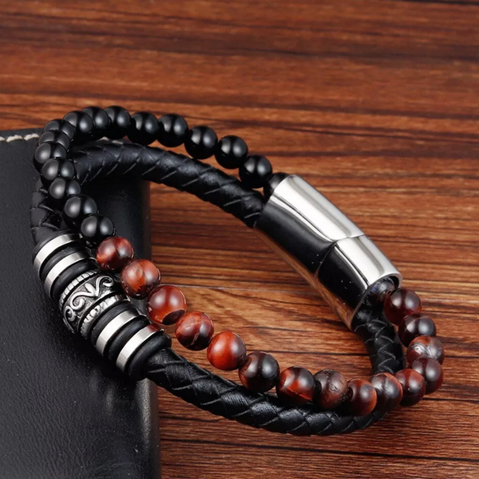 Matériaux : Obsidienne, Œil de tigre