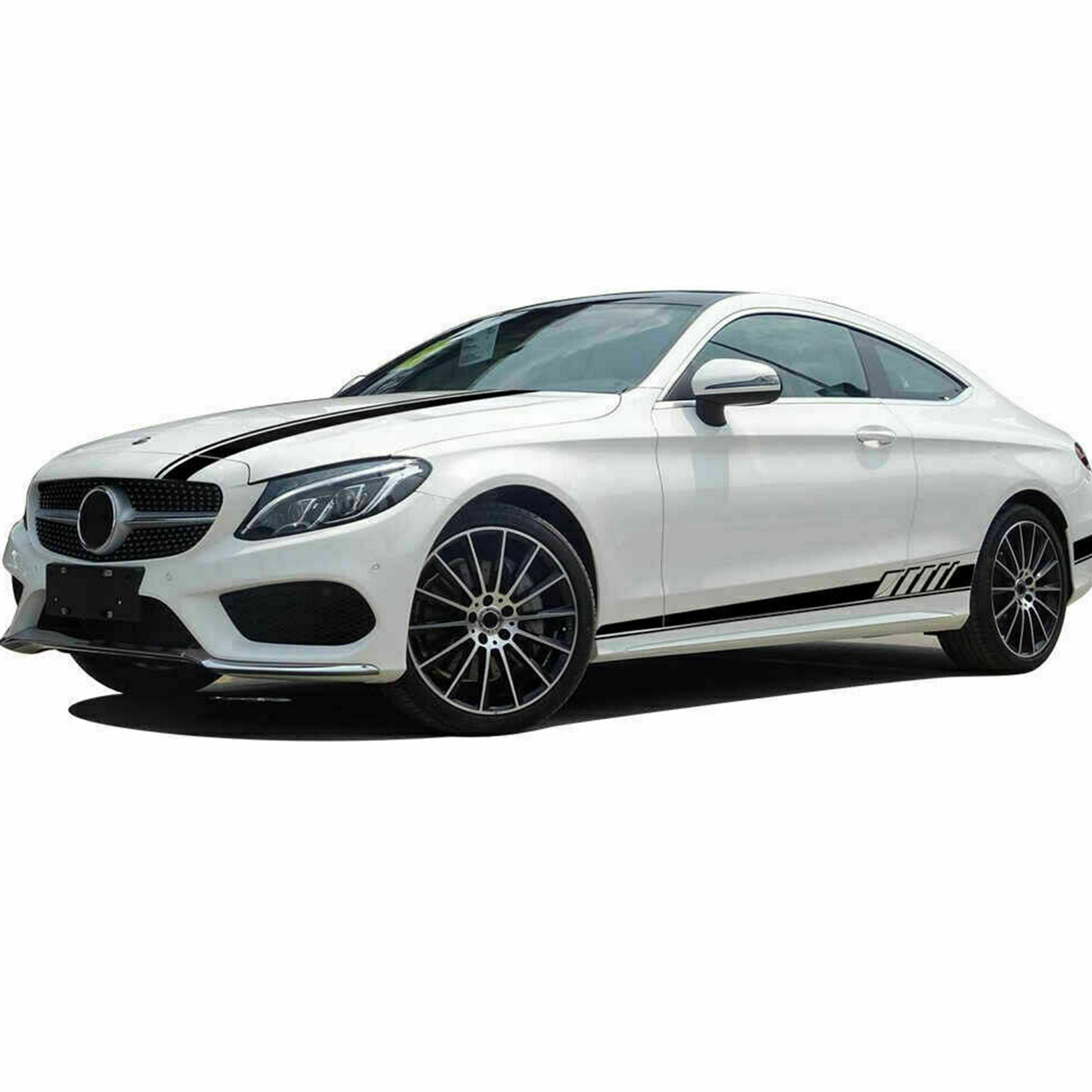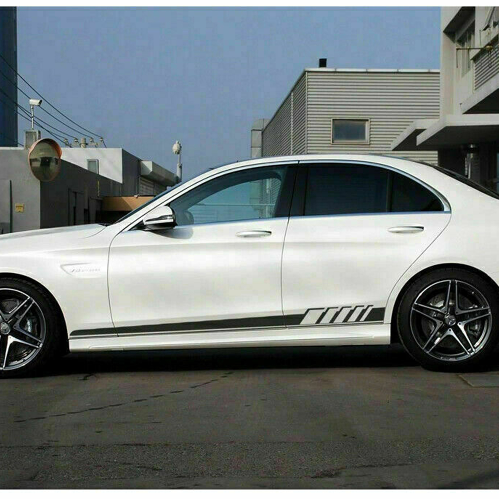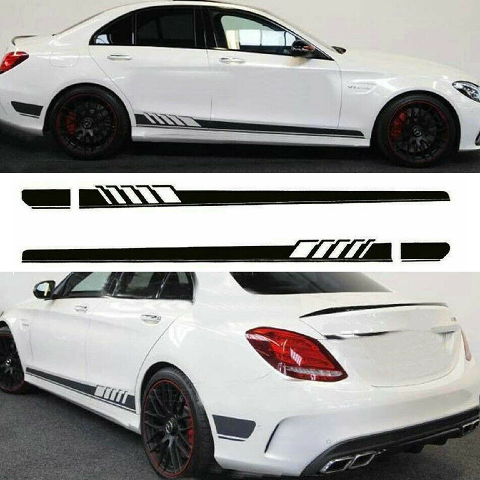 Contenu de l'emballage : 2 autocollants de jupe latérale de style AMG prédécoupés (gauche et droite) pour Mercedes-Benz.