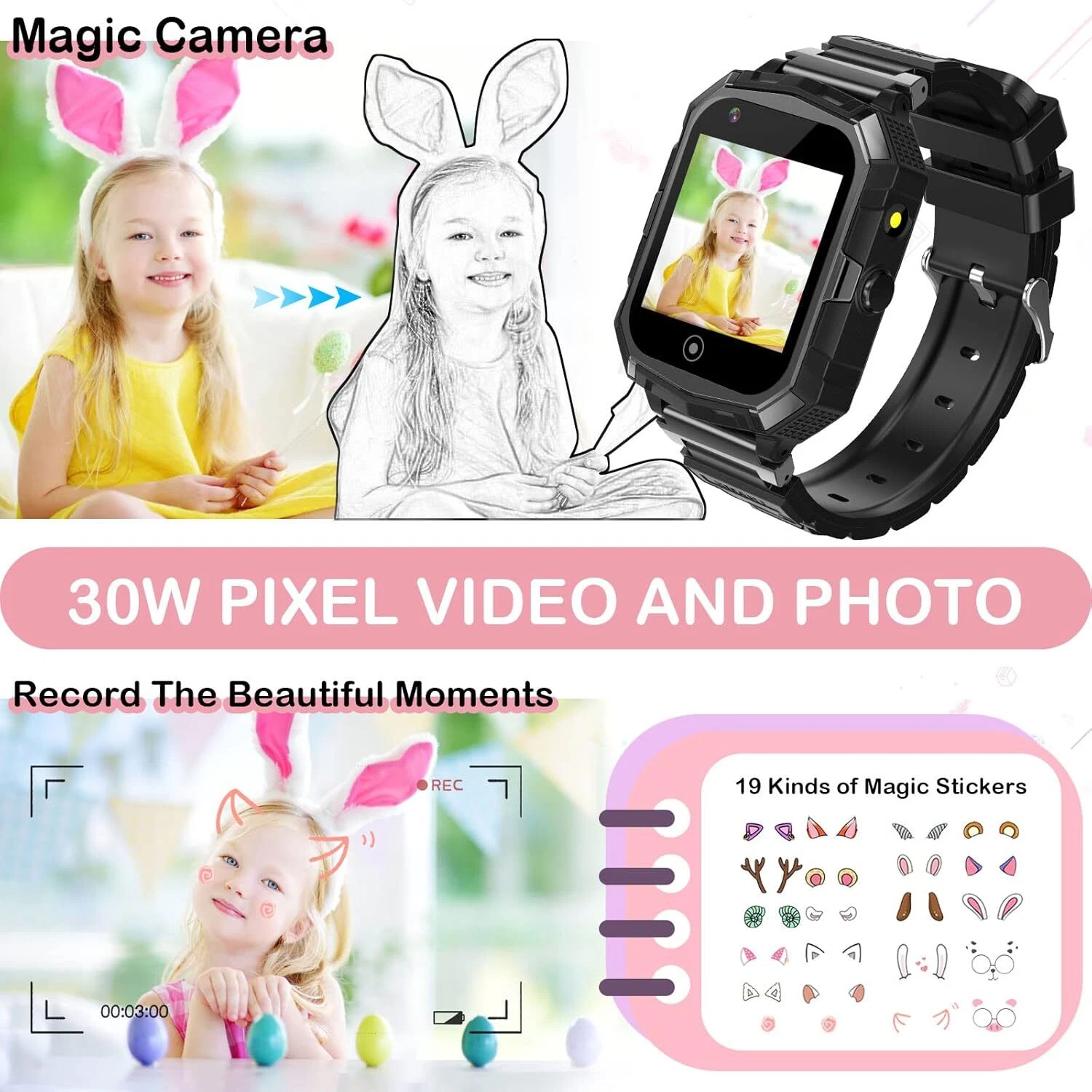 【Multi-function】Fully function smartwatch for boys Girl with Phone Call, GPS Location, SOS, SMS Message, Flashlight, Camera,Photo album, Alarm Clock, Remote Power Off,Classroom Mode,Safety Fence,Muti-Language ect function.Perfect Christmas,birthday gift for children,boys & girls,students.
