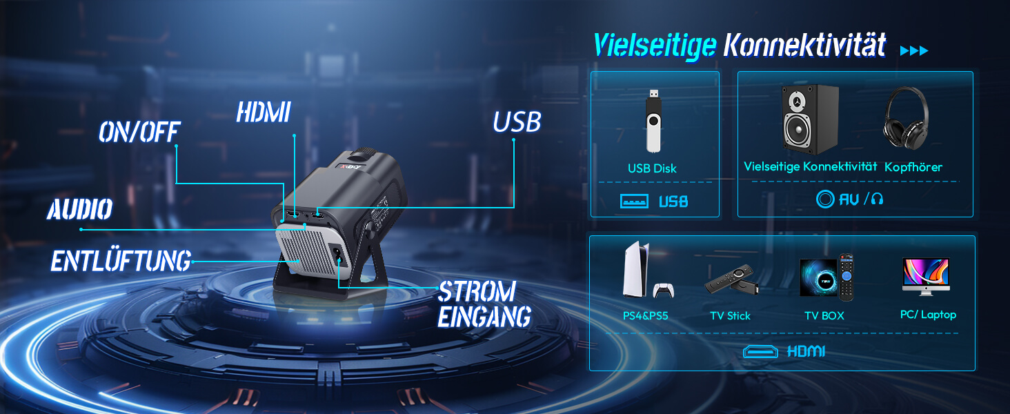 【4K-Unterstützung, nativer 720P Full HD-Projektor, hohe Helligkeit】 |
