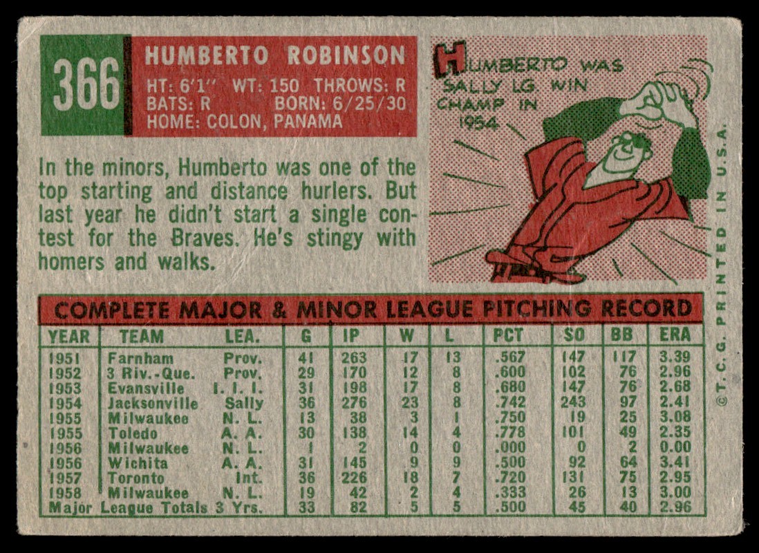 1959 Topps Humberto Robinson Milwaukee Braves #366