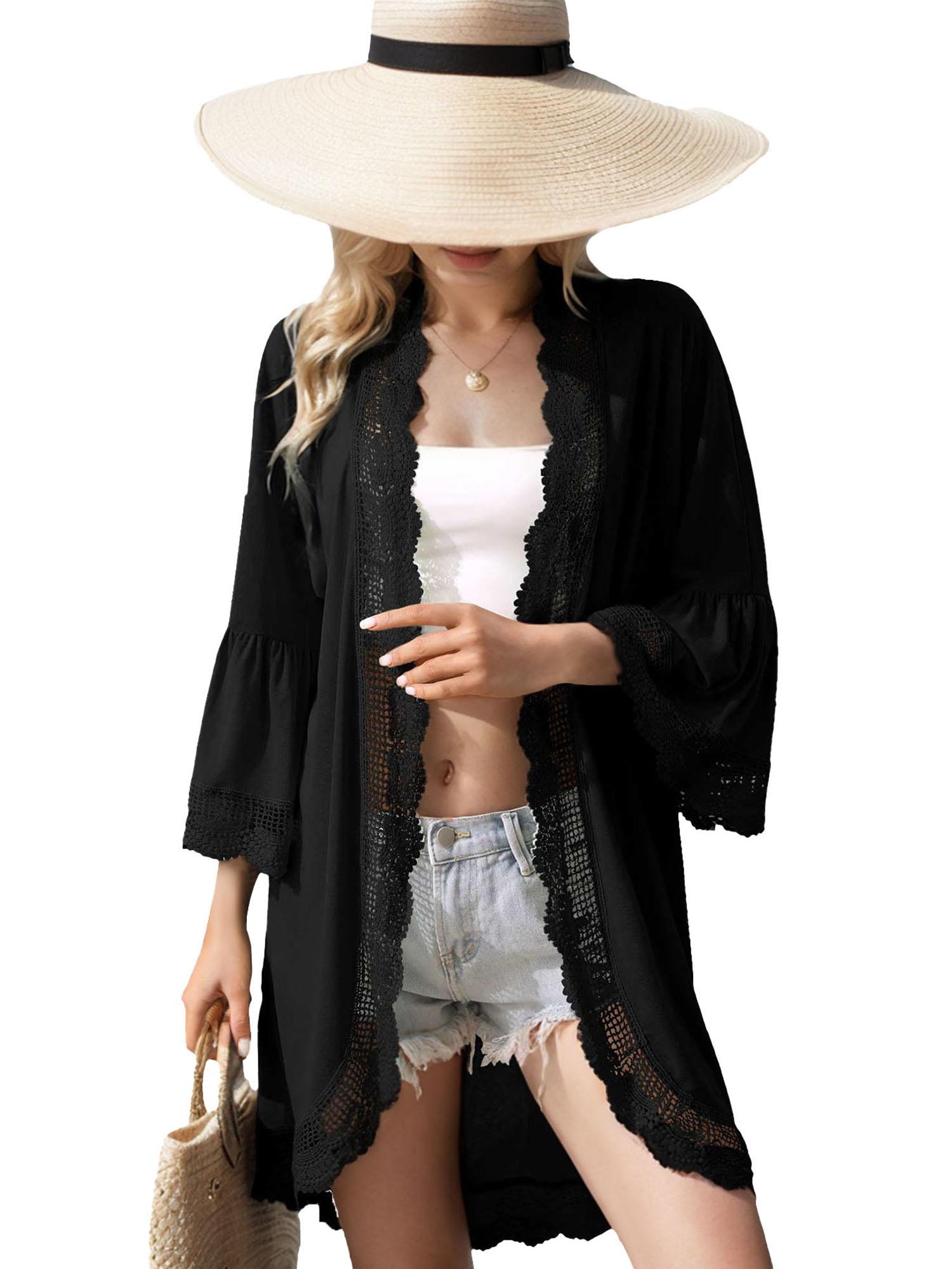 Chic and Versatile Design: This kimono cardigan features a 3/4 ruffle sleeve with delicate lace and crochet details, making it a stylish addition to any outfit.