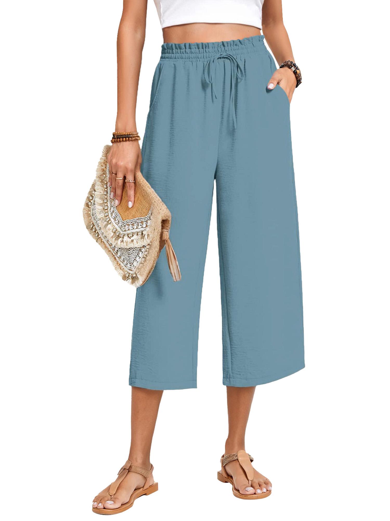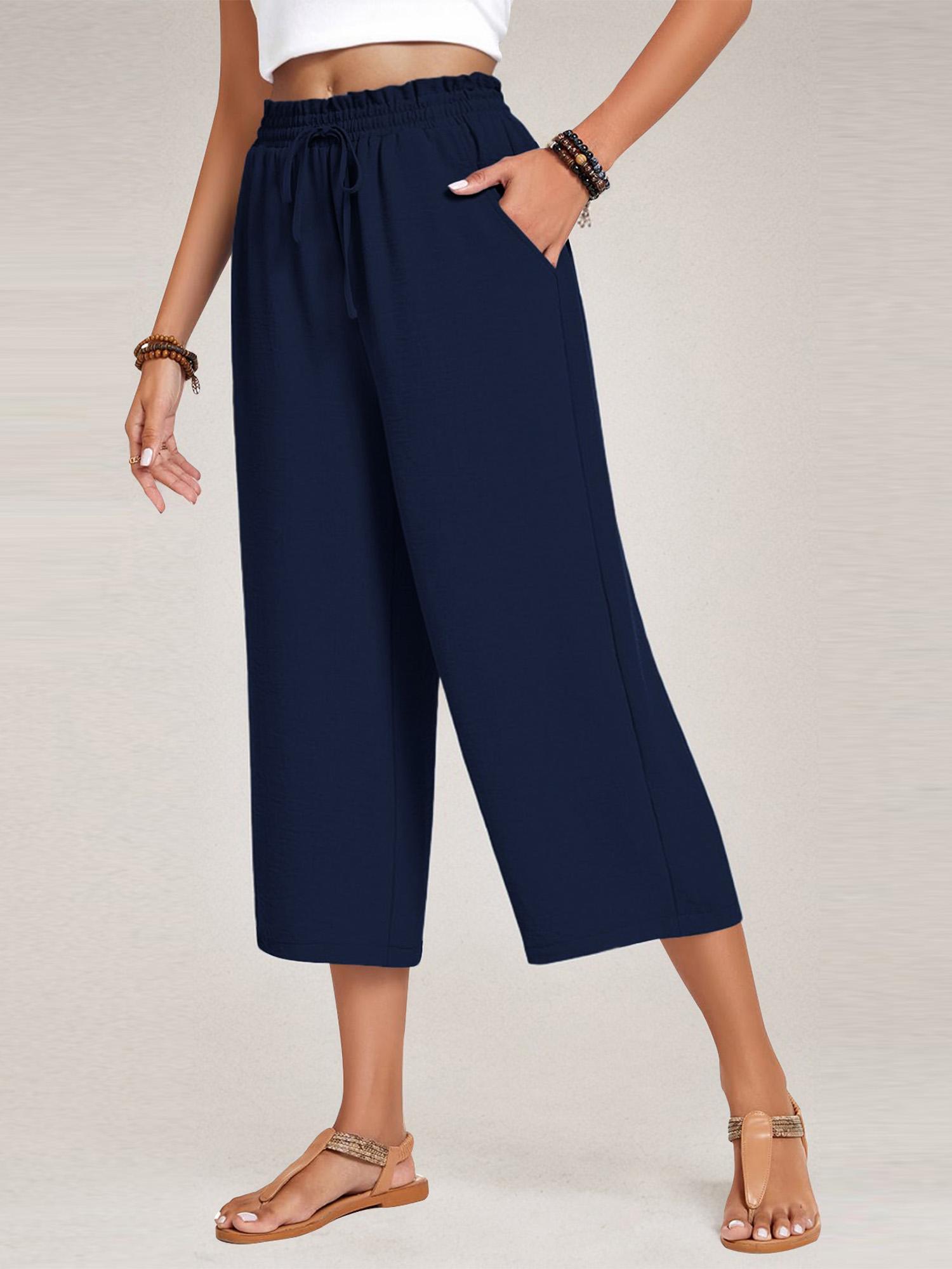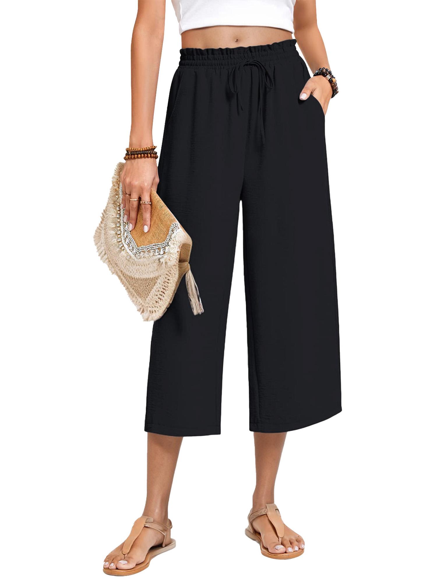 Womens Capri Pants Loose High Waisted Wide Leg Lounge Pants Drawstring Pants with Pockets