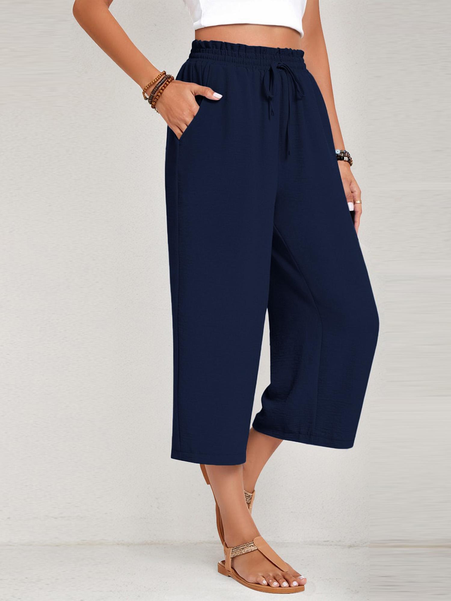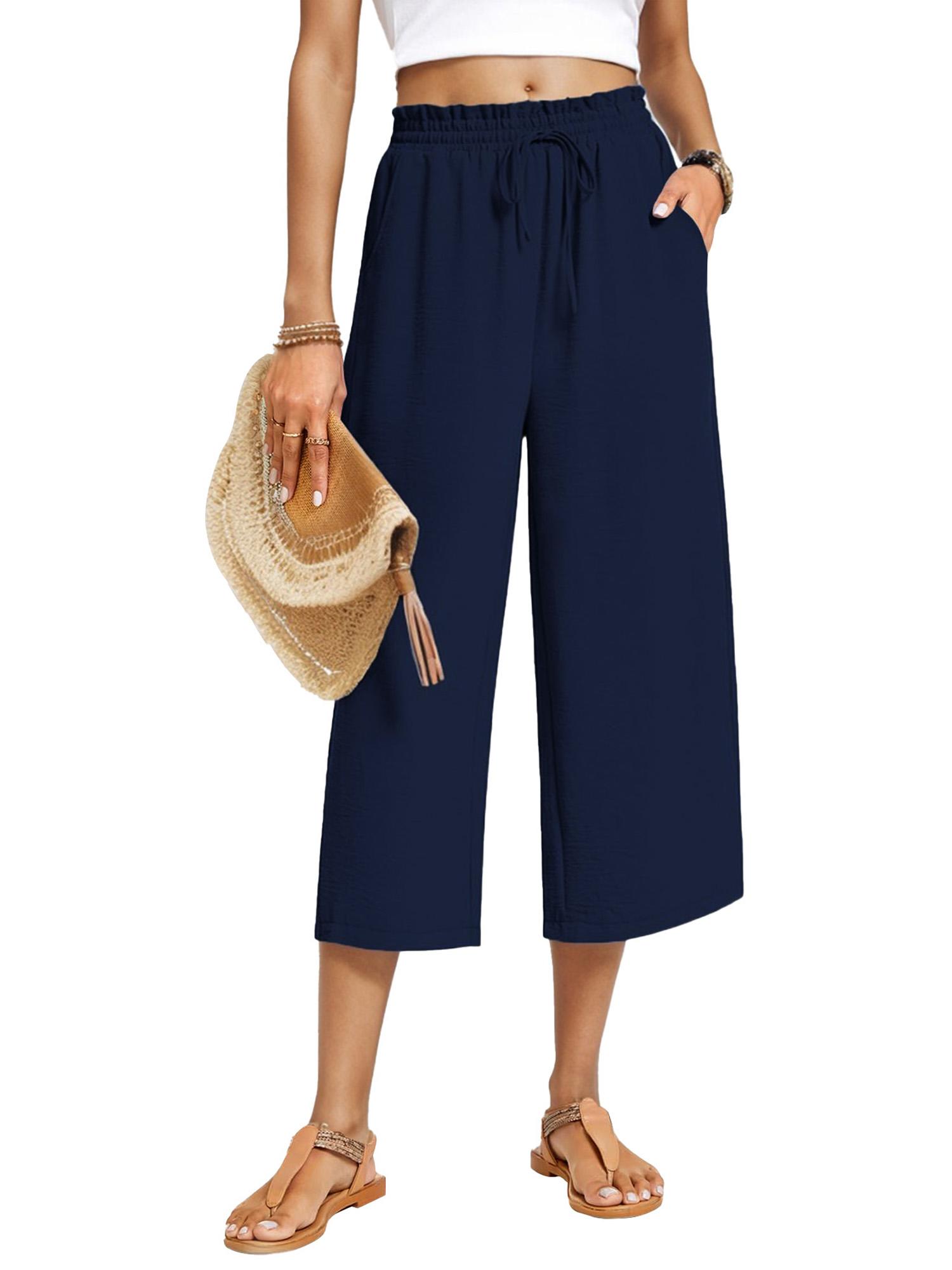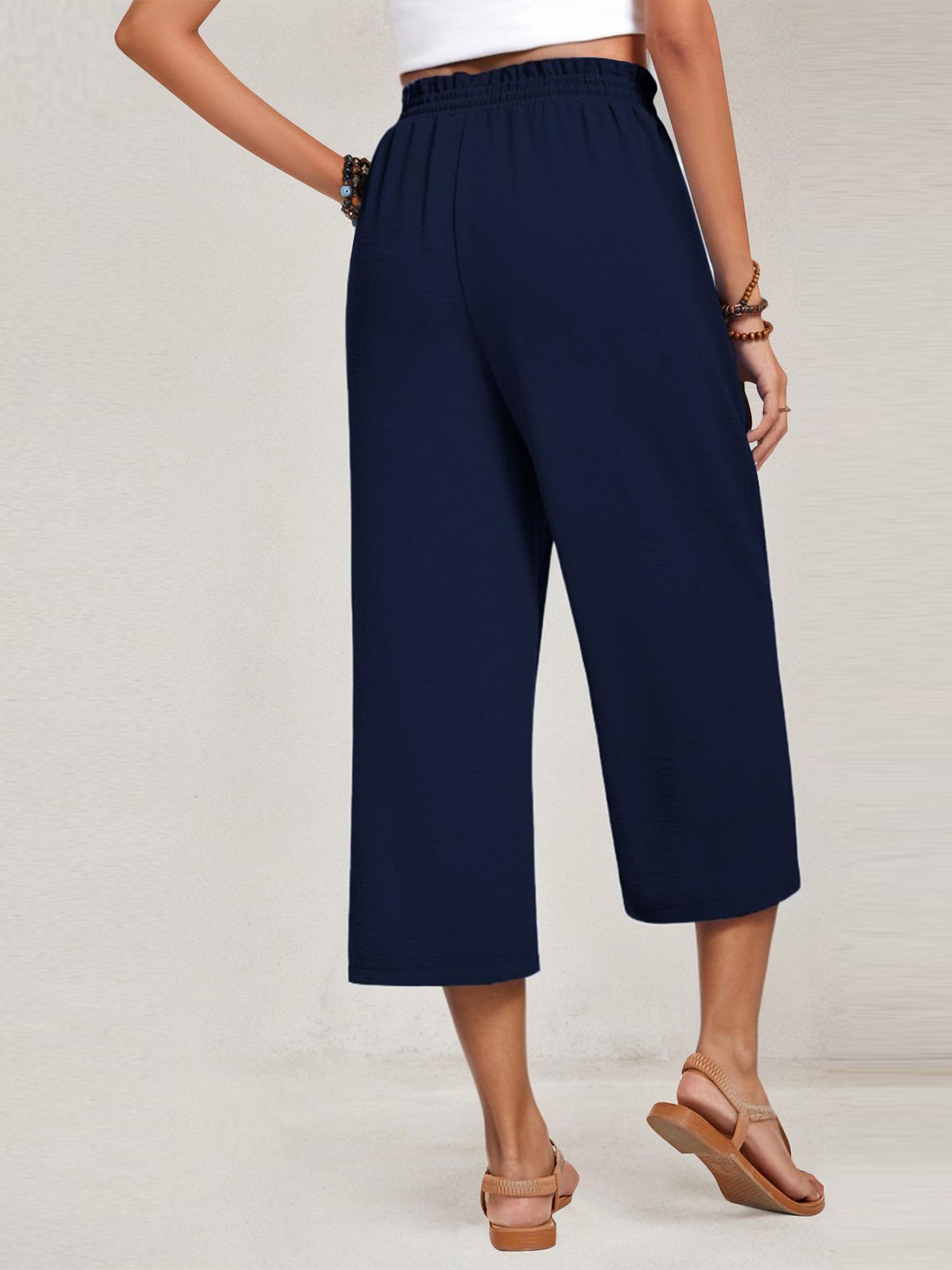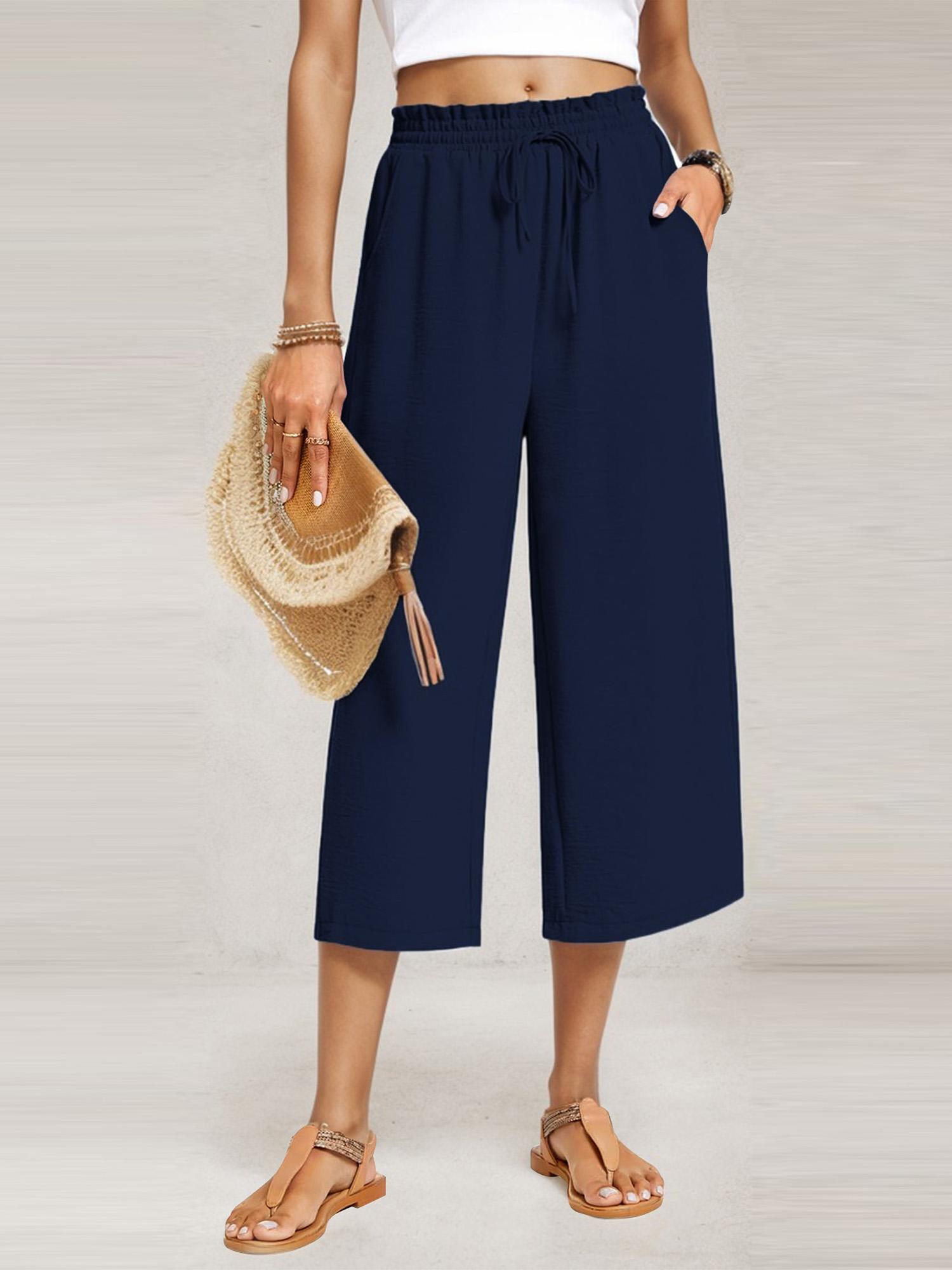 Womens Capri Pants Loose High Waisted Wide Leg Lounge Pants Drawstring Pants with Pockets
