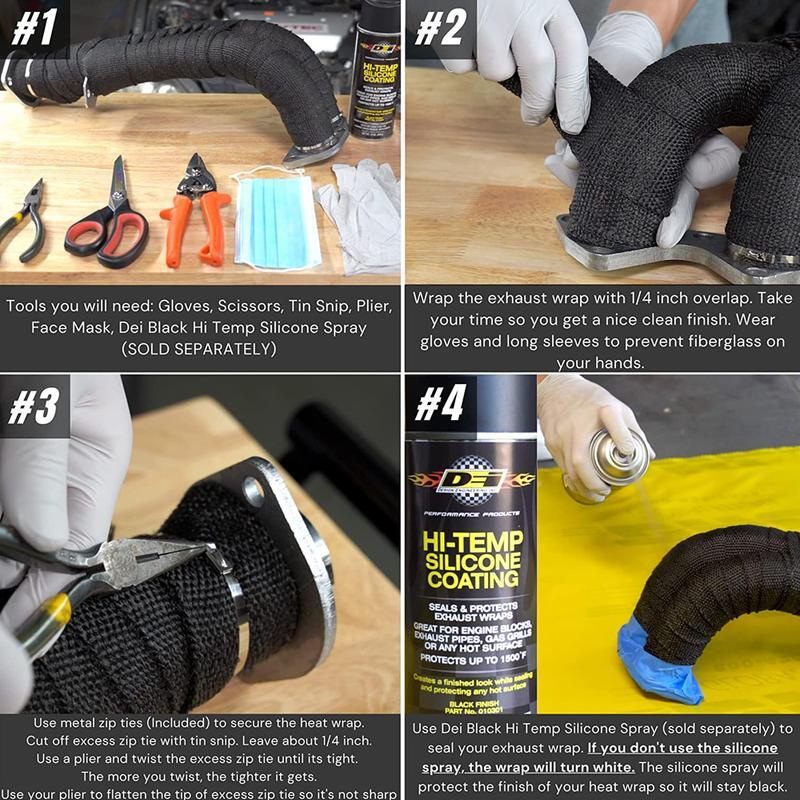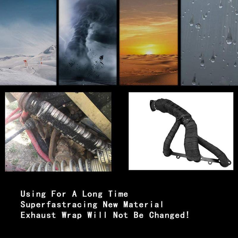 Includes one 2" x 50 Feet roll of exhaust heat wrap and 10 stainless steel ties for secure installation,The exhaust Header Wrap is constructed from fiberglass yarn.