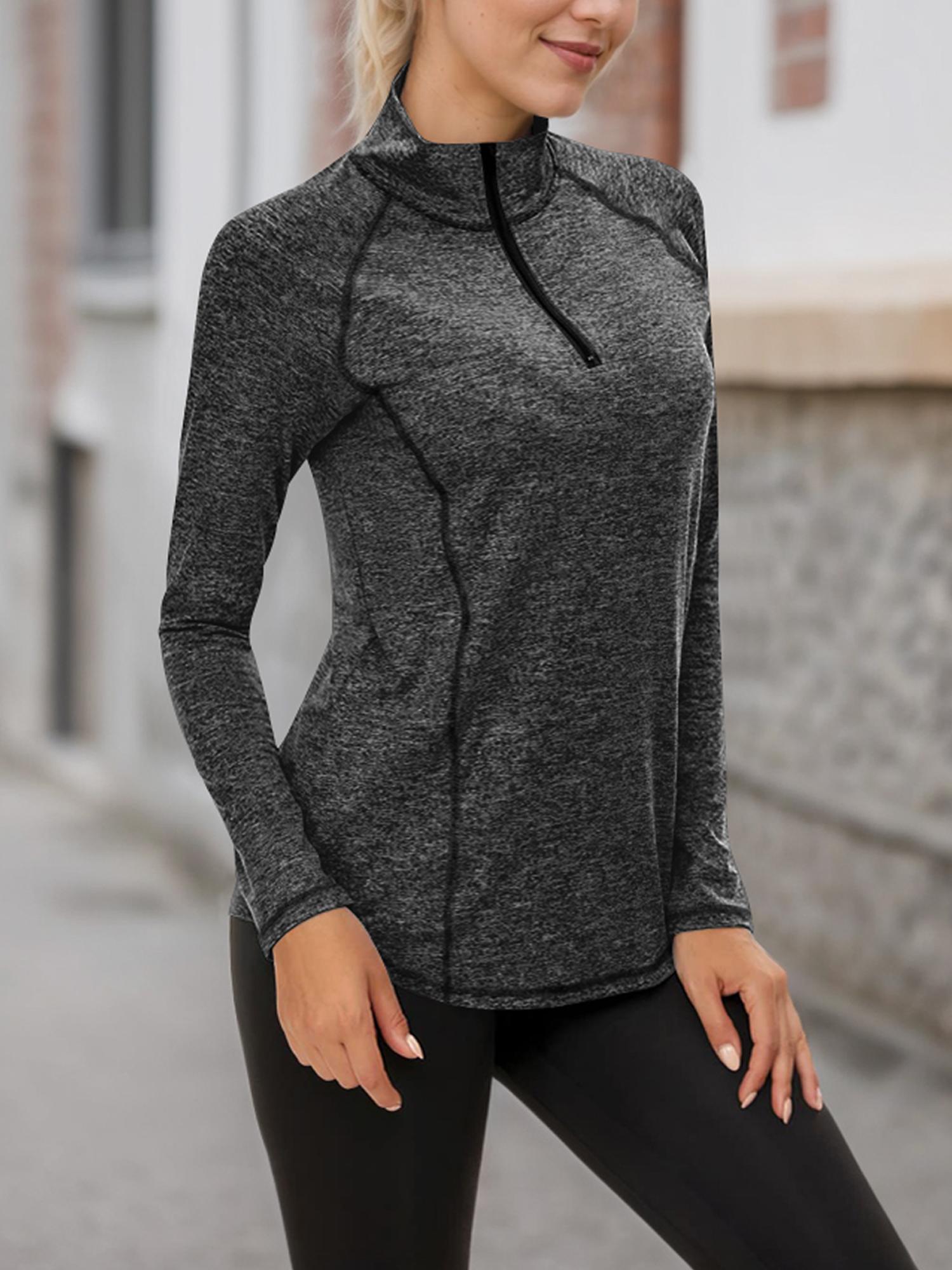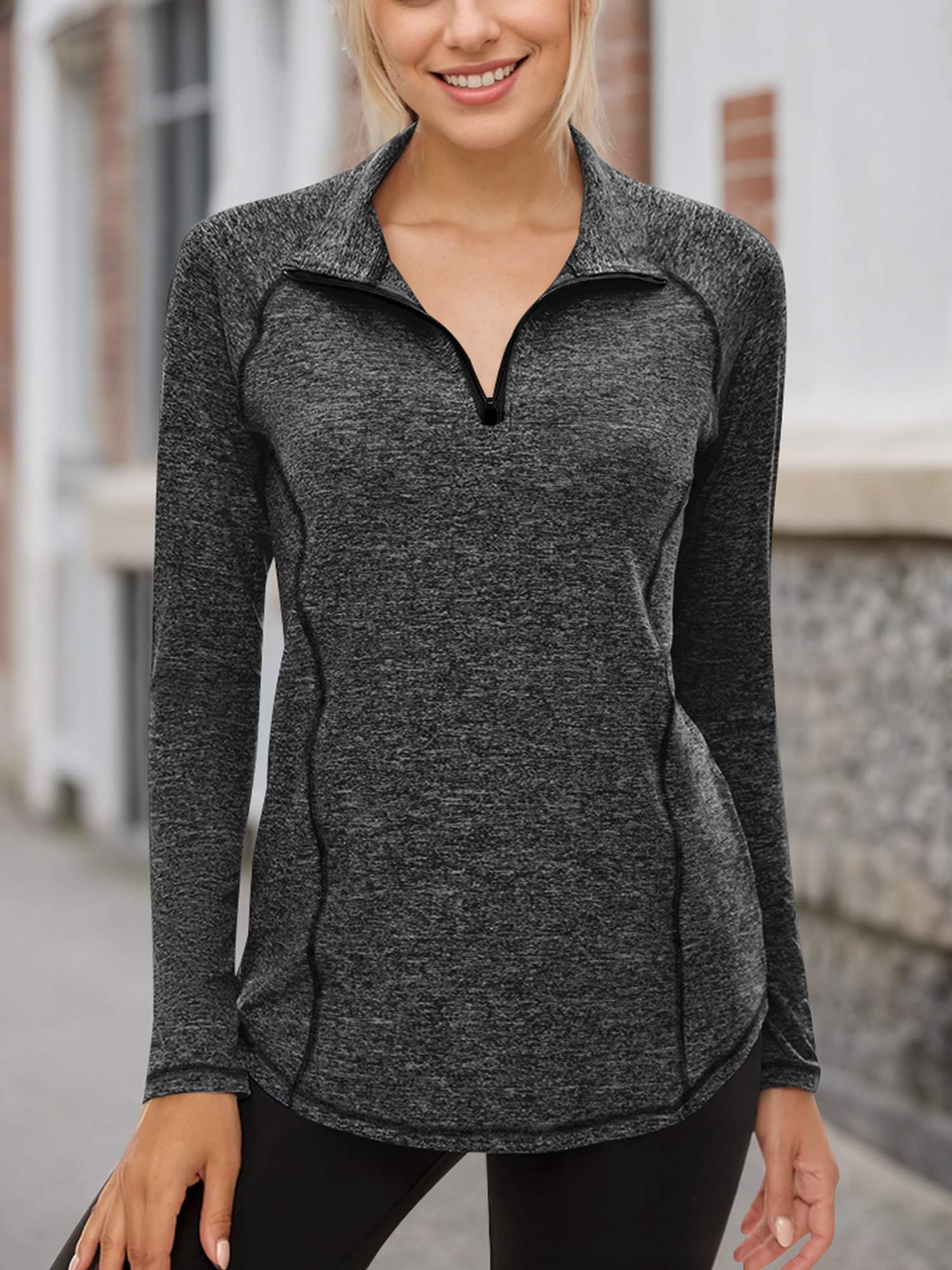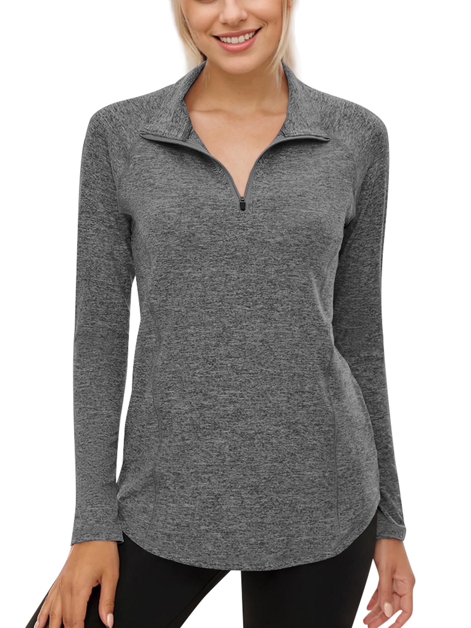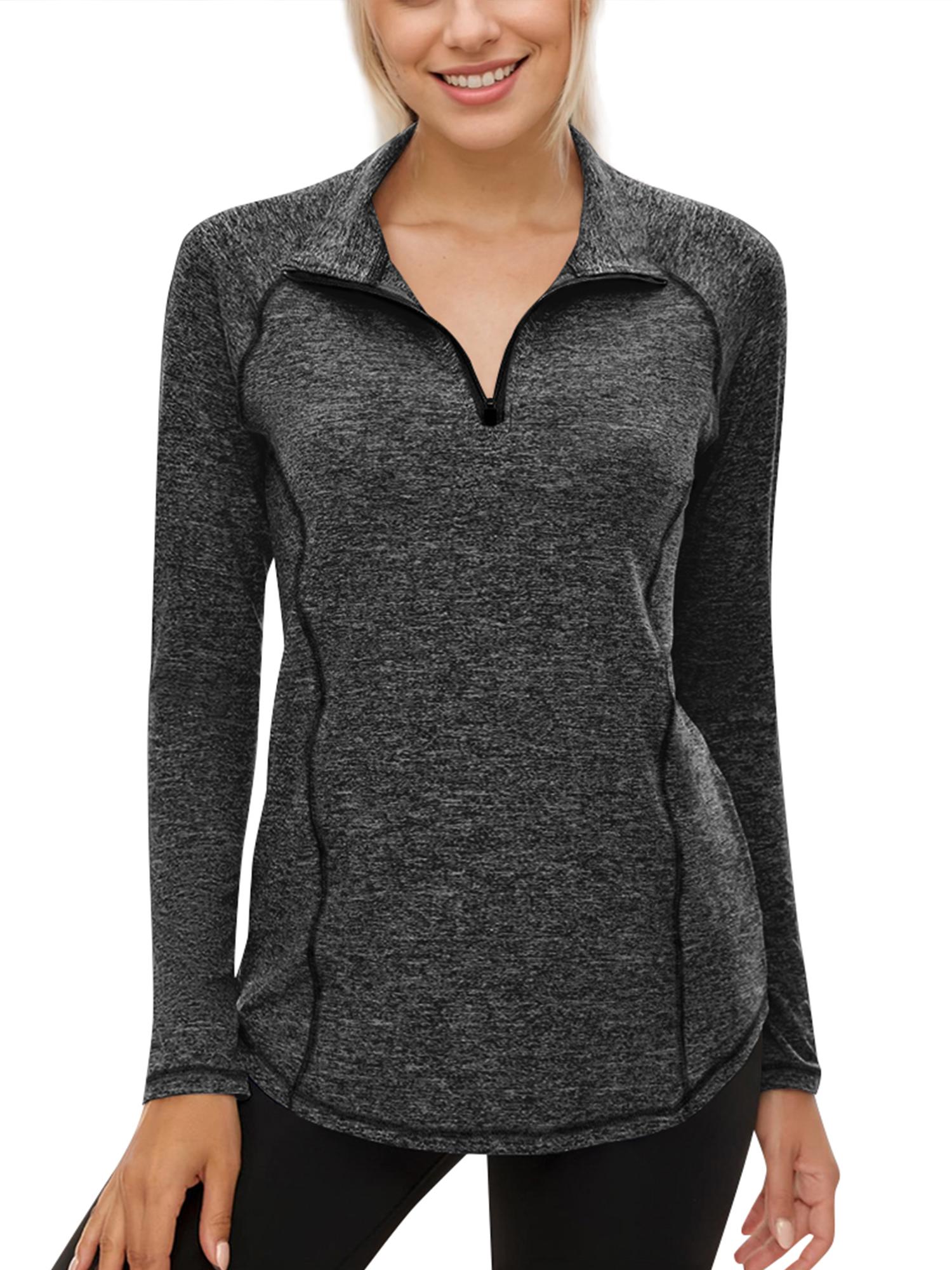 Womens Long Sleeve 1/4 Zip Pullover Athletic Hiking Running Tops