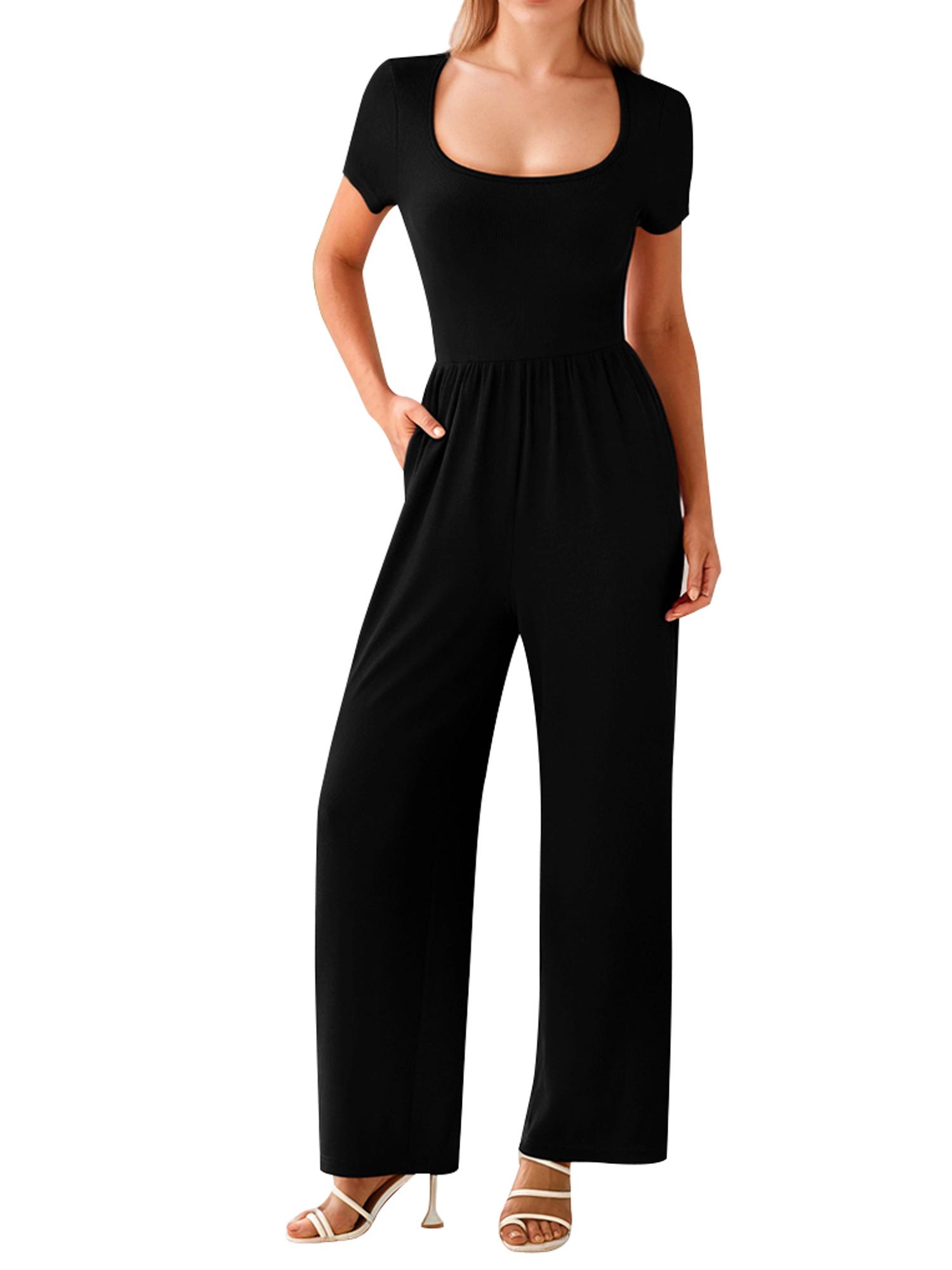 Women's One Piece Jumpsuits Casual Short Sleeve Square Neck Wide Leg Jumpsuit Rompers