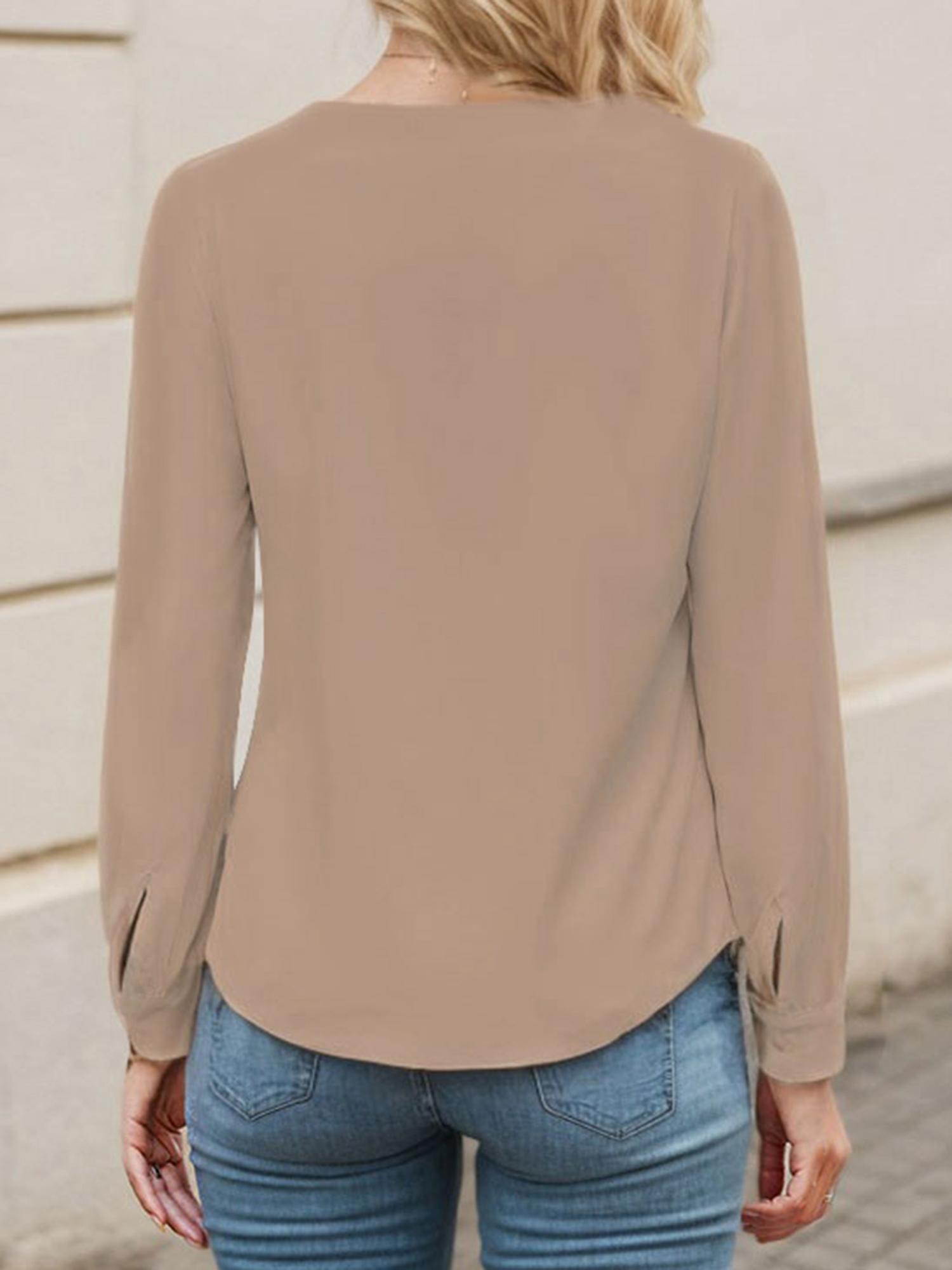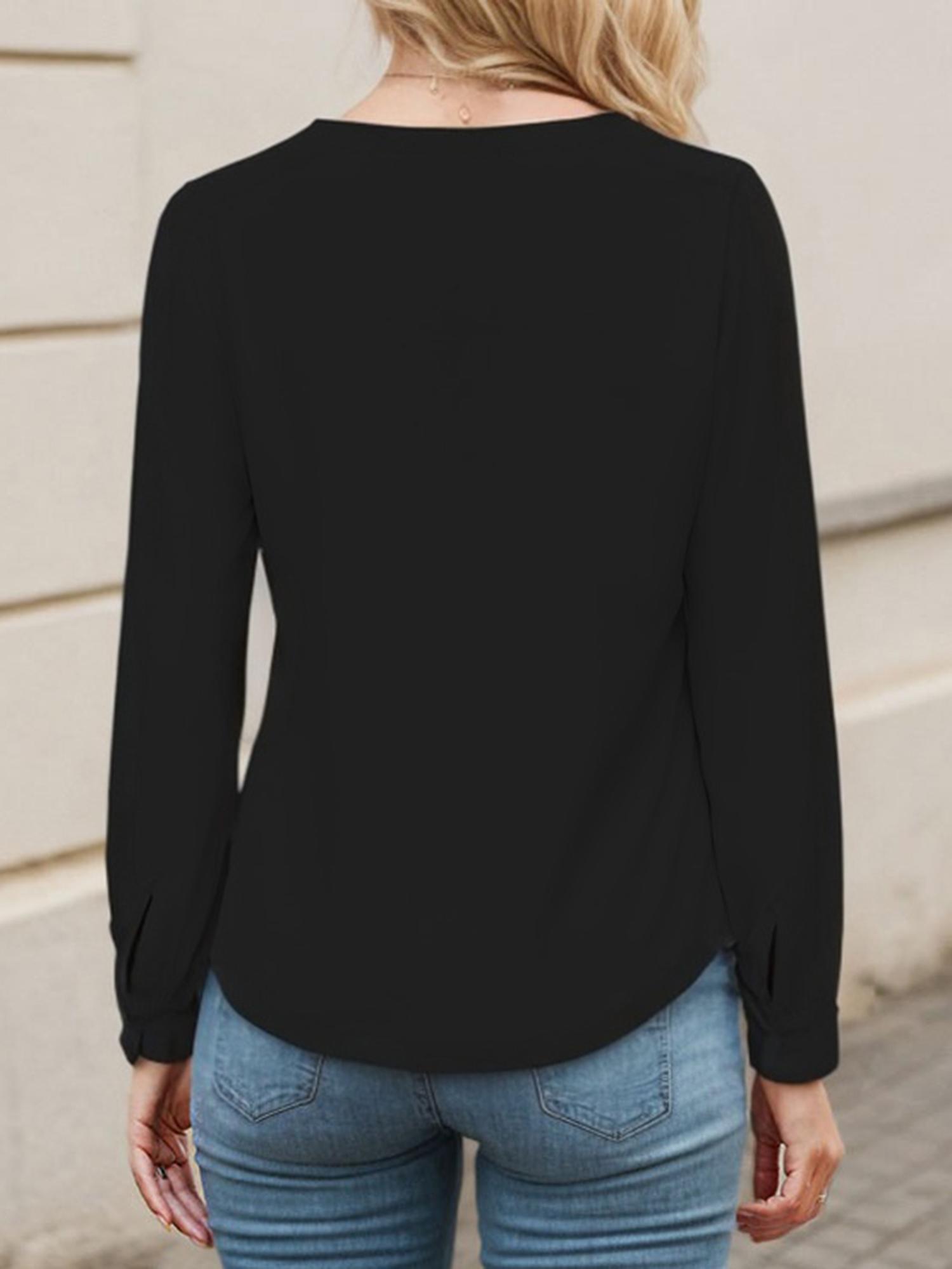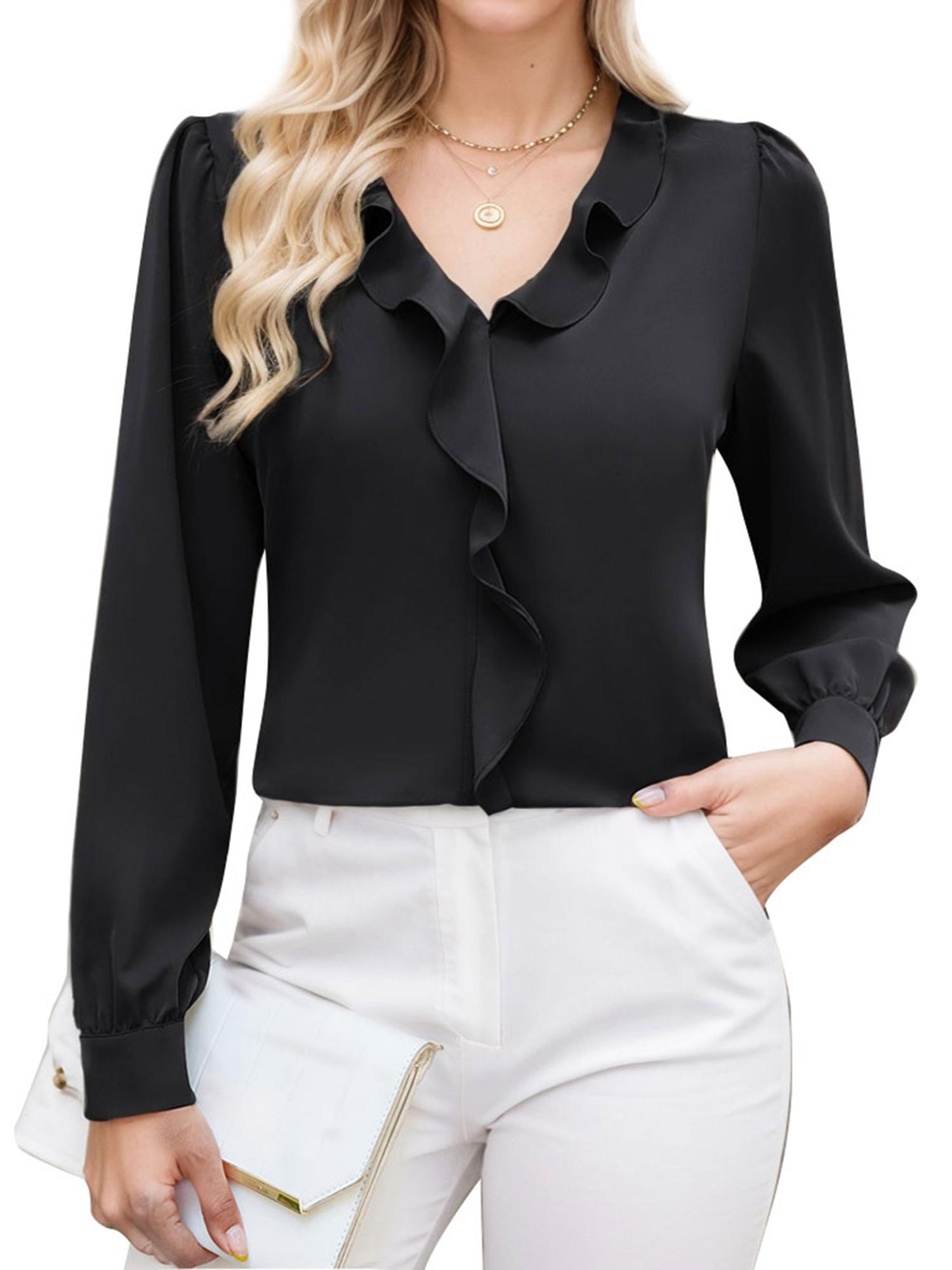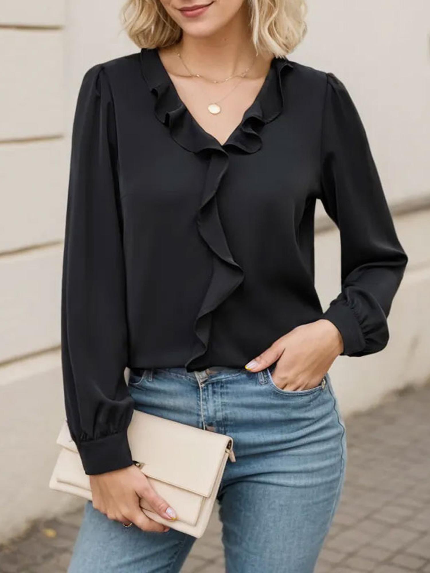 Women's Casual Blouse Long Sleeve Tops Ruffle V Neck Shirt