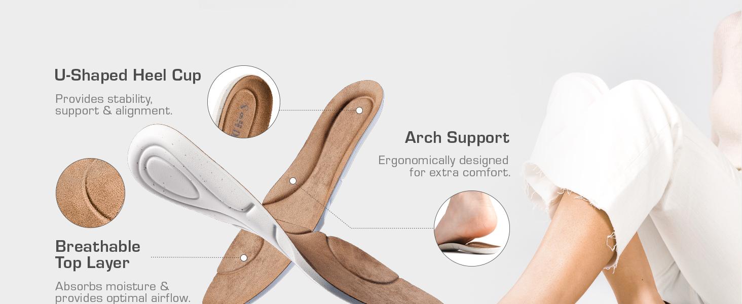 Built-in arch support with U-shaped heel cup for stability