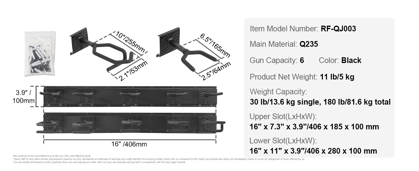 Für unterschiedliche Waffen & Orte: Ob im Kleiderschrank, im Büro, an der Wand, hinter einer Tür oder in der Jagdhütte, dieser Gewehrständer passt perfekt. Er passt sich an verschiedene Wandarten an, einschließlich Holz-, Zement- und Backsteinwände. Mit seinem einzigartigen Doppel-3-Slot-Design (Größe jedes Slots: 16 x 7,3 x 3,9 Zoll (406 x 185 x 100 mm)) können Sie Ihre eigenen Waffen herstellen. Perfekt für Waffensammler, Jäger oder jeden, der Waffen sicher aufbewahren muss.