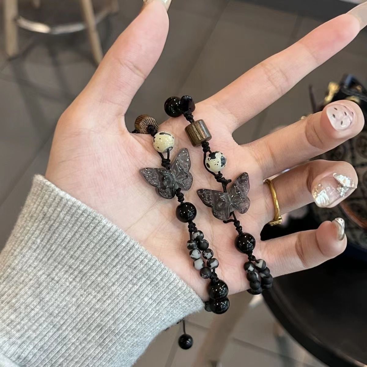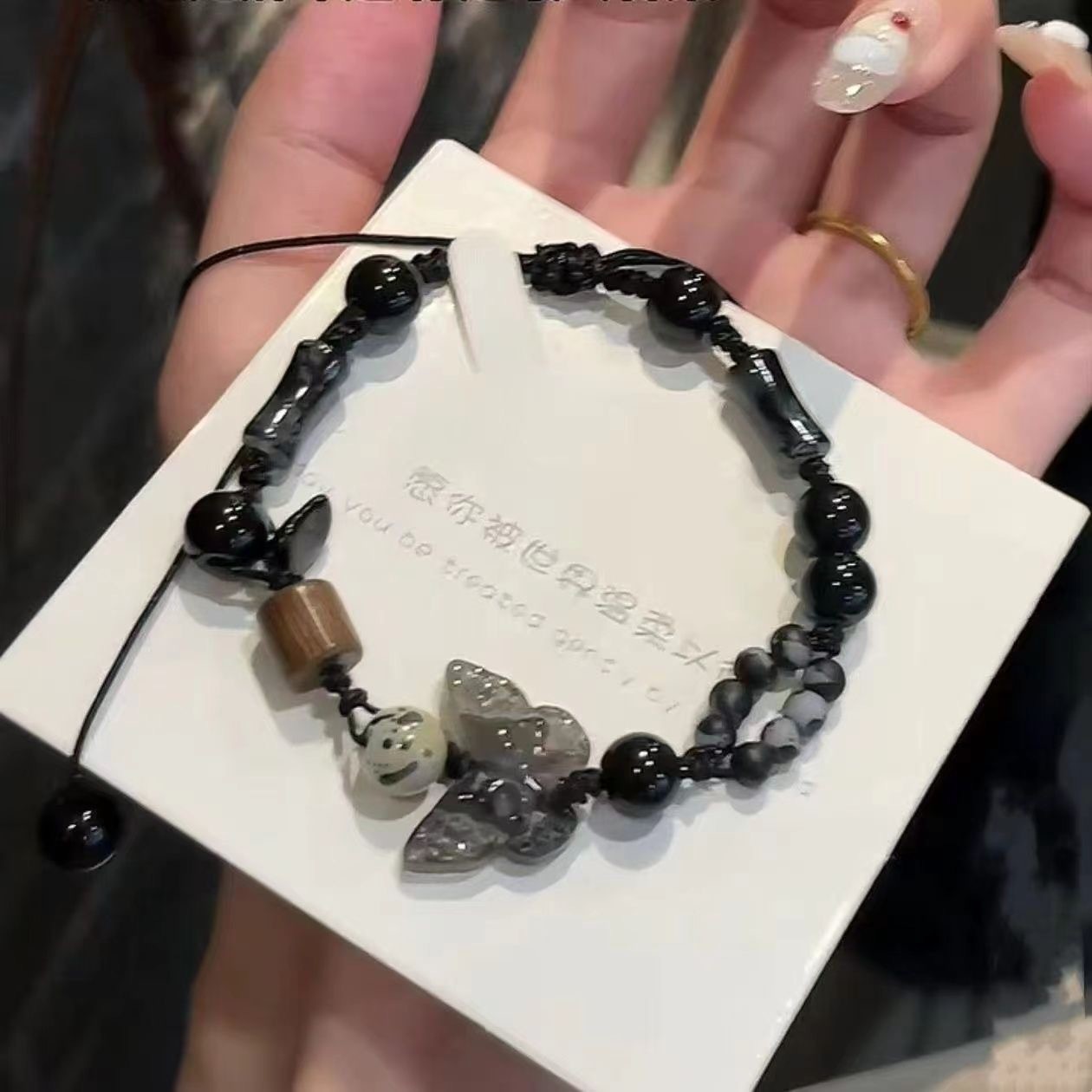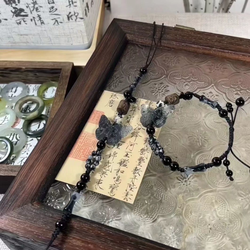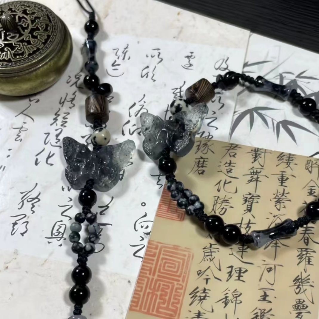 Déconstruction de la conception artistique orientale : en utilisant une résine respectueuse de l'environnement mélangée à une technologie de tissage de fibres (diamètre de perles 8-12 mm), la chaîne principale est intégrée avec du jade sculpté en 3D comme des papillons (envergure 3 mm, précision d'échelle ± 0,05 mm) et la perle est intégrée à intervalles réguliers (diamètre 6 mm, transmission de la lumière ≥ 85 %). Il est traité par oxydation (dureté ≥ HV350) pour simuler la texture chaude du jade.