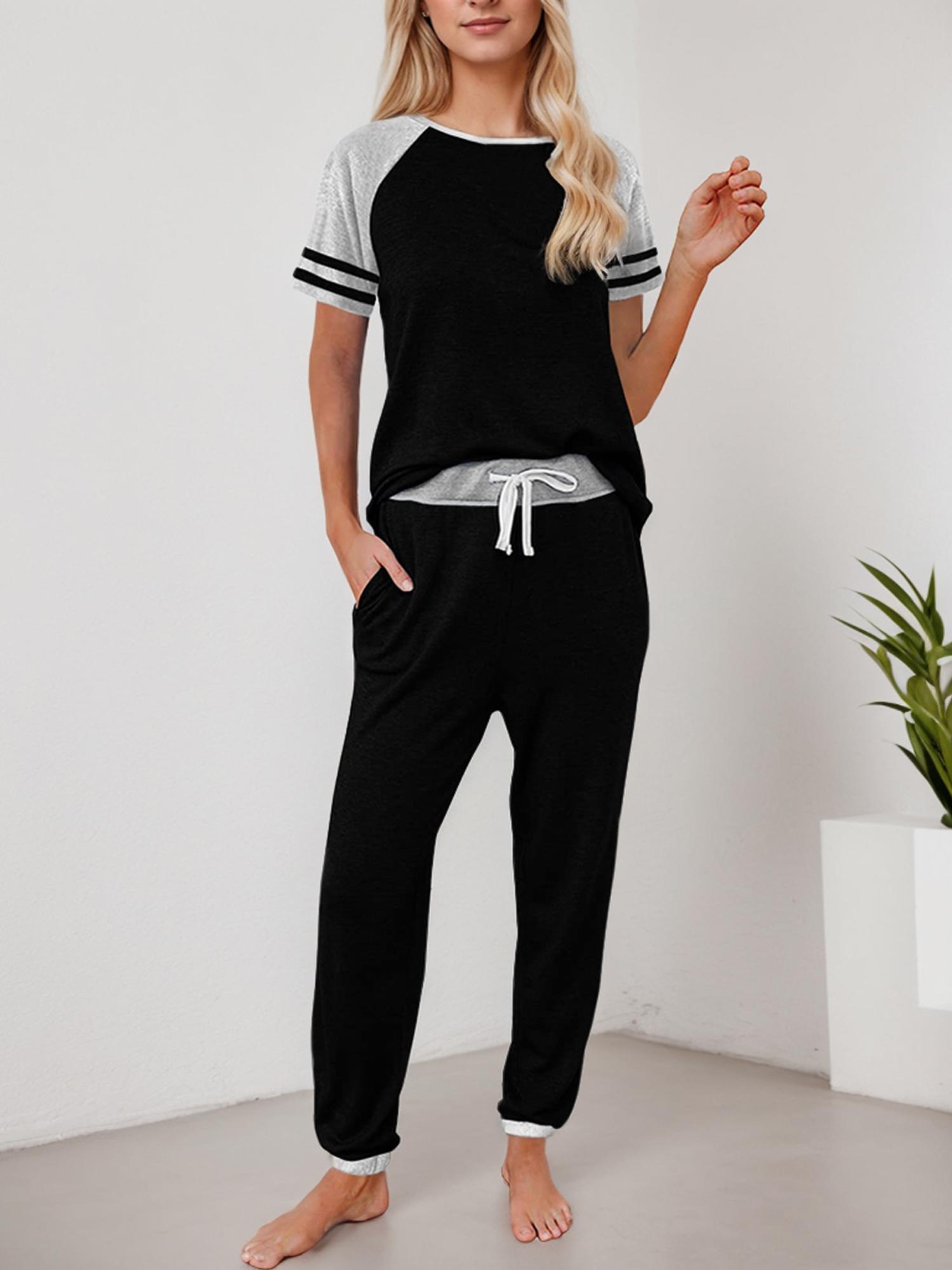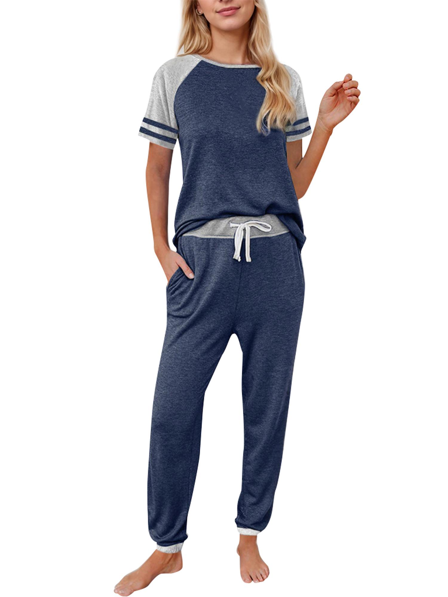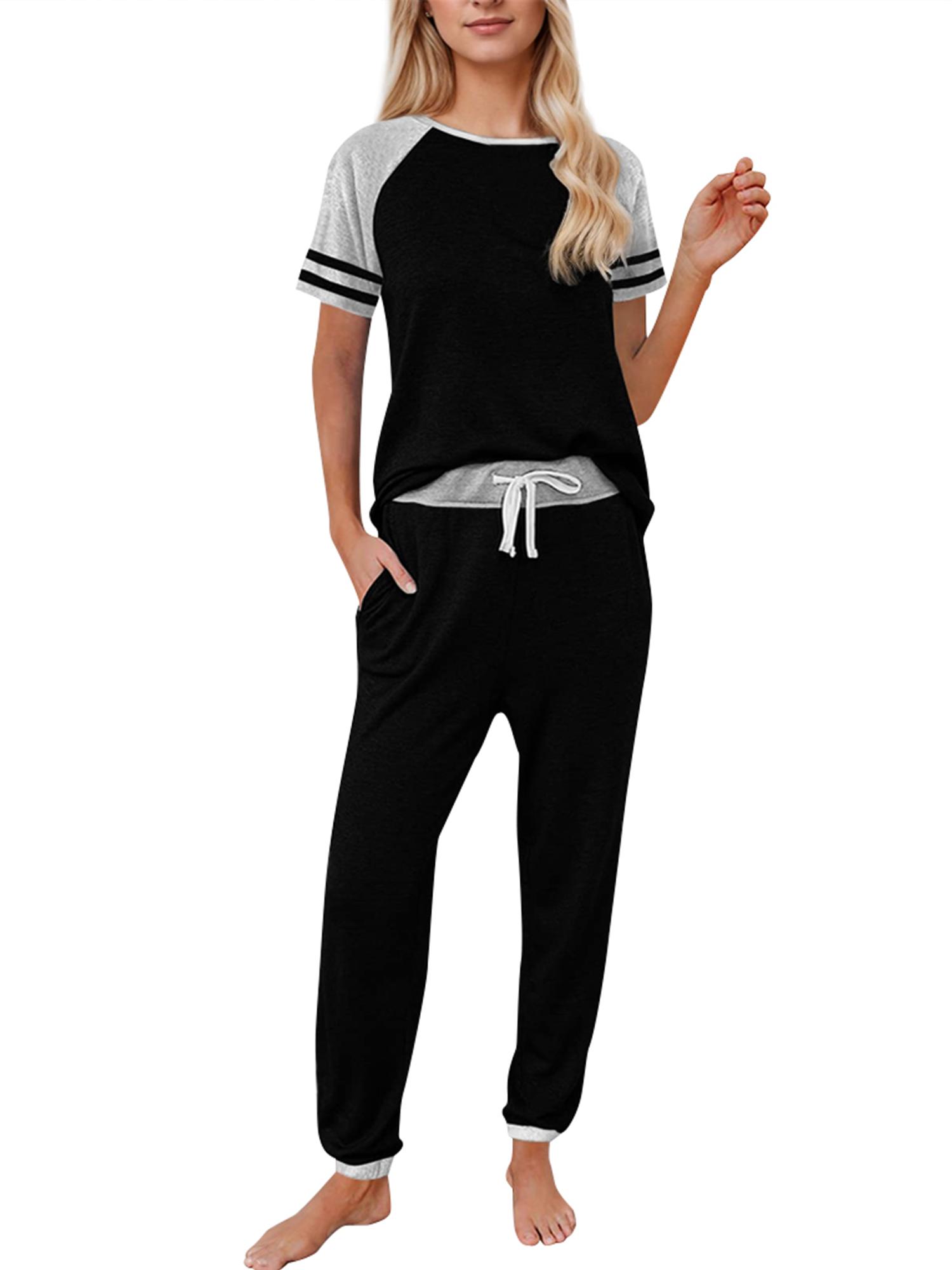 Women Lounge Sets Two Piece Loungewear Short Sleeve Crewneck Jogger Pajama Set Sweatpants Tracksuit