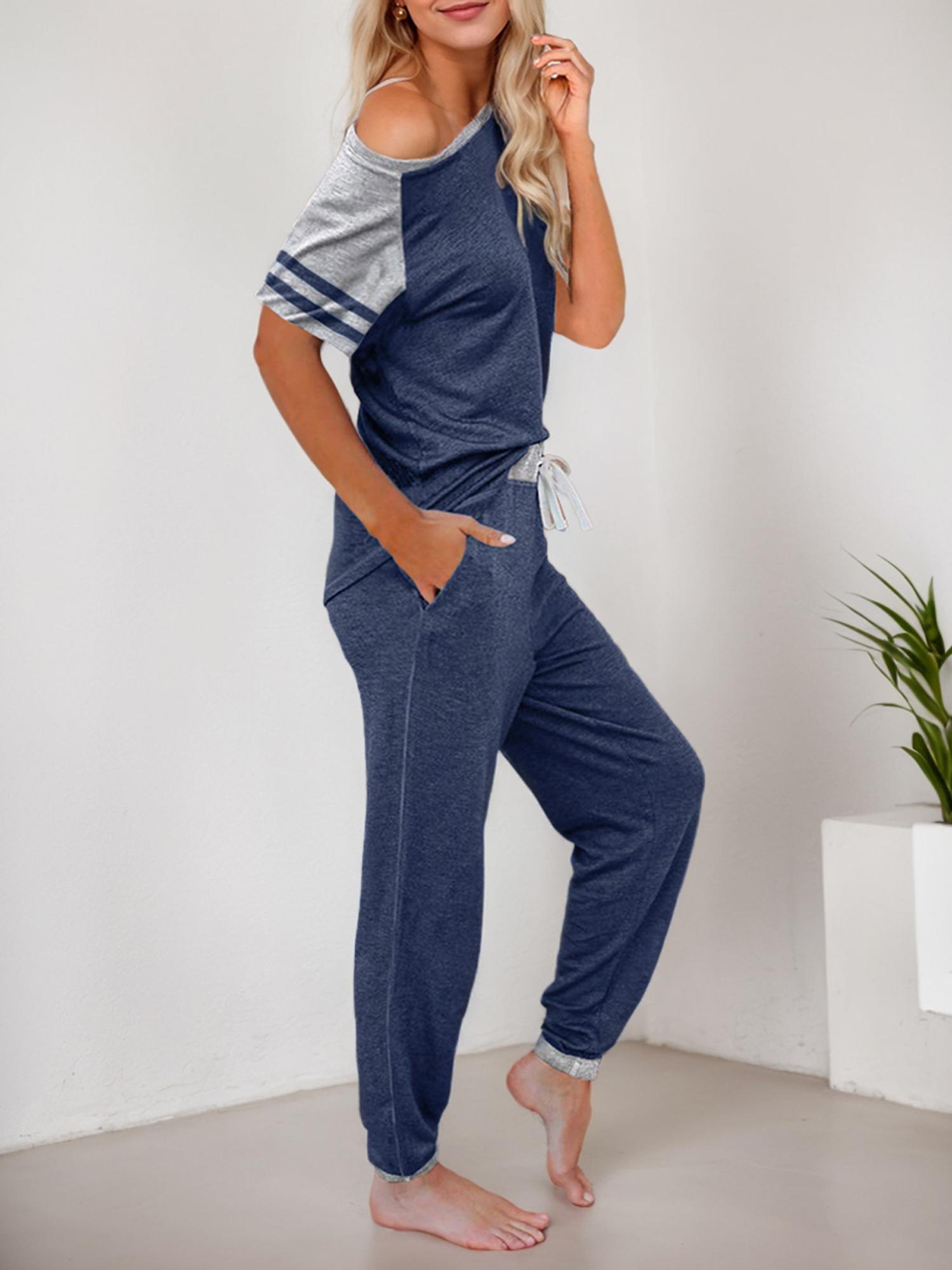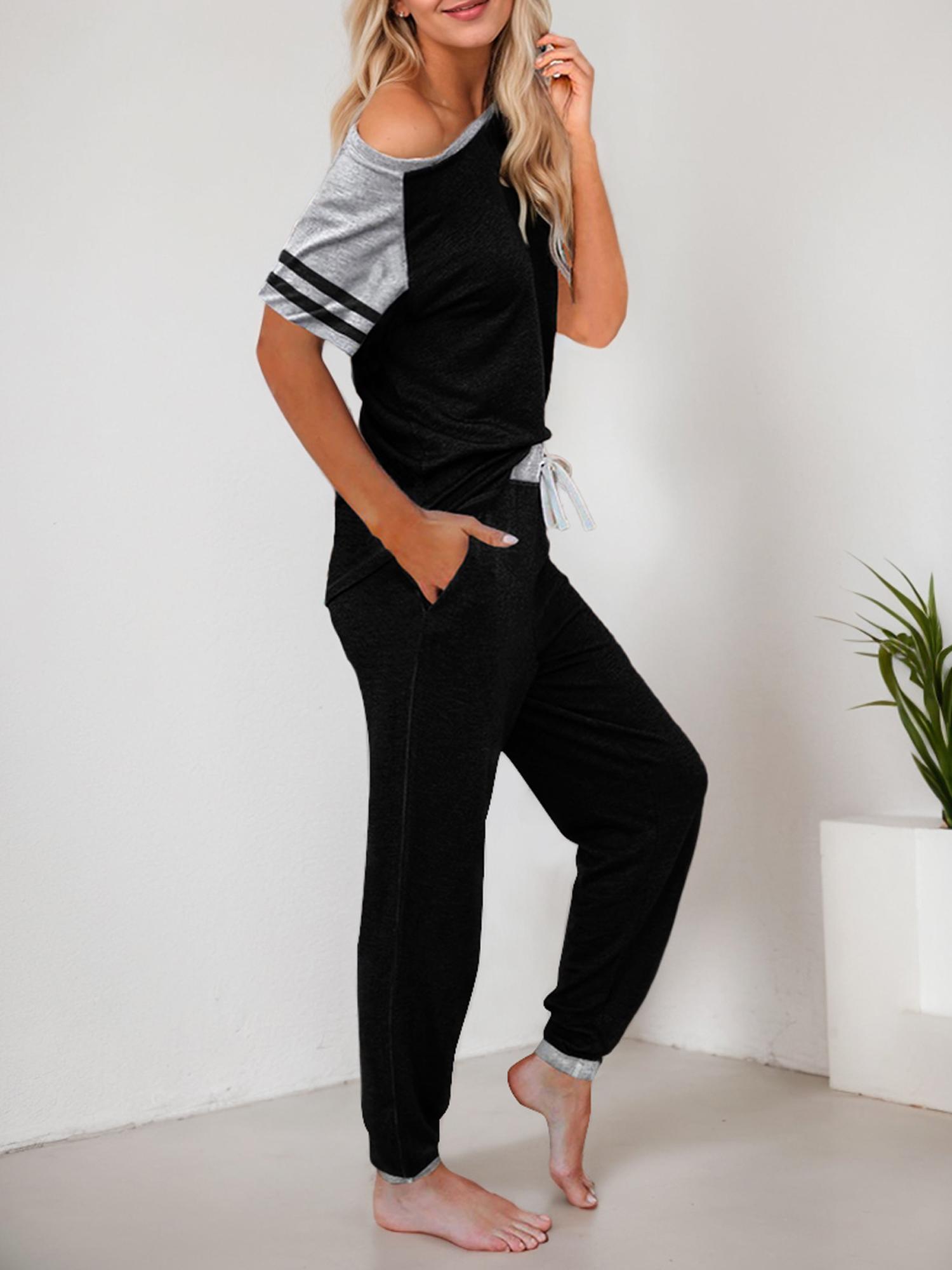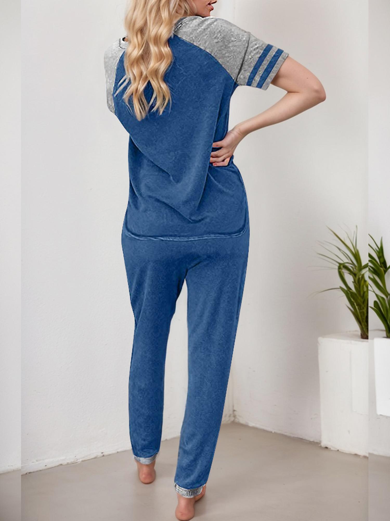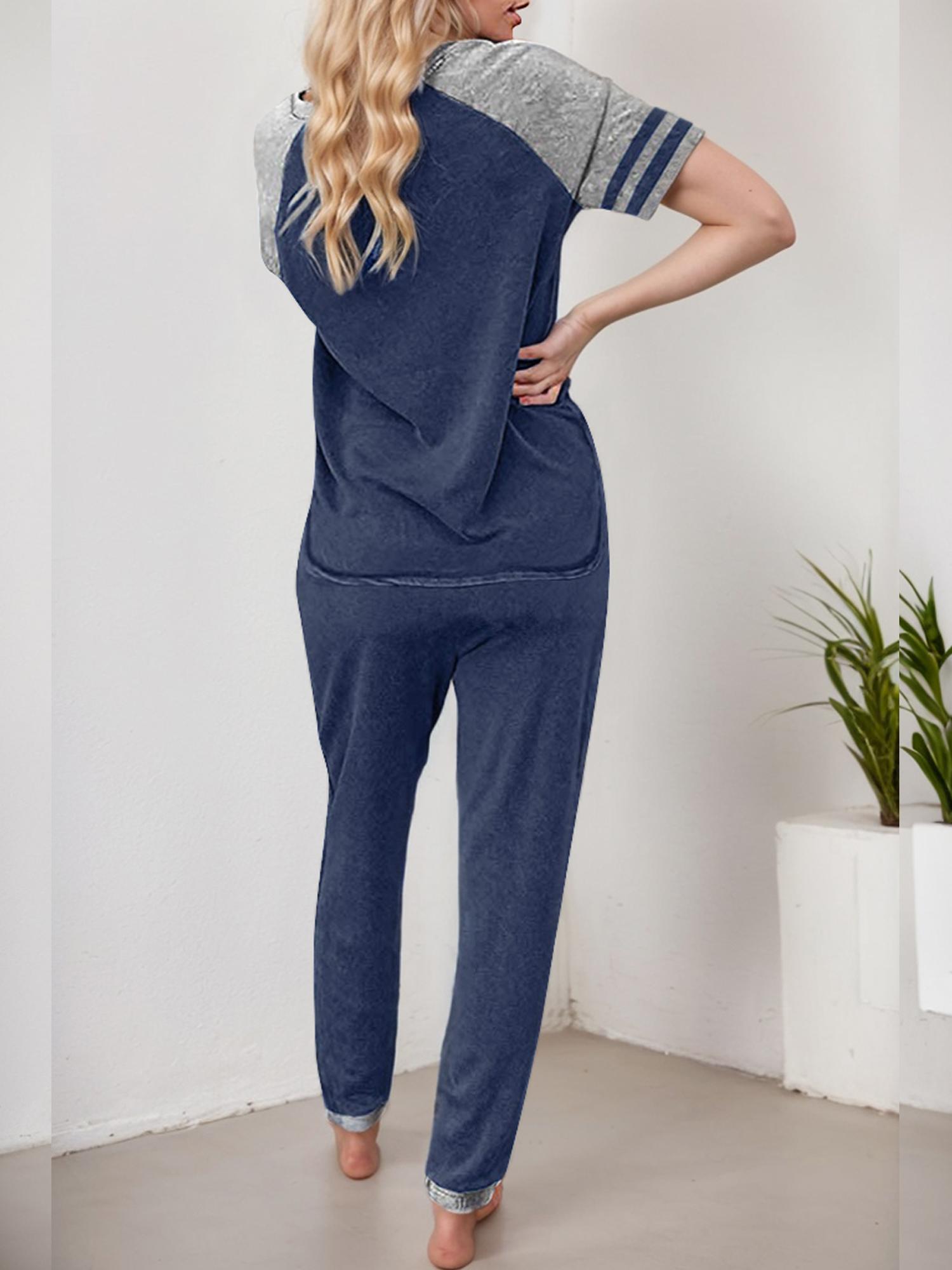 Women Lounge Sets Two Piece Loungewear Short Sleeve Crewneck Jogger Pajama Set Sweatpants Tracksuit