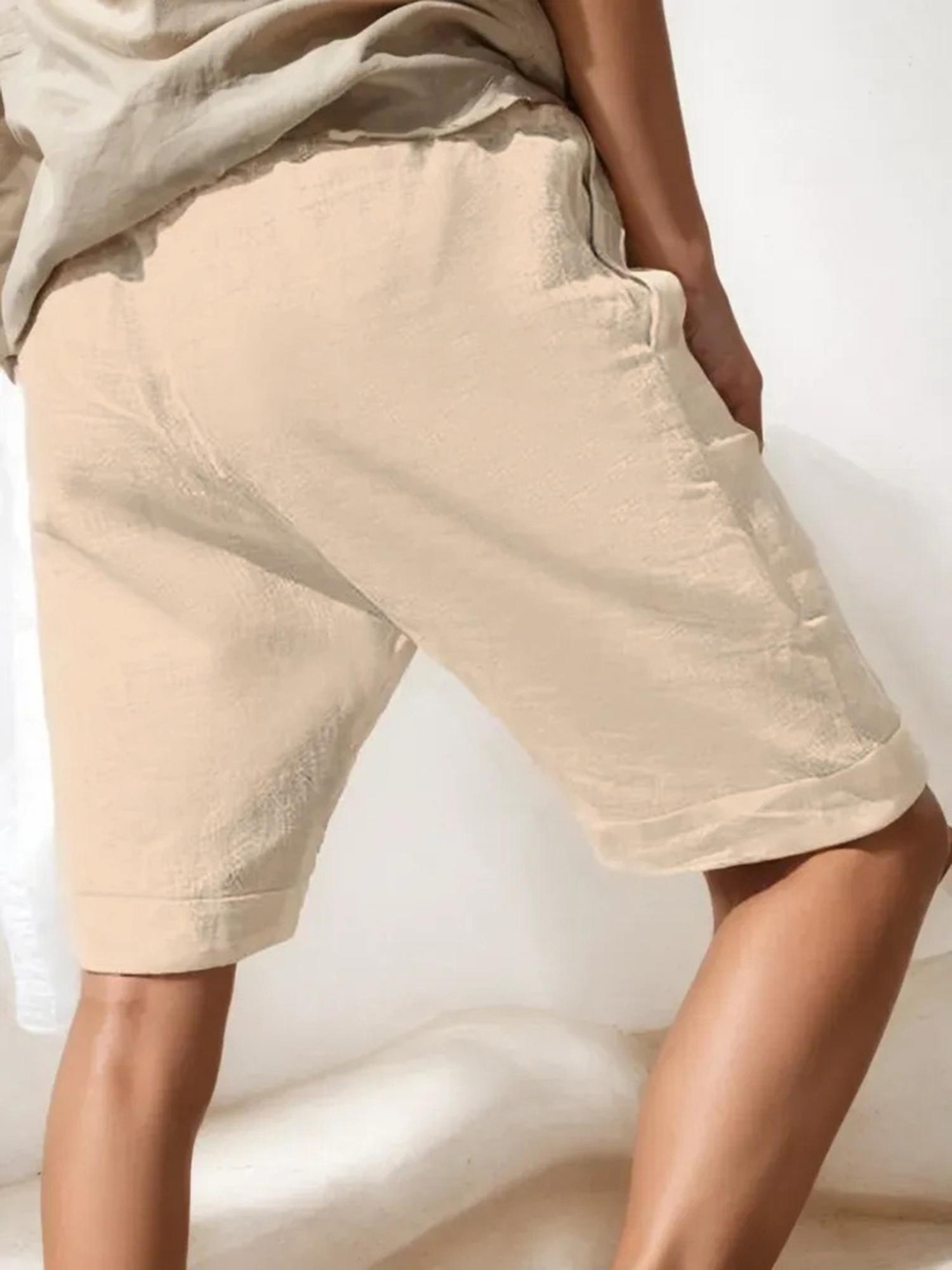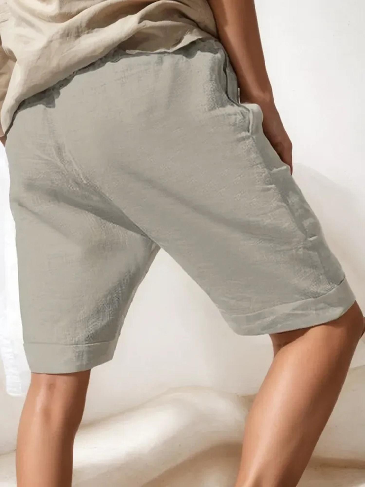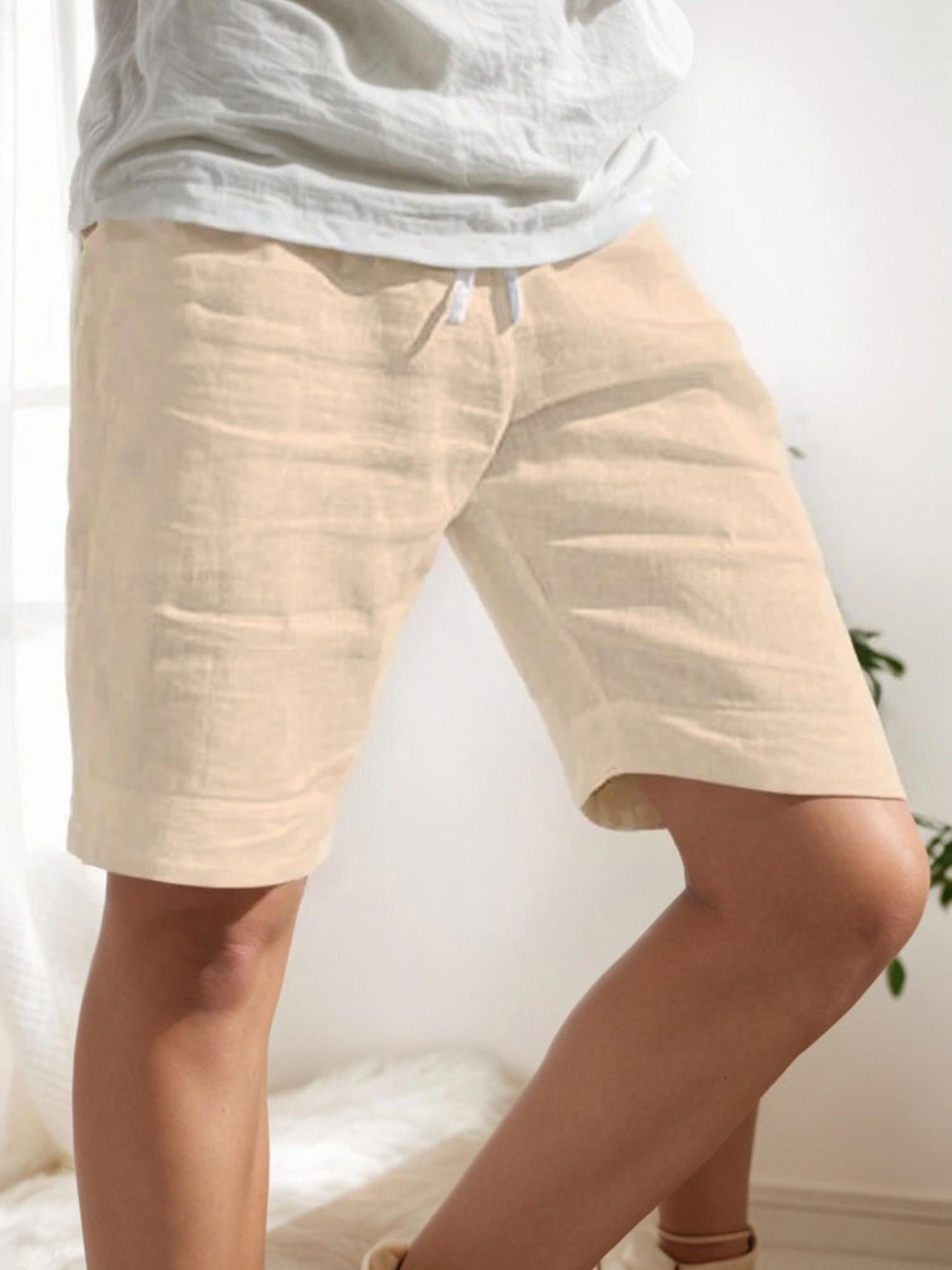 Men's Solid Color Drawstring Elastic Waist Casual Shorts