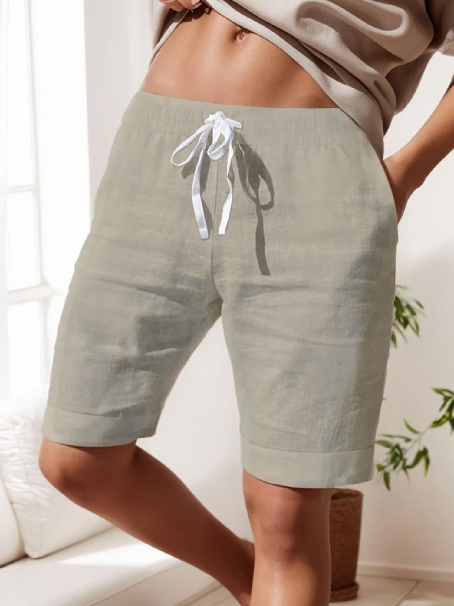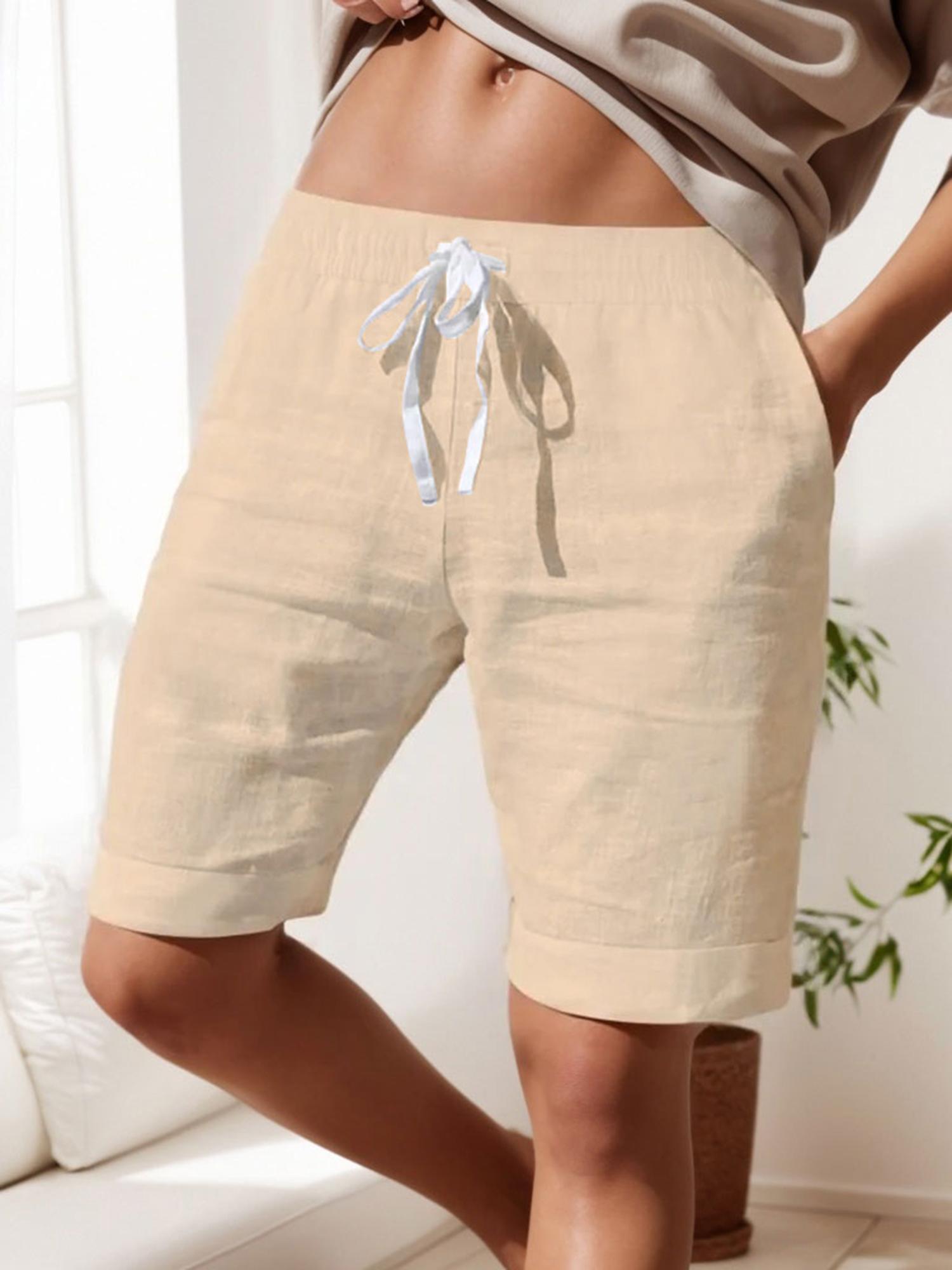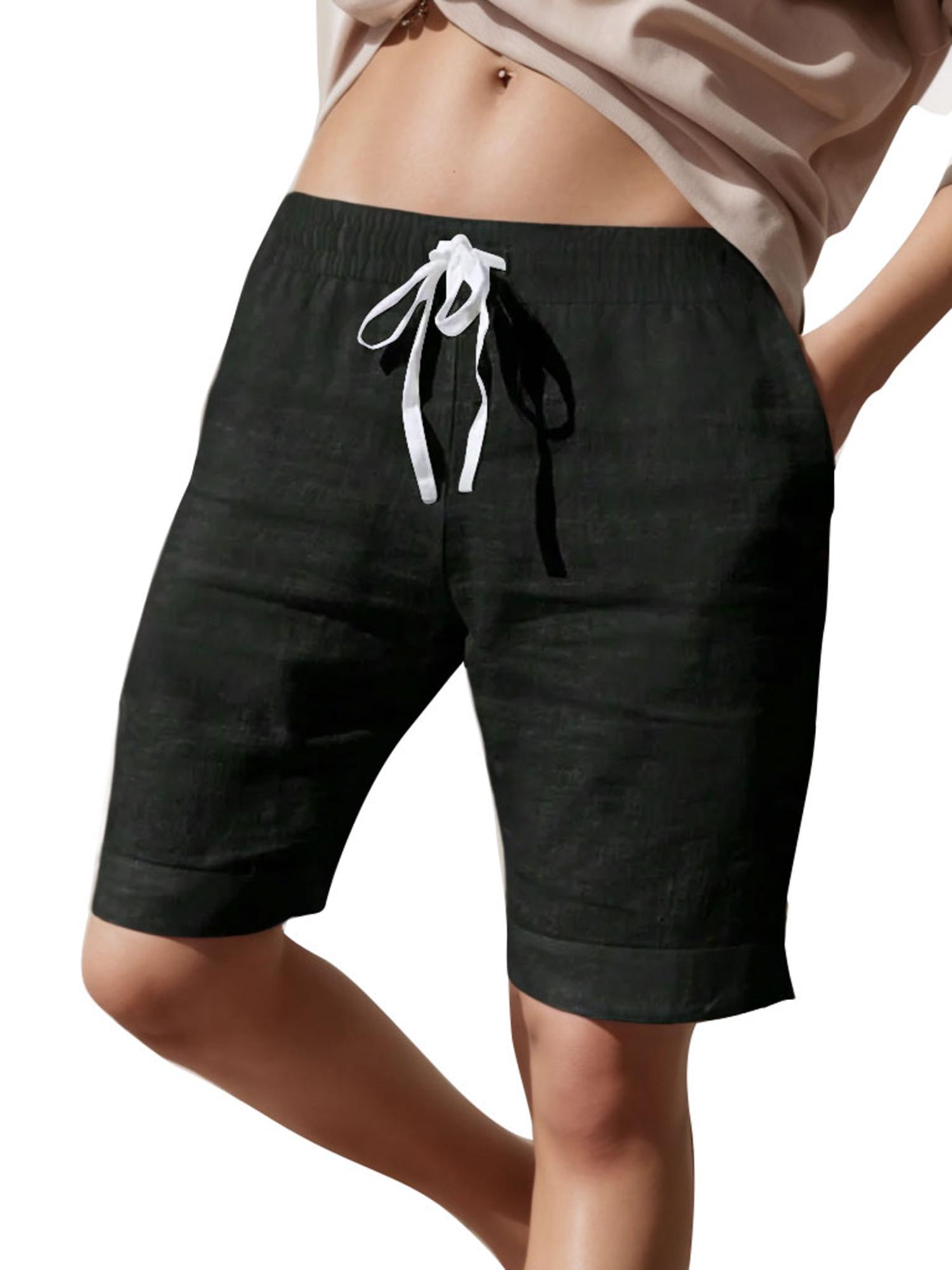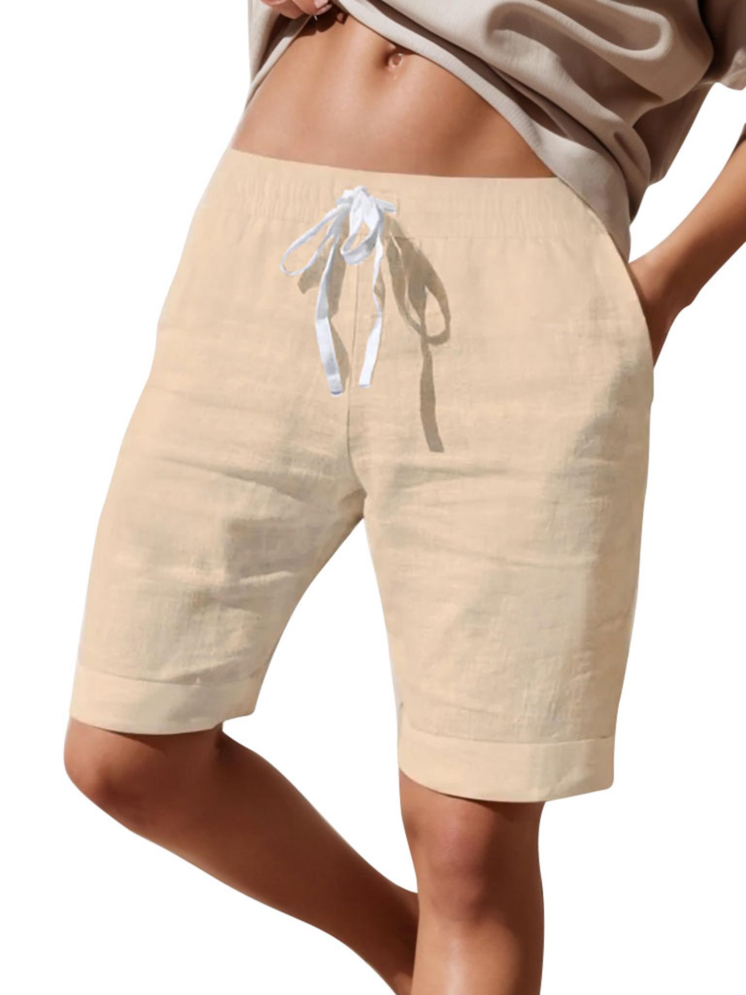 Men's Solid Color Drawstring Elastic Waist Casual Shorts