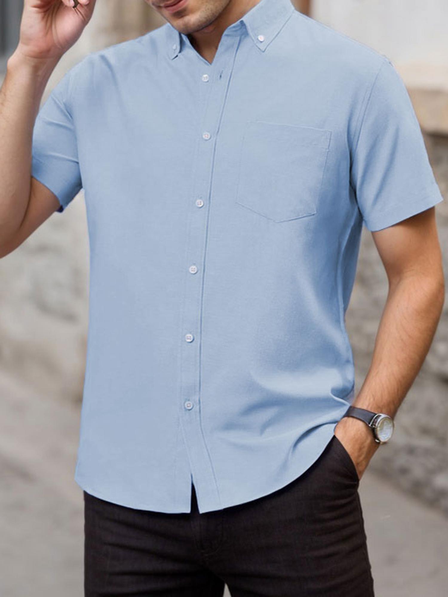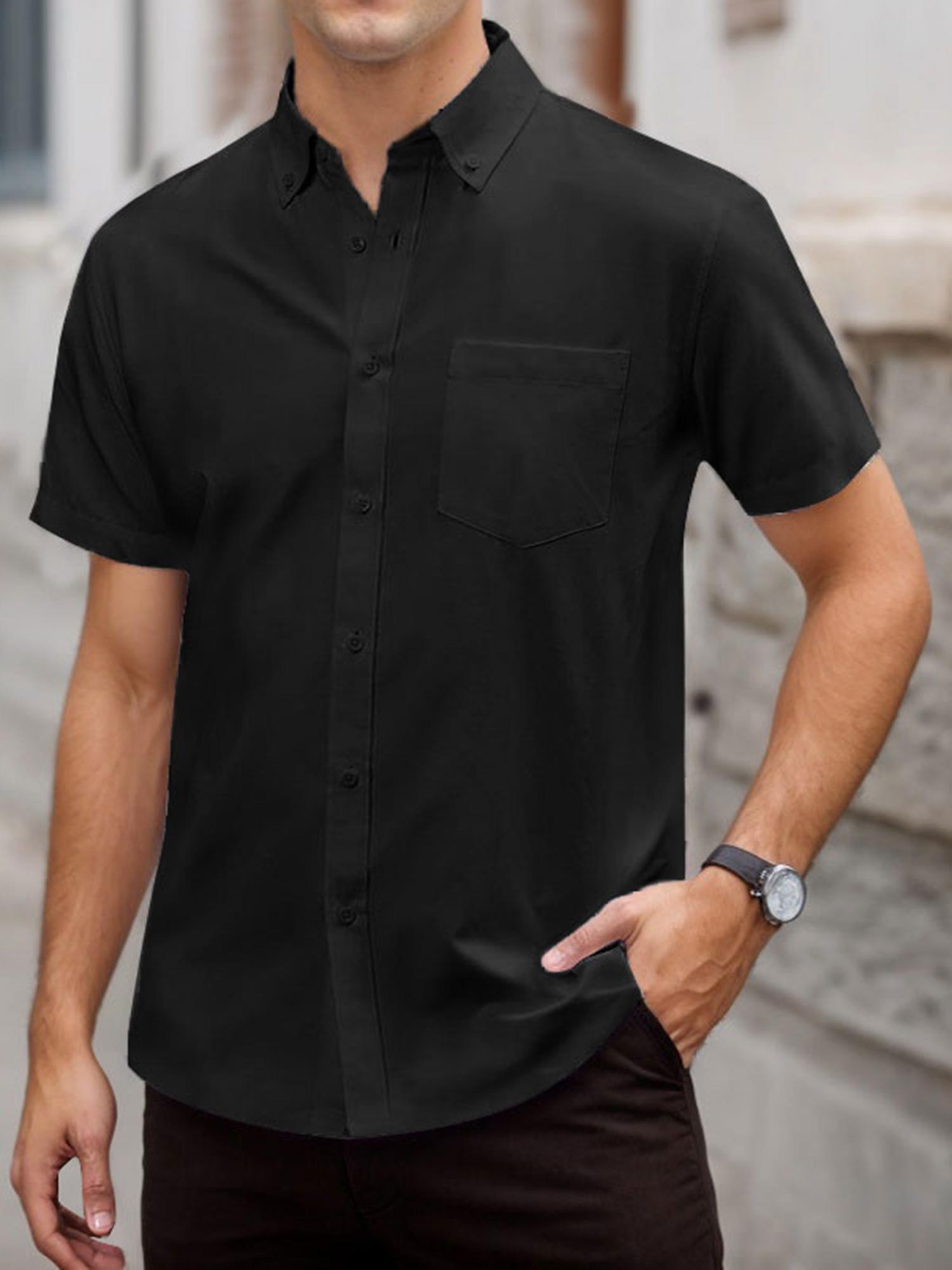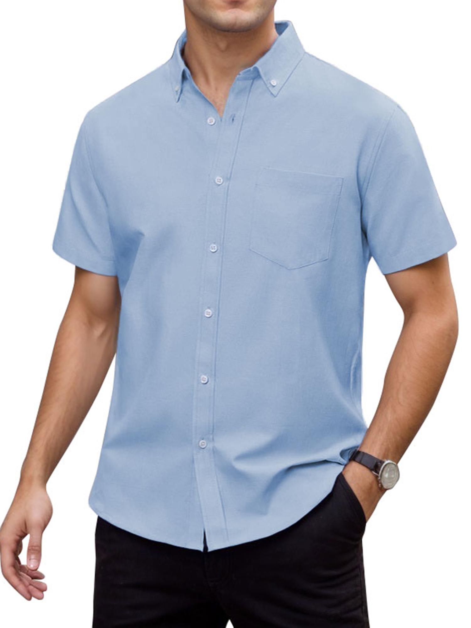 Men's Short Sleeve Shirt Regular Fit Button Down Collar Shirts with Pocket