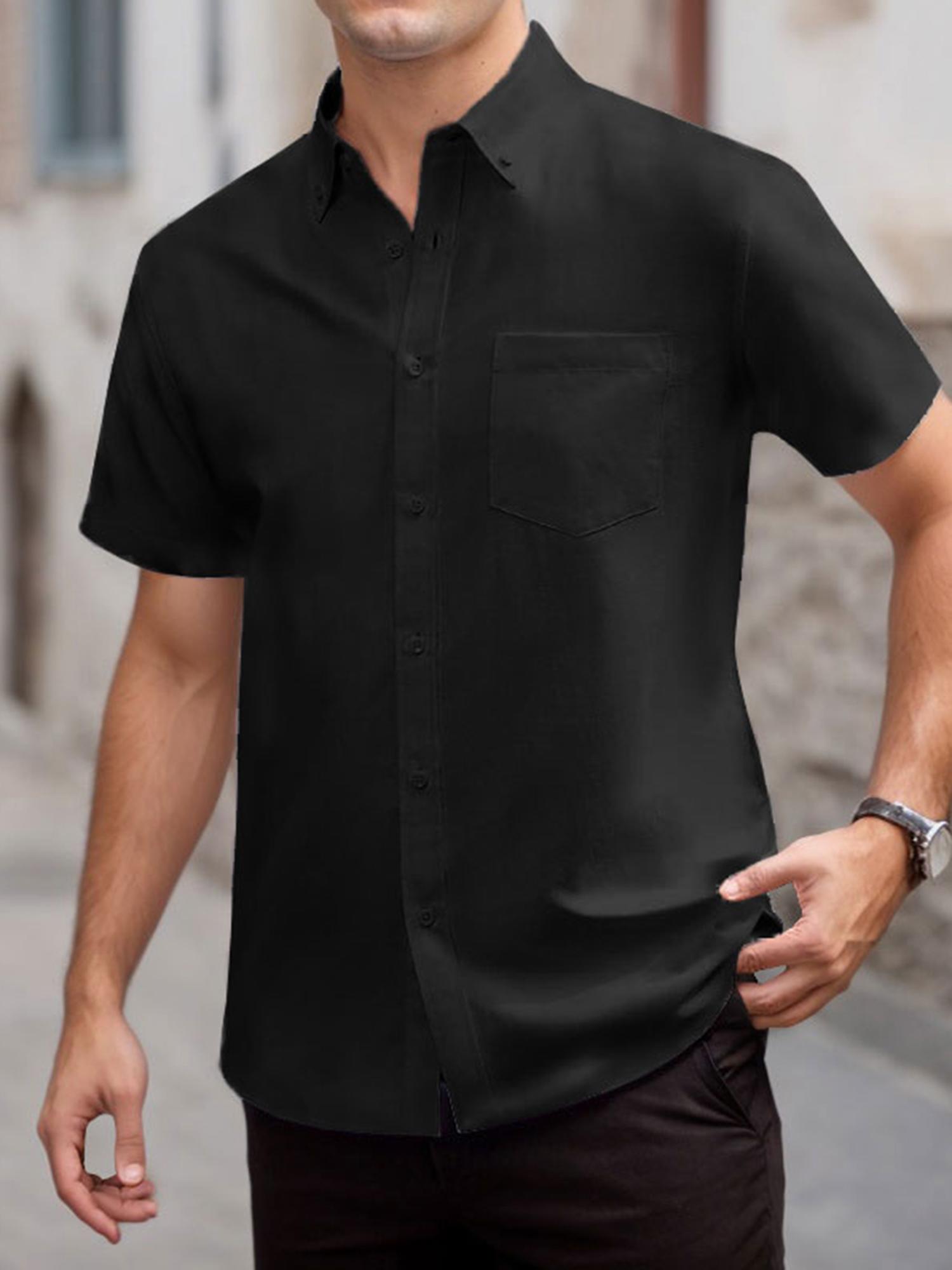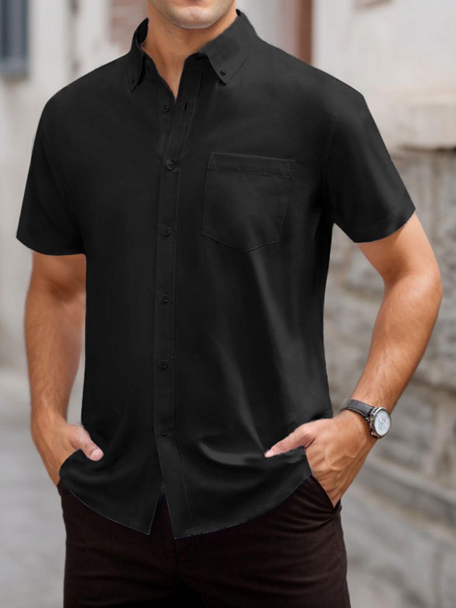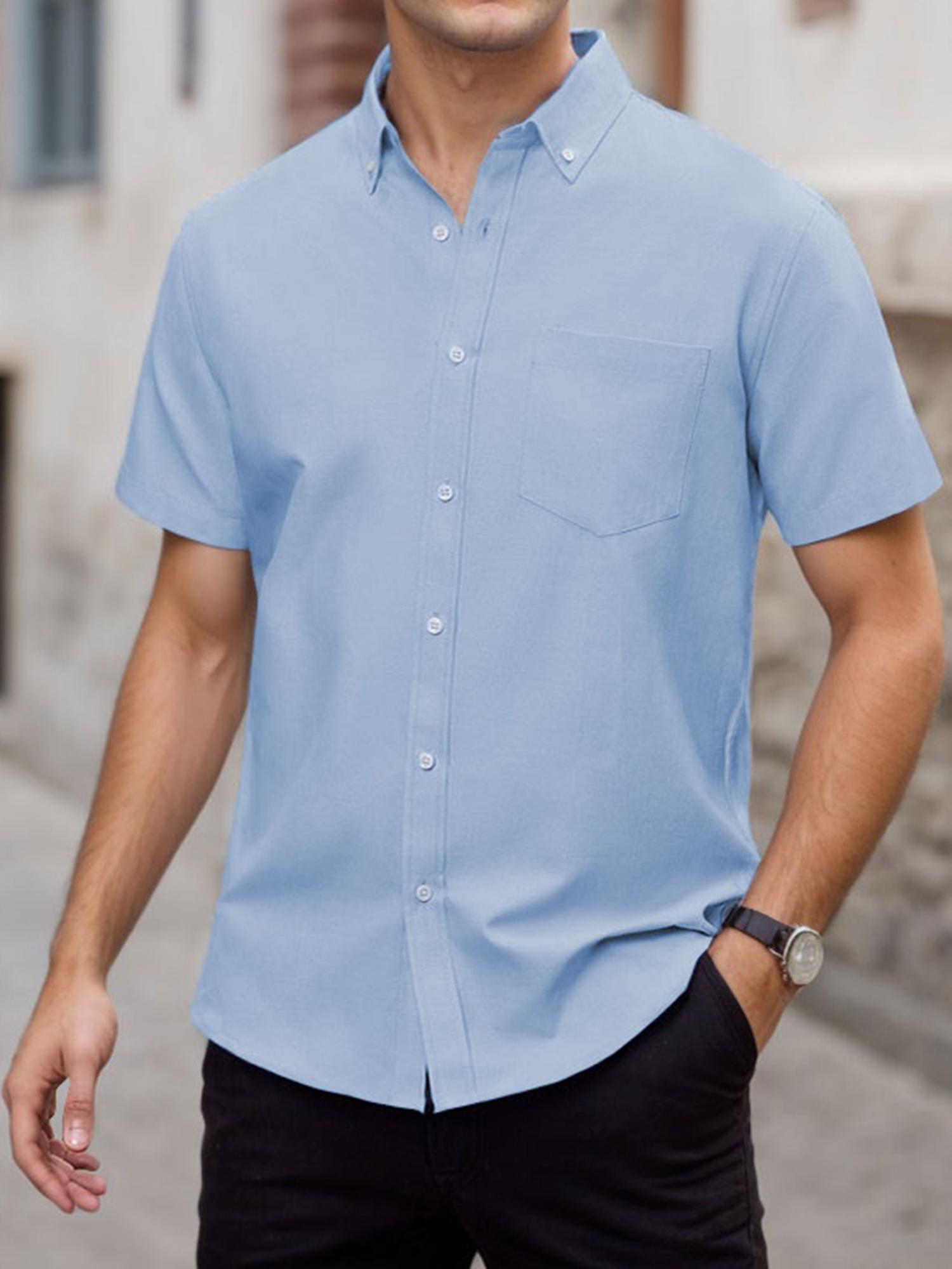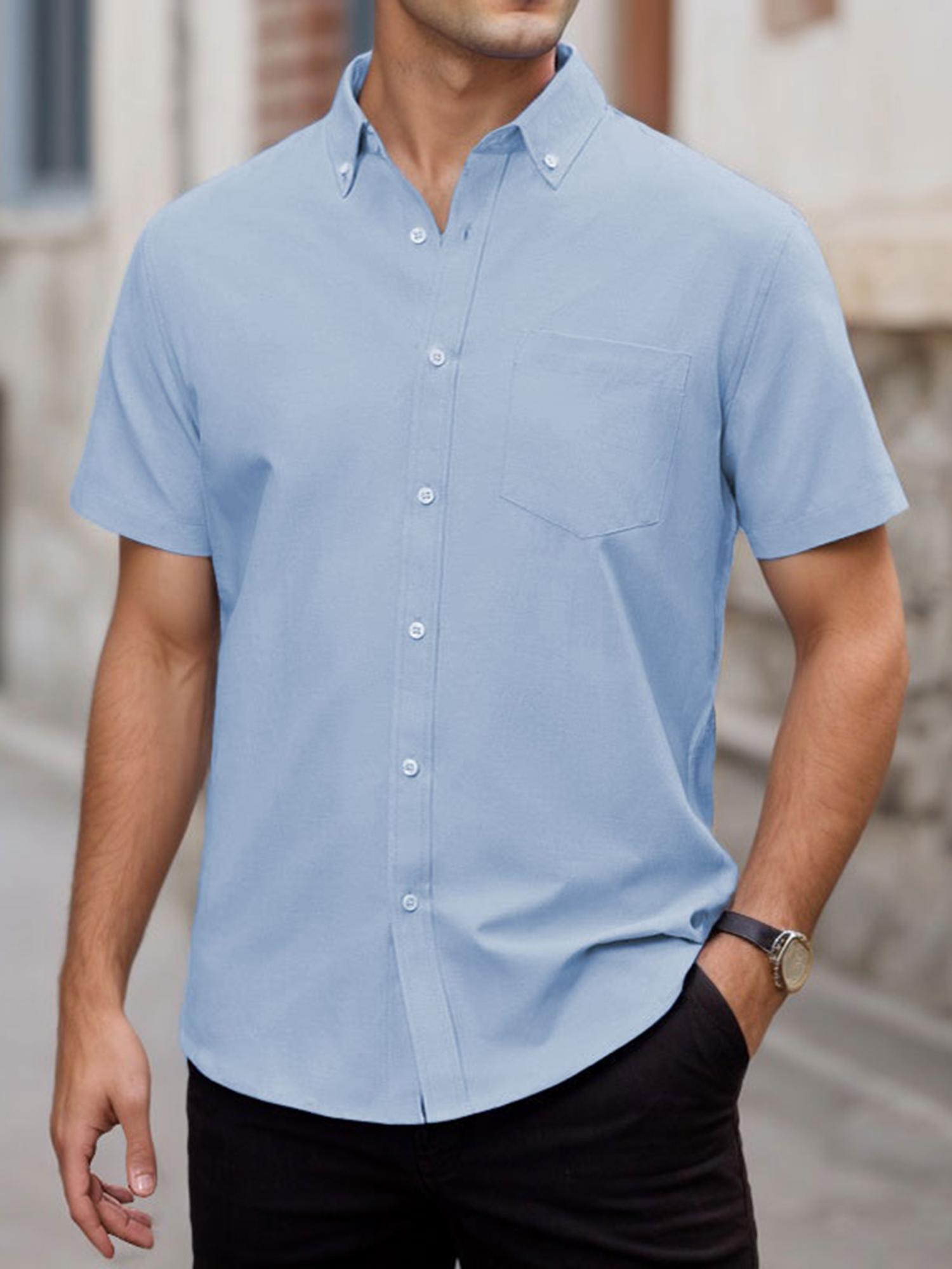 Men's Short Sleeve Shirt Regular Fit Button Down Collar Shirts with Pocket