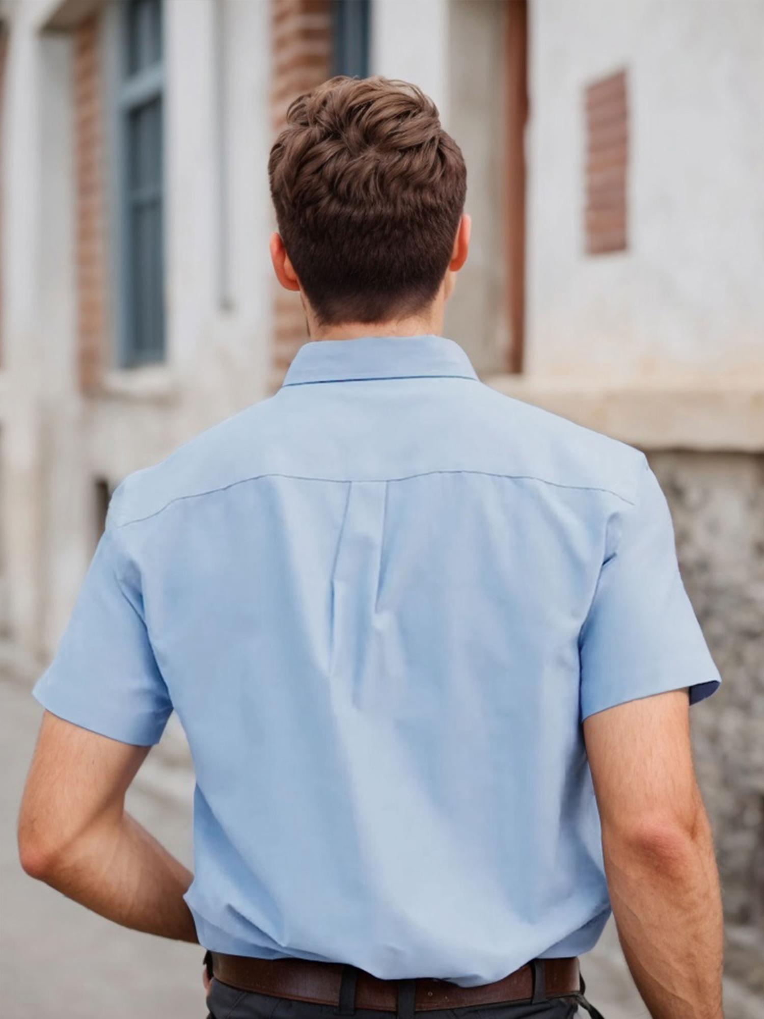 Design: Short sleeves, back pleat, button-front, and left chest pocket for a tailored look and functionality.