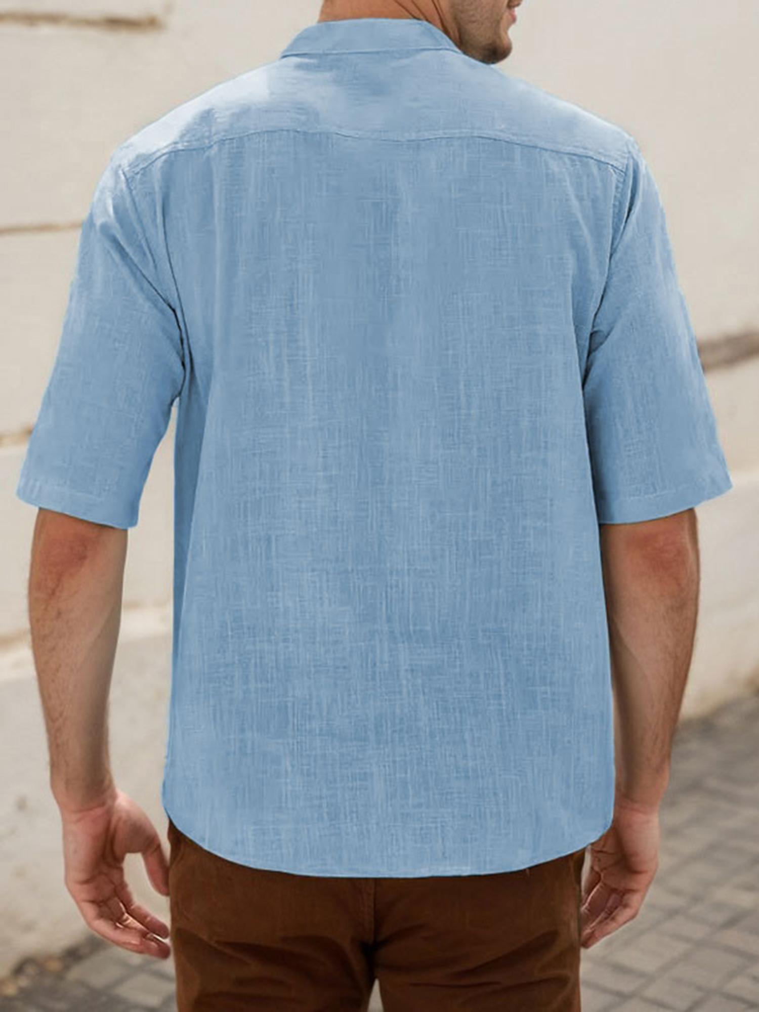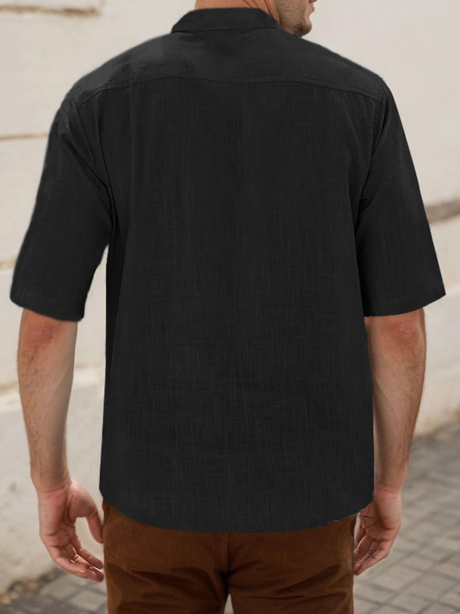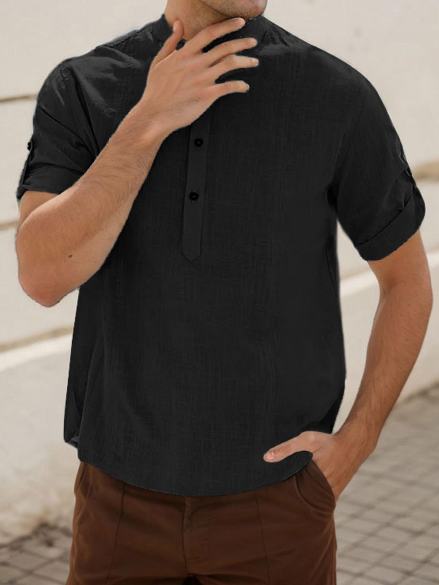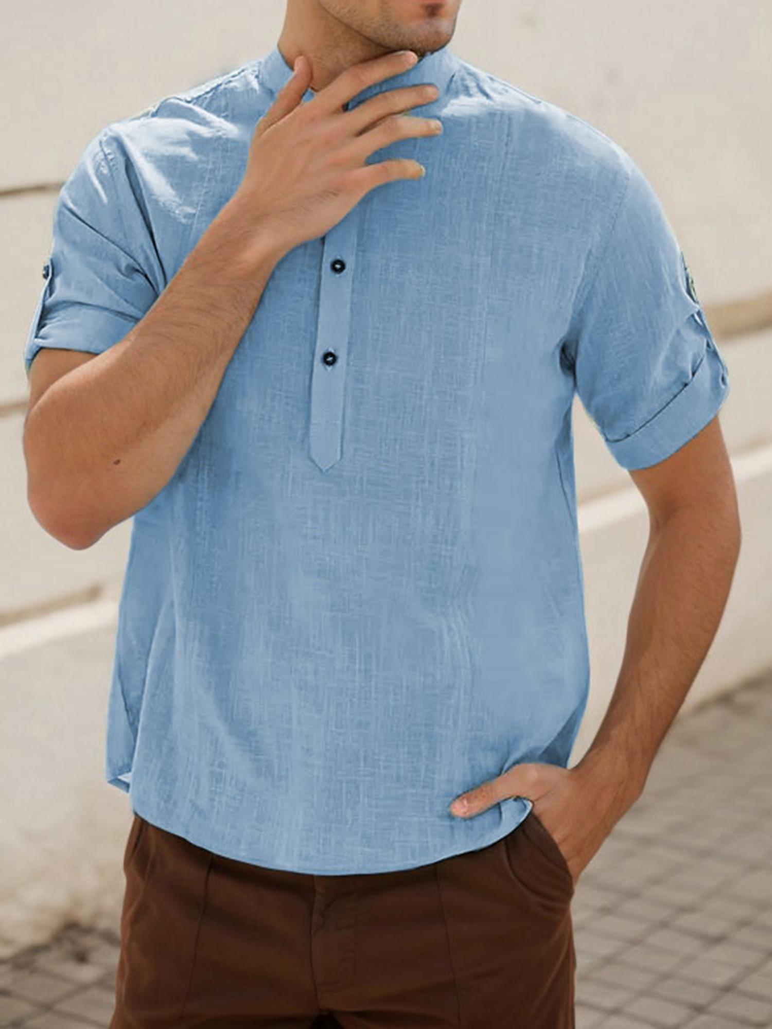 Men's Casual Cotton Short Sleeve Shirt Regular Fit Stand Collar Shirts