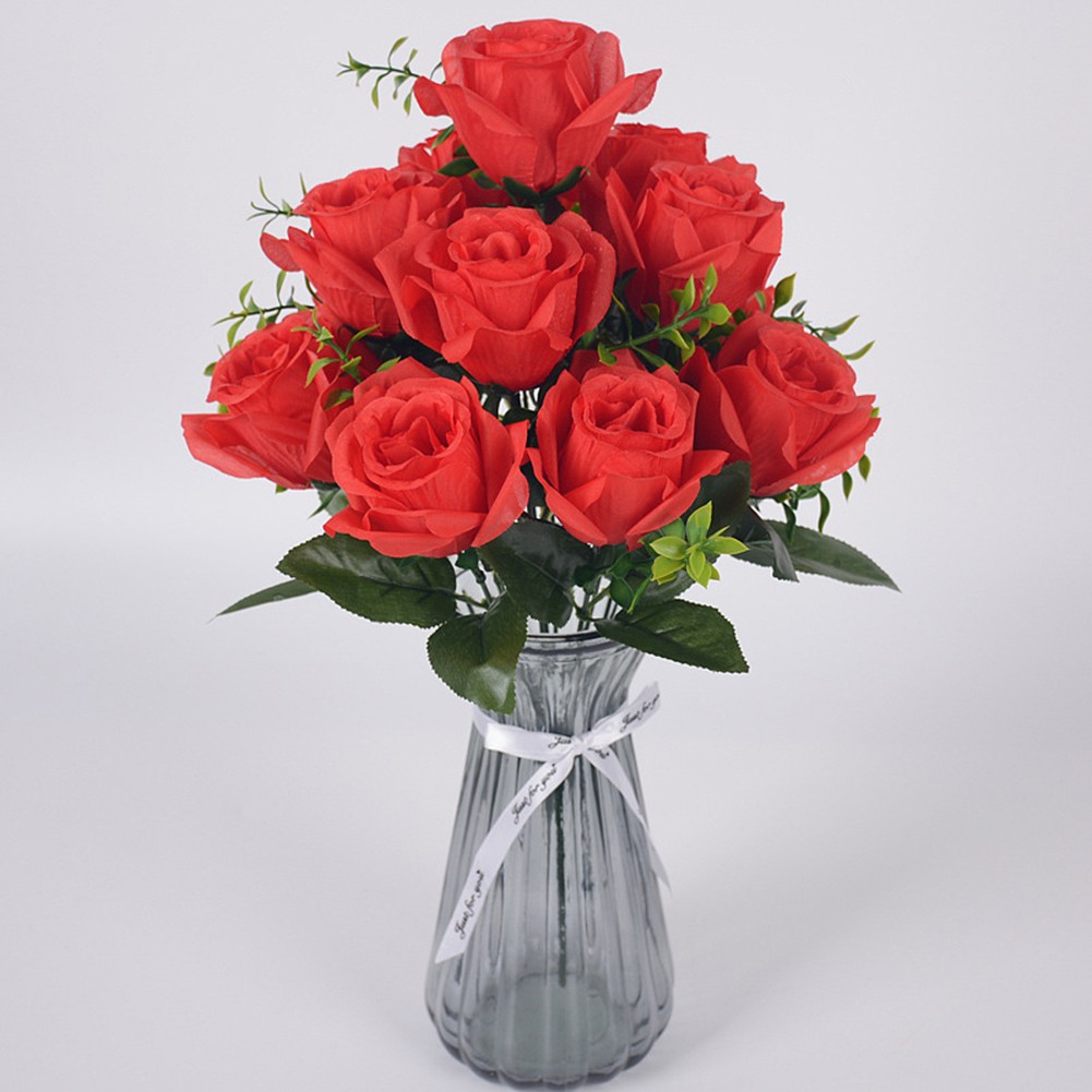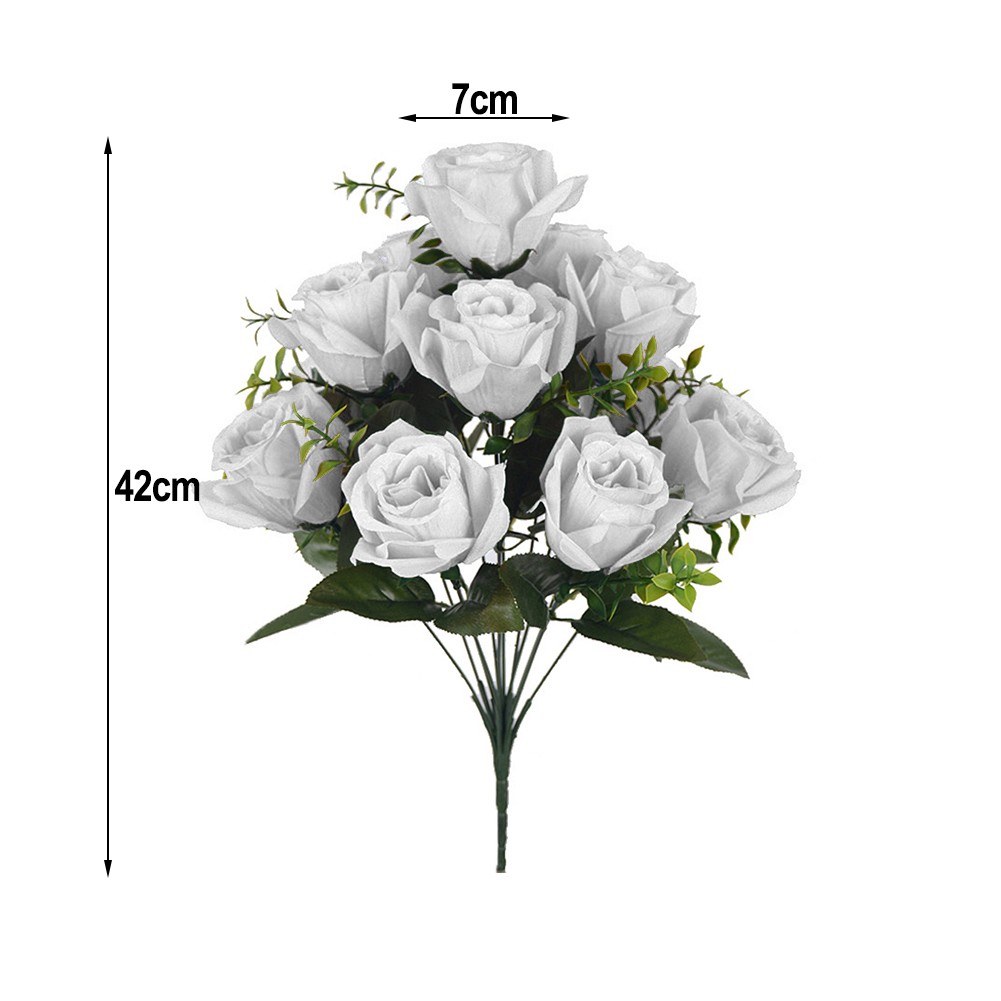 *Realistic Appearance: The artificial rose flowers bouquet features 12 lifelike rose heads, complemented by buds and greenery, creating a full and vibrant look that mimics real flowers beautifully.