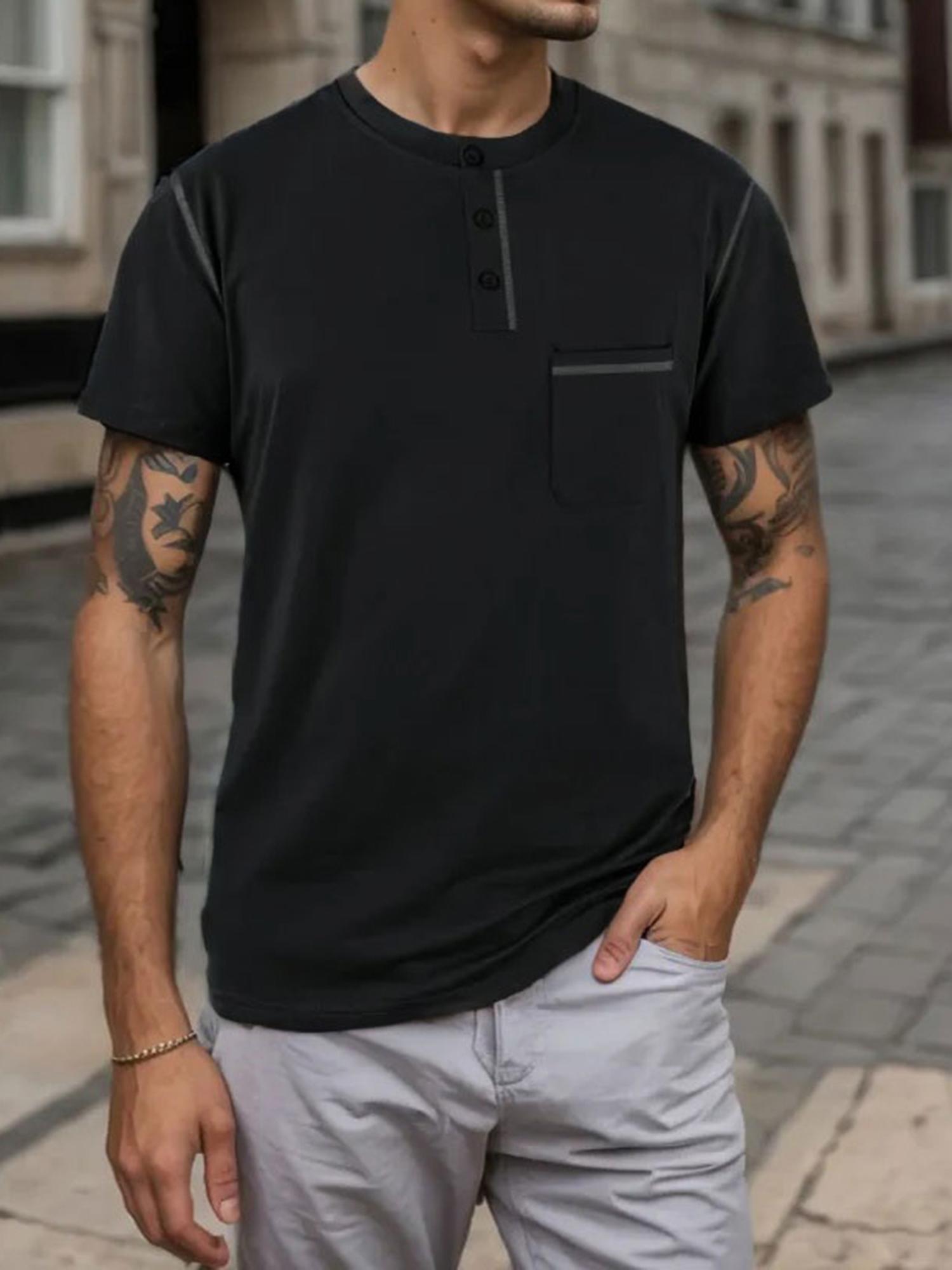 Men's Henley Shirt Classic Short Sleeve Lightweight Button T-Shirt Casual Top