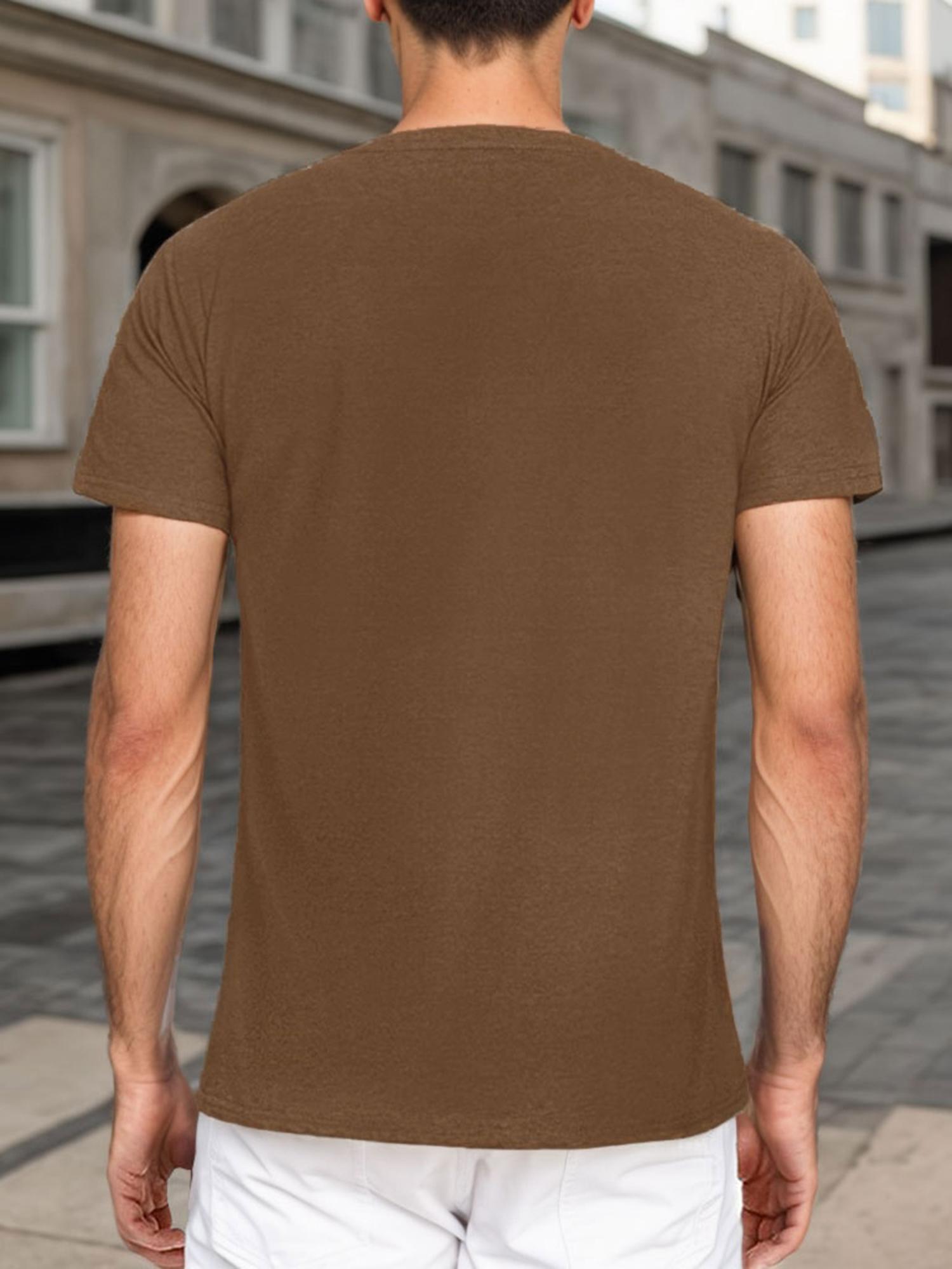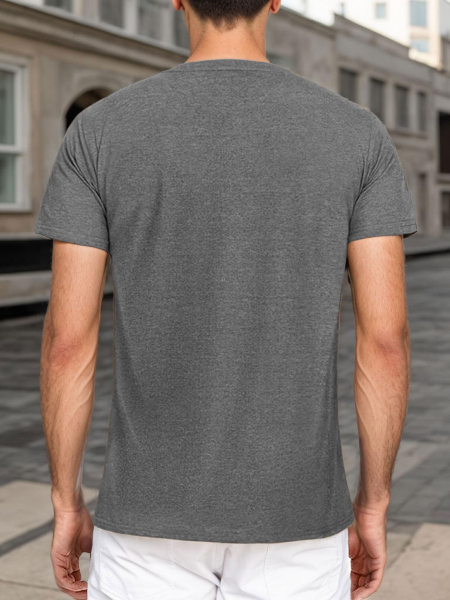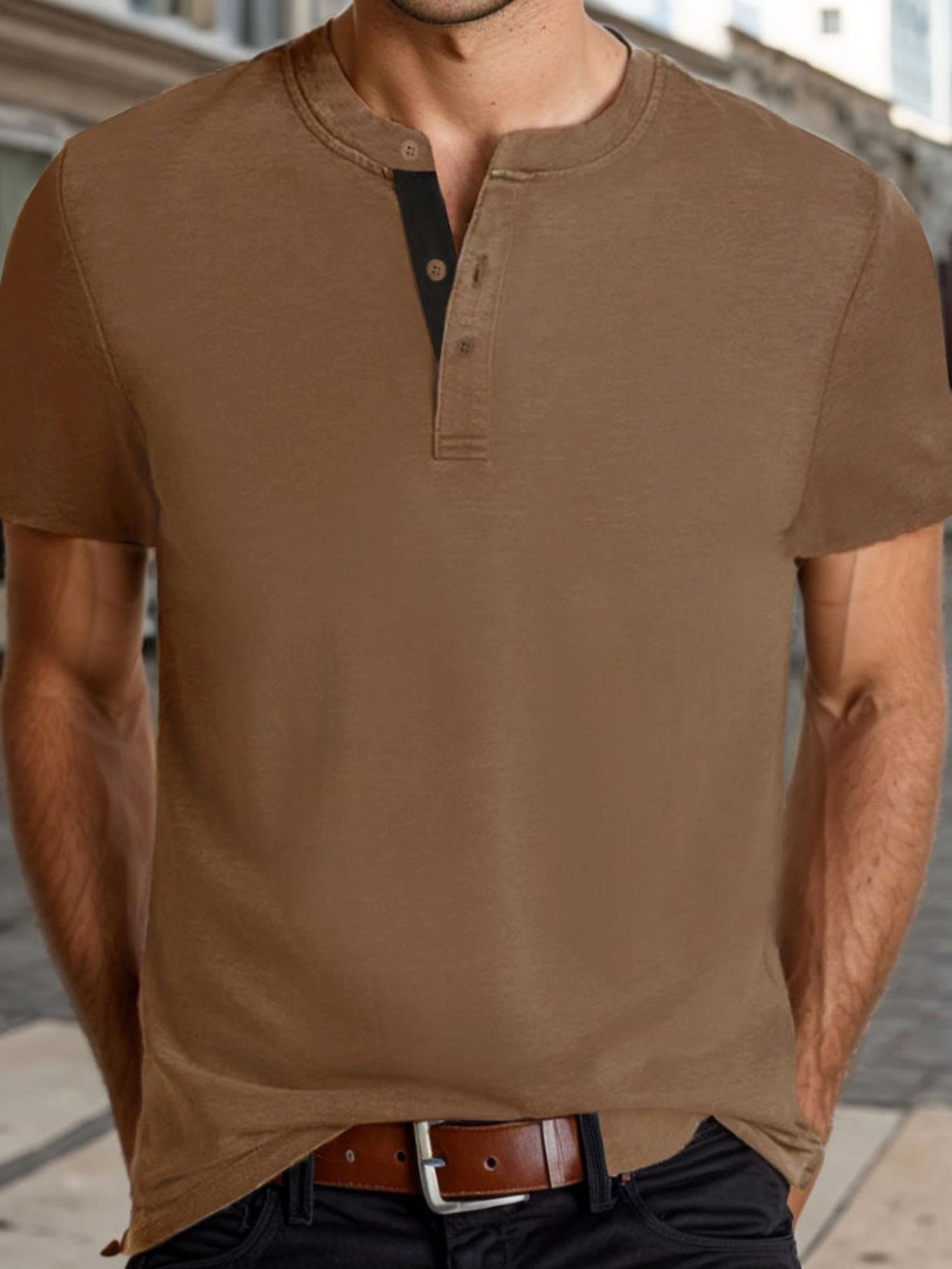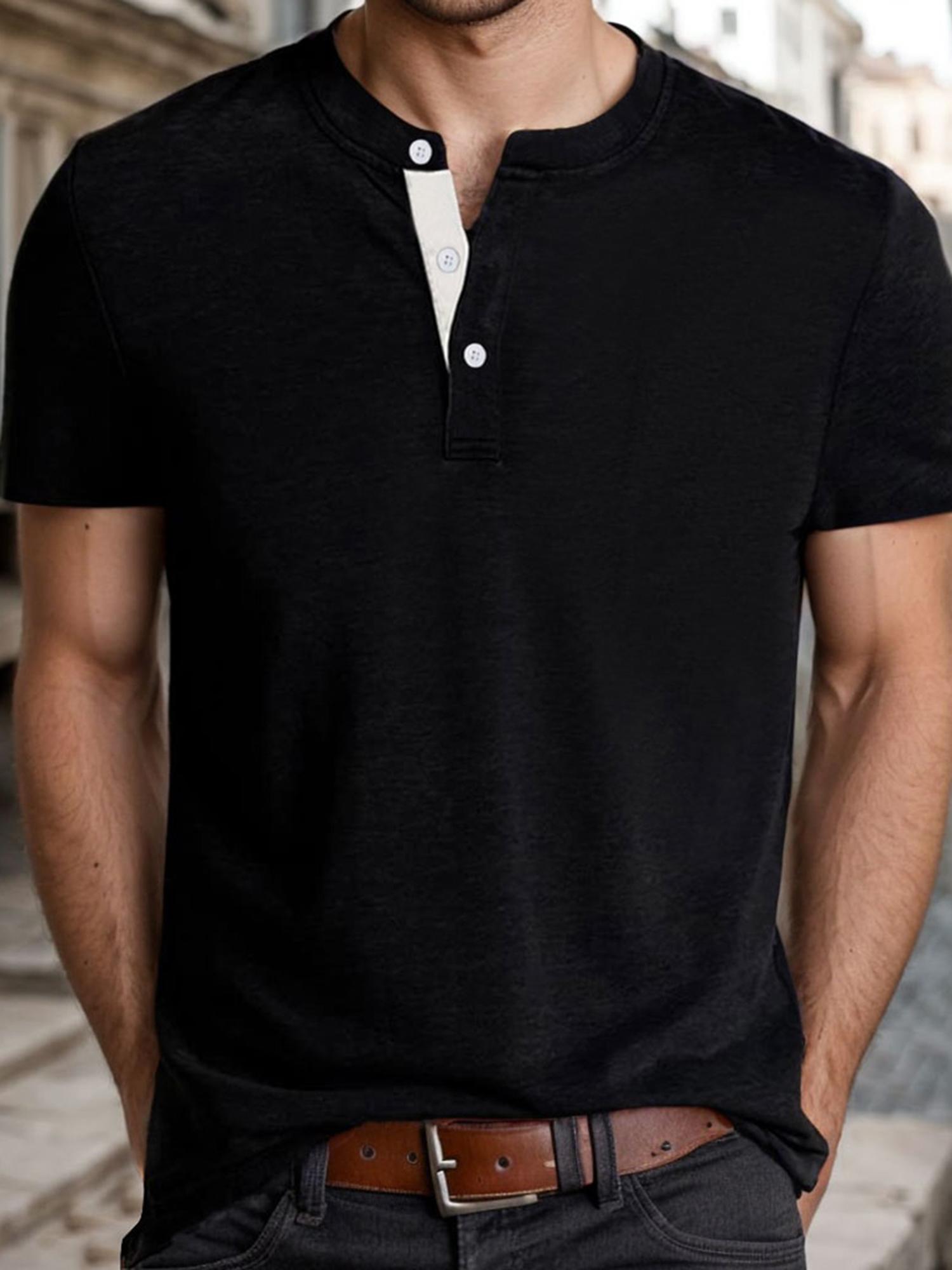 Stylish Design: Features a 3-button placket, chest print, and contrast colors for a modern look.