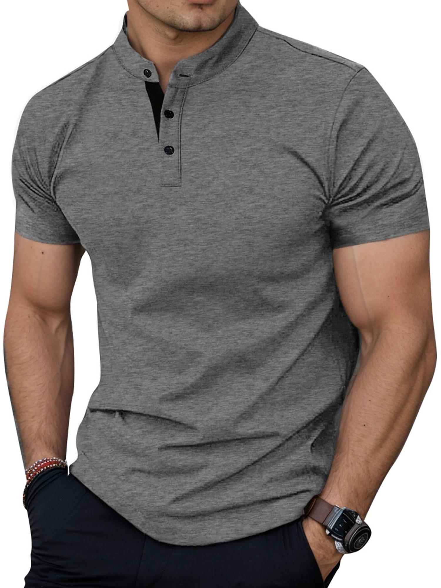Men's Casual Quick Dry Short Sleeve Stand Collar Po lo T-Shirt