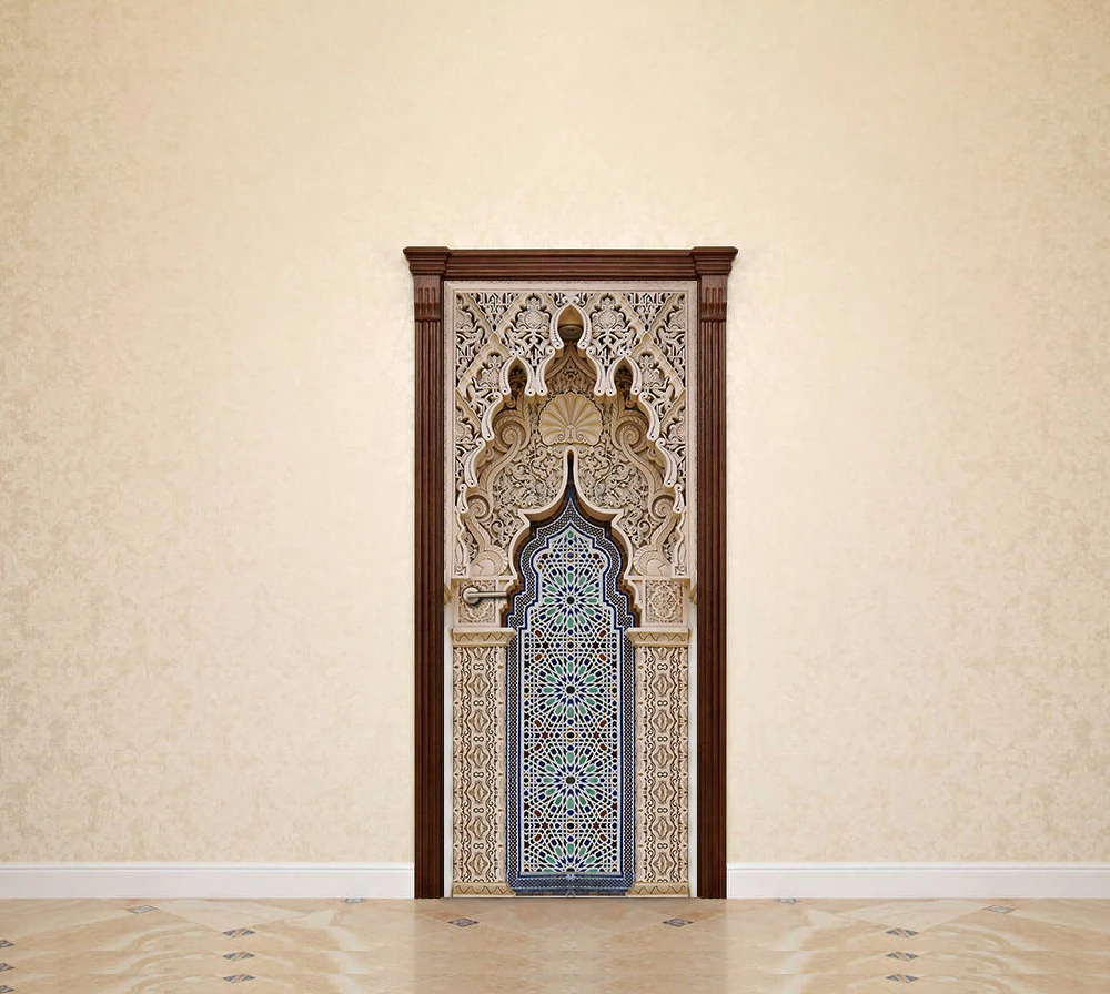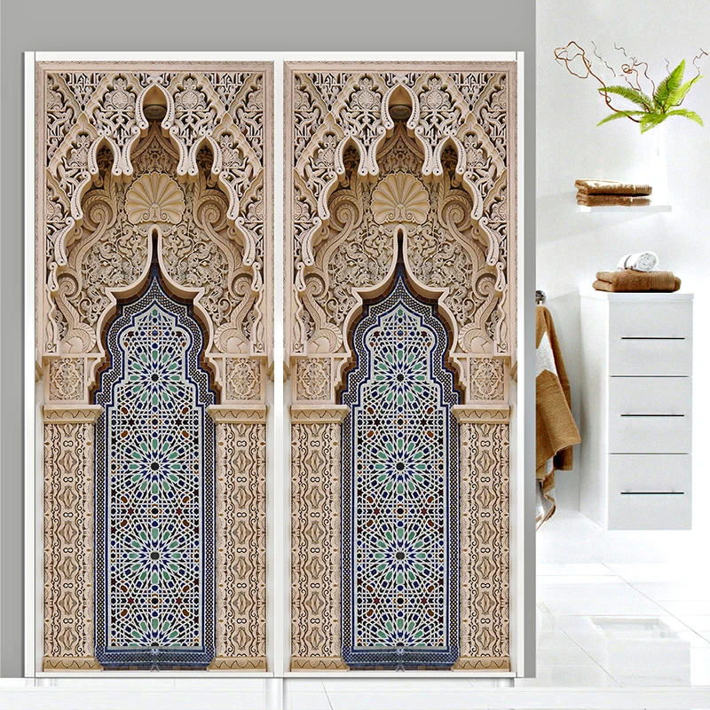 Product Name:New 2pcs/set 3D Pattern Iron Door Art Mural Sticker Home Decor DIY Door Wall Stickers Large Imitation Self-adhesive Door Poster