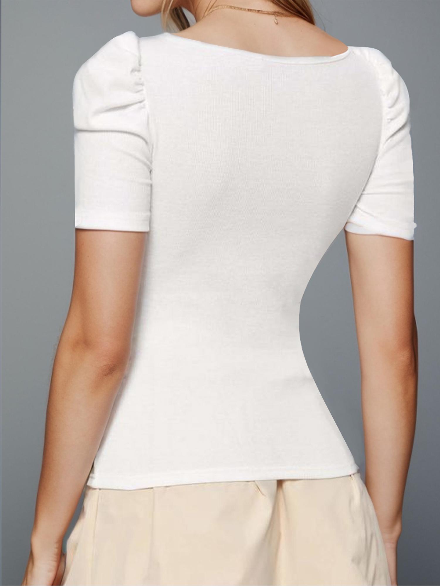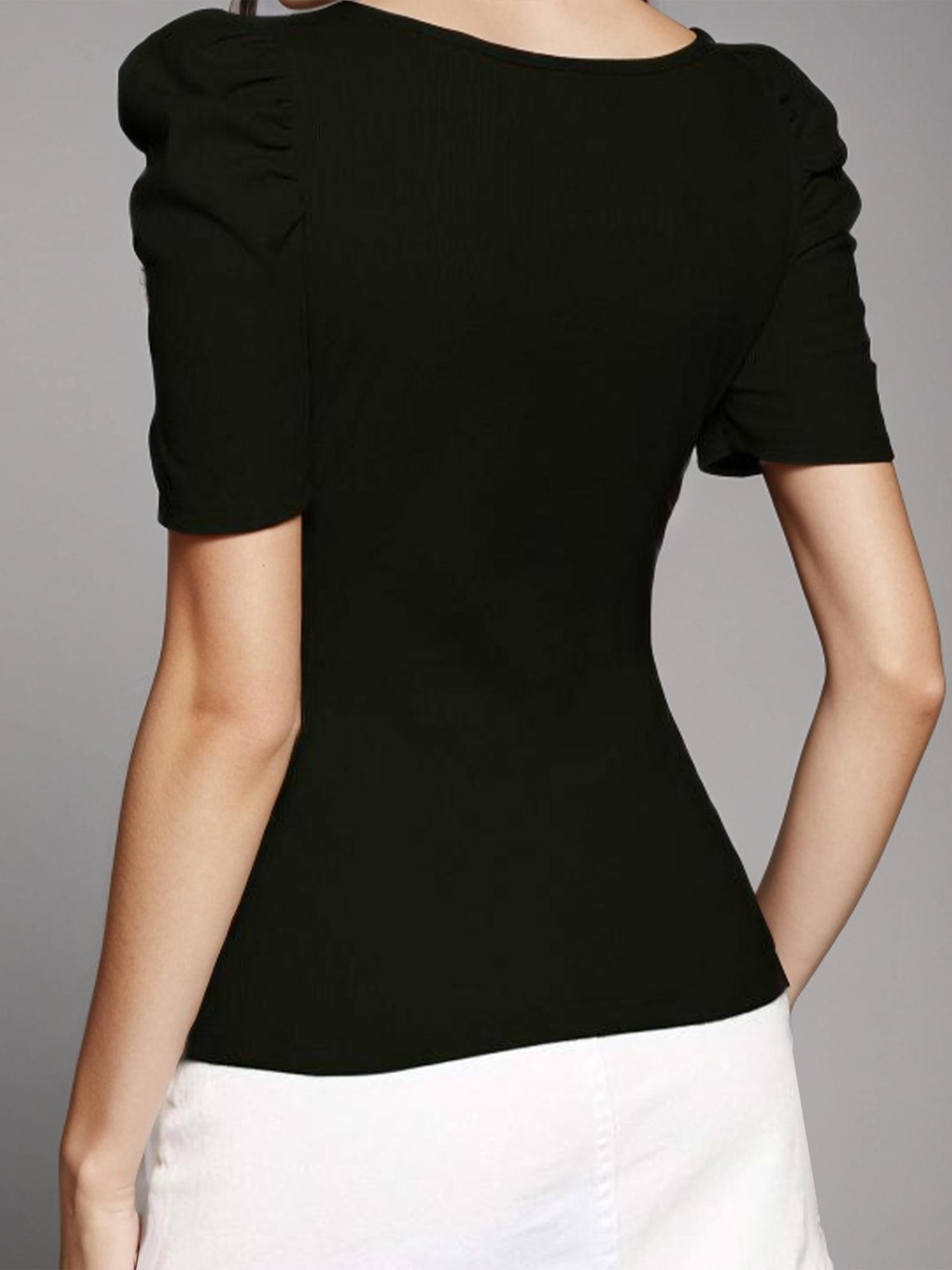 This puff sleeve top is made from soft, skin-friendly fabric, providing comfort and breathability for summer wear.