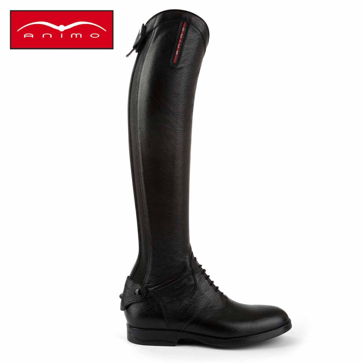 Sportlich eleganter Lederstiefel der Qualitätsmarke Animo. Das Modell Zodiak ist optimal geeignet für Turnier und Training.Das Leder am Schaft ist besonder weich und passt sich der Wade optimal an, da der Schaft kein Innenfutter besitzt,empfehlen den Stiefel recht eng zu bestellen.