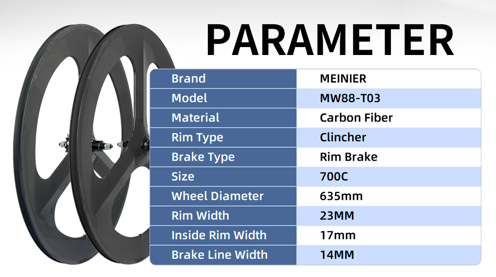 Erleben Sie die optimale Balance zwischen Leichtigkeit und Stabilität mit dem MEINIER 700c Laufradsatz für Zeit-/Triathlonfahrräder, Rennräder und Straßenrennrad. Das hochwertige 3-Speichen-Carbonradsatz-Design sorgt für ein aerodynamisches Fahrgefühl und erhöht Ihre Geschwindigkeit auf jedem Terrain. Die glänzende Oberfläche verleiht Ihrem Fahrrad einen edlen Look, während die robuste Konstruktion aus Kohlenstoff/Carbon und einer Gewichtsersparnis von bis zu 1170 g Ihnen ein unvergleichliches Fahrerlebnis bietet. Ob beim Training oder beim Wettkampf, dieses Laufradsatz-Set (vorne & hinten) ist die perfekte Wahl für anspruchsvolle Radfahrer.