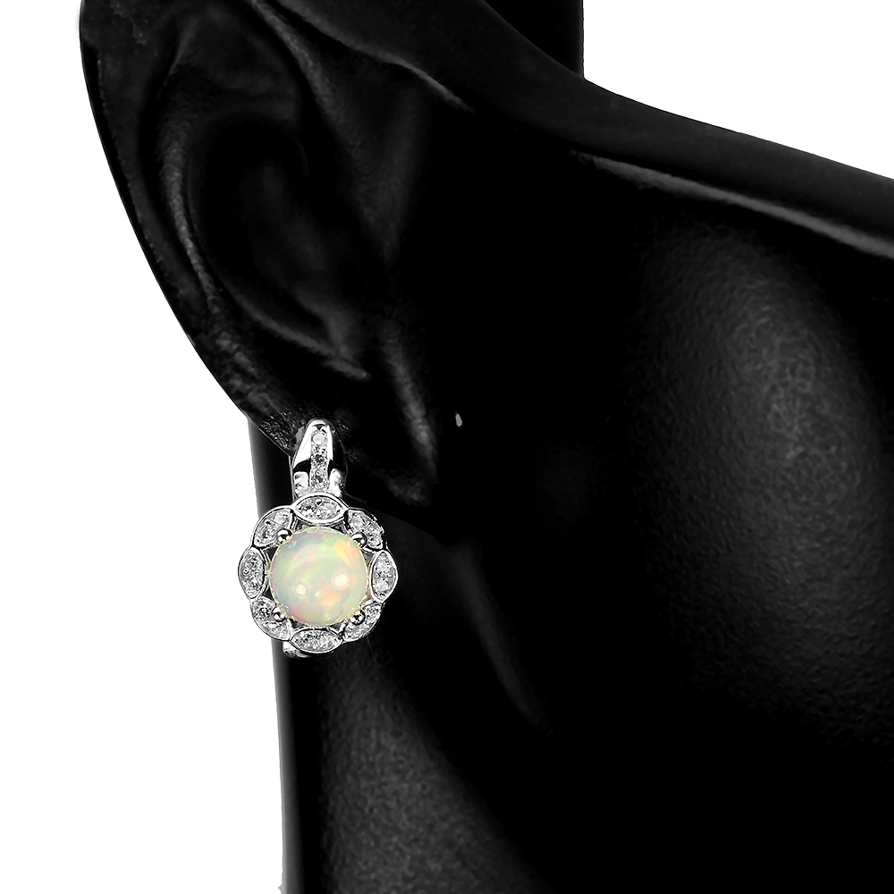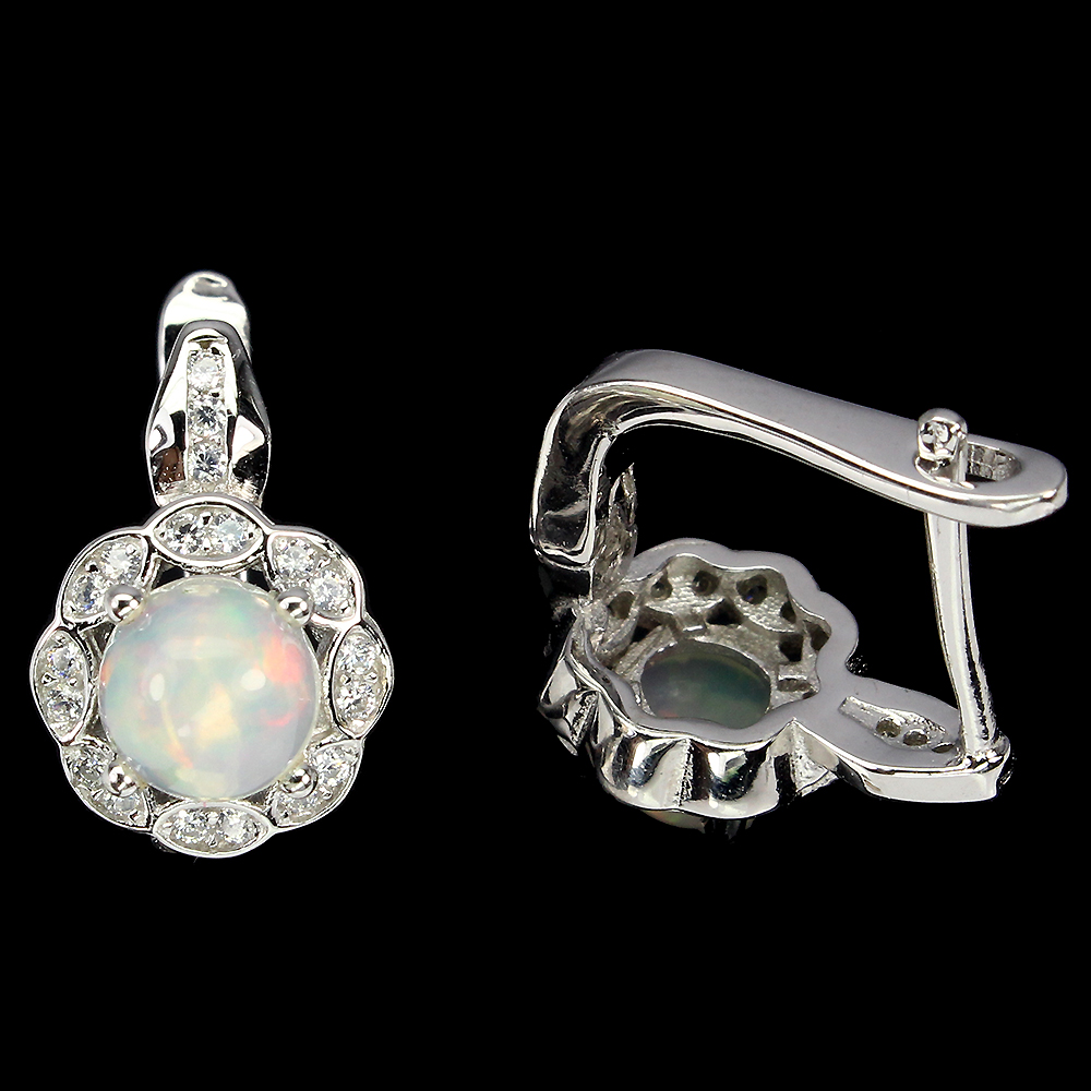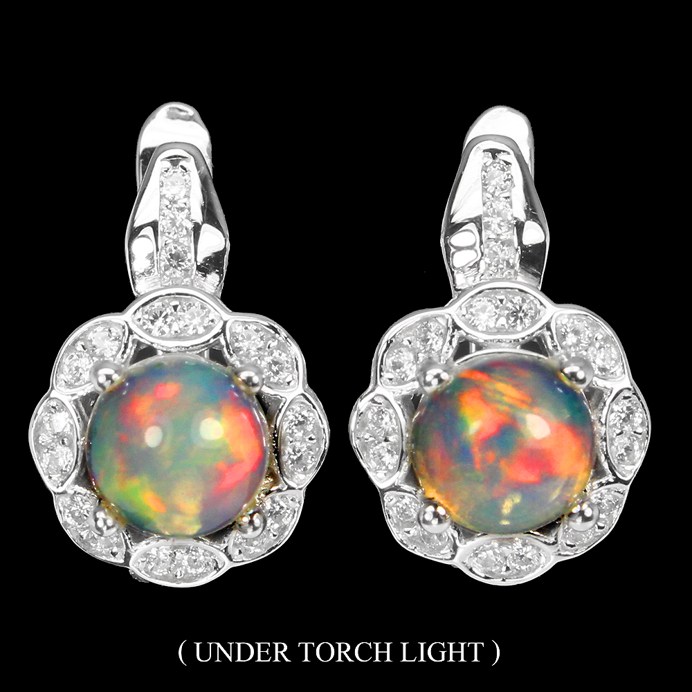 Unheated Round Fire Opal Rainbow Full Flash 6mm Cz 925 Sterling Silver Earrings