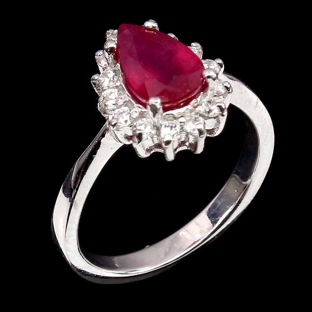 Pear Red Ruby 9x6mm Cz 14K White Gold Plate 925 Sterling Silver Ring Size 7
