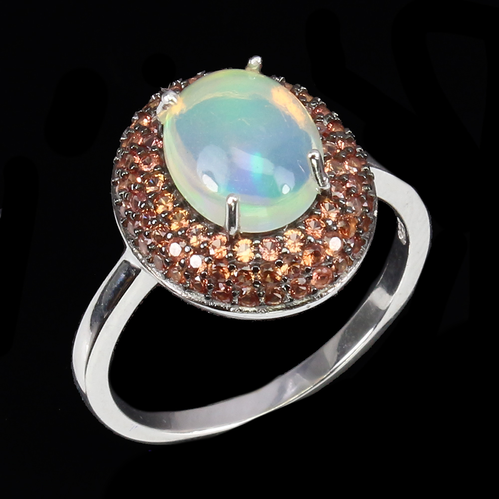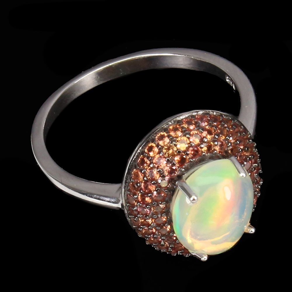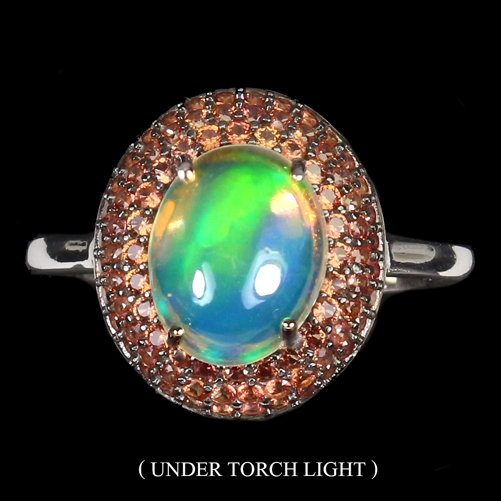 Unheated Oval Fire Opal 10x8mm Sapphire Diamond Cut 925 Sterling Silver Ring 8