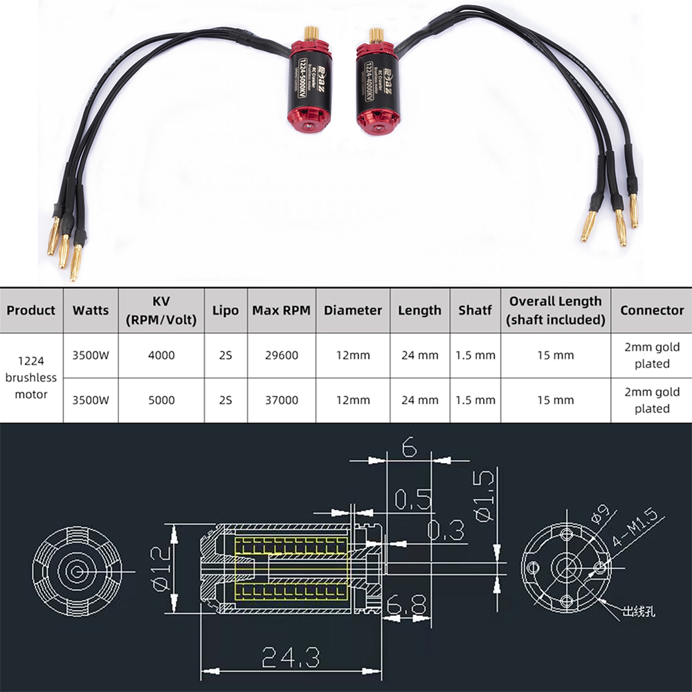 1224-3600KV Motor Specifications: