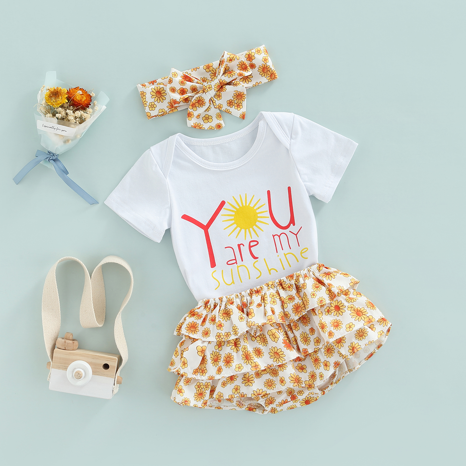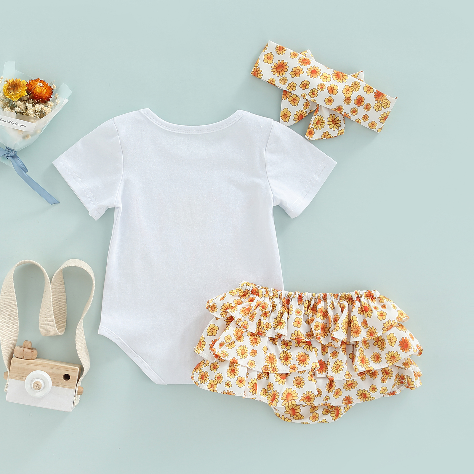 Material: Cotton Color: White Size: 0-6 Months, 6-9 Months, 9-12 Months, 12-18 Months Gender: Girls Sleeve: Short Sleeve Pattern: Letter, Floral Quantity: 3 Pcs Occasion: Great for birthday, party, daily wear, photography, etc.