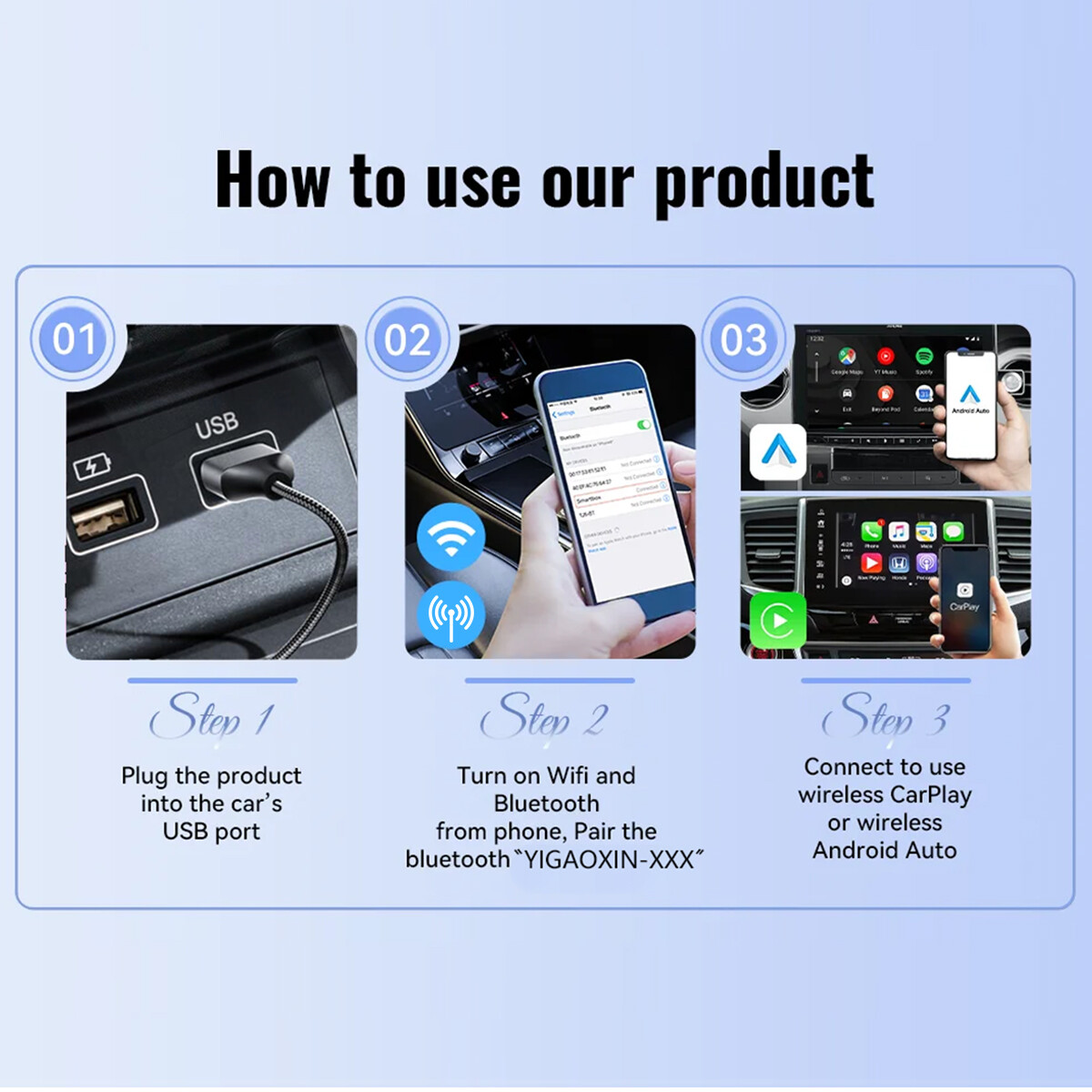 【2025 New 2-in-1 Wireless CarPlay Adapter & Android Auto Wireless Adapter 】 2-in-1 CarPlay Wireless adapter supports wireless CarPlay and Android Auto on one device. It converts your car's original wired CarPlay to wireless for cable-free convenience. You can continue to use full CarPlay functionality and keep the original car operations such as navigation, music playback, Siri assistant, phone, and more. It can add more fun to your trip.