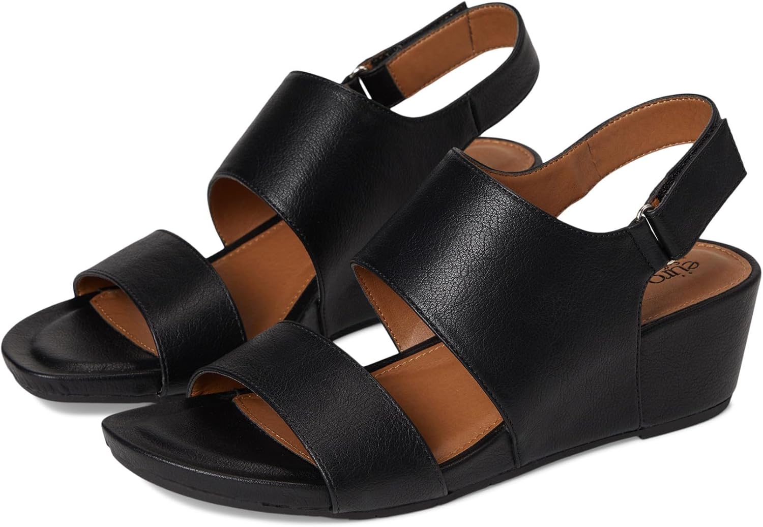 two piece upper, adjustable sling, hook and loop adjustability, cork wrapped wedge, full coverage, flexible outsole