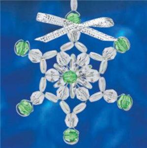 CRYSTAL SNOWFLAKES With Green Bead Tips Ornaments KIT, Set of 24 Ornaments