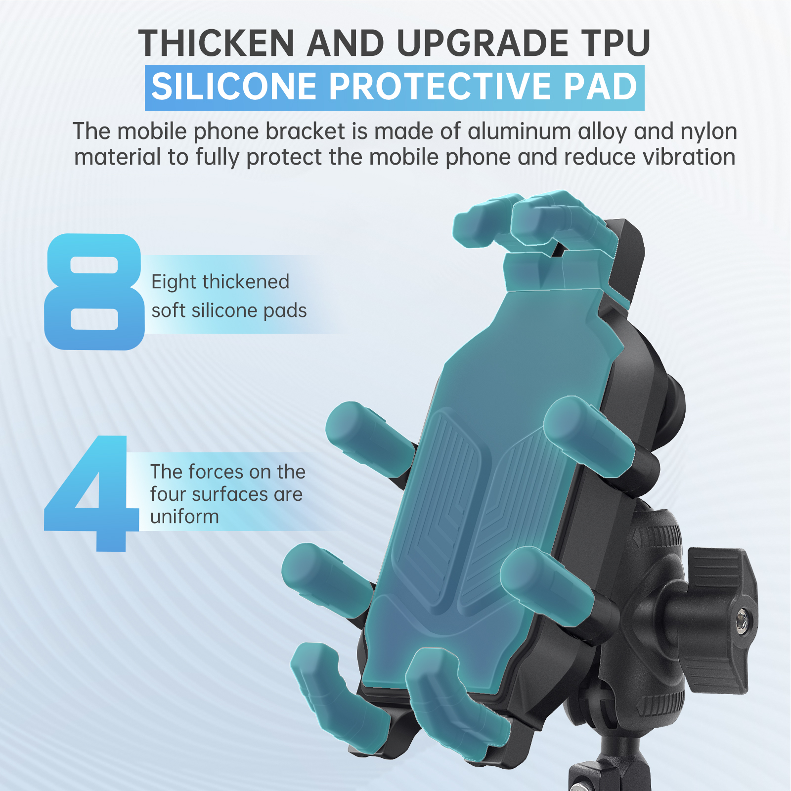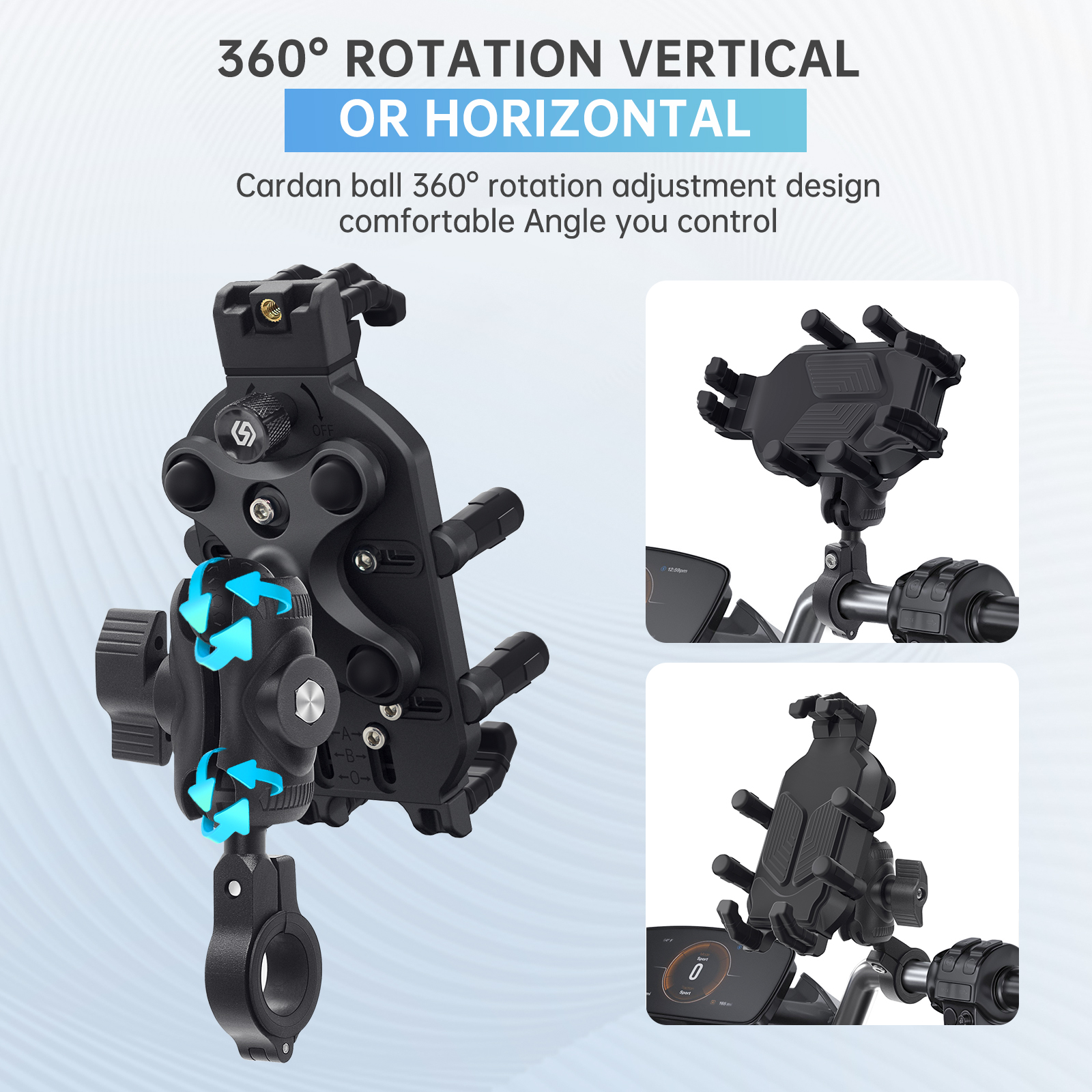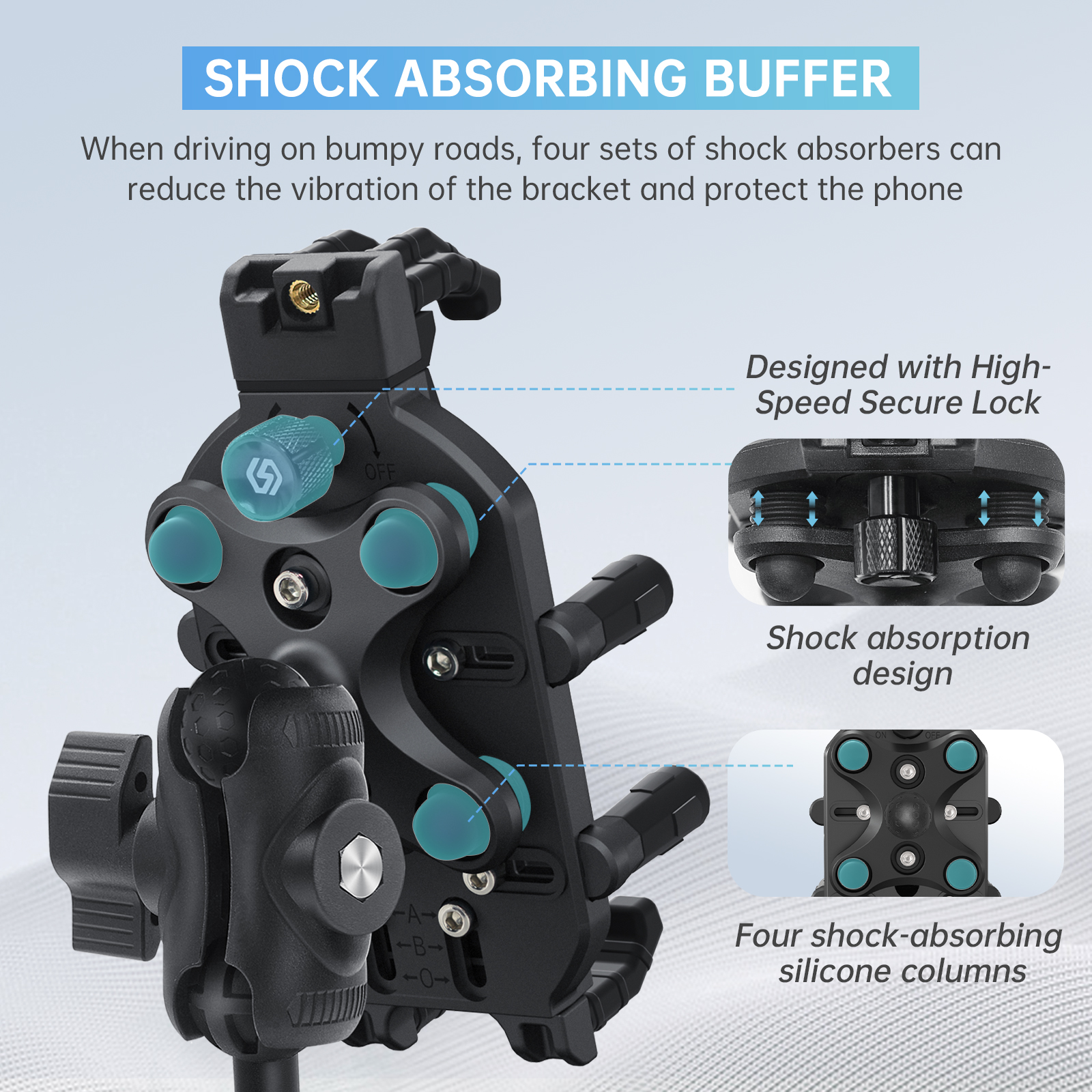 Motorcycle Bike Cell Phone Holder Shock-absorbing Handlebar Mount 360 ° Rotation