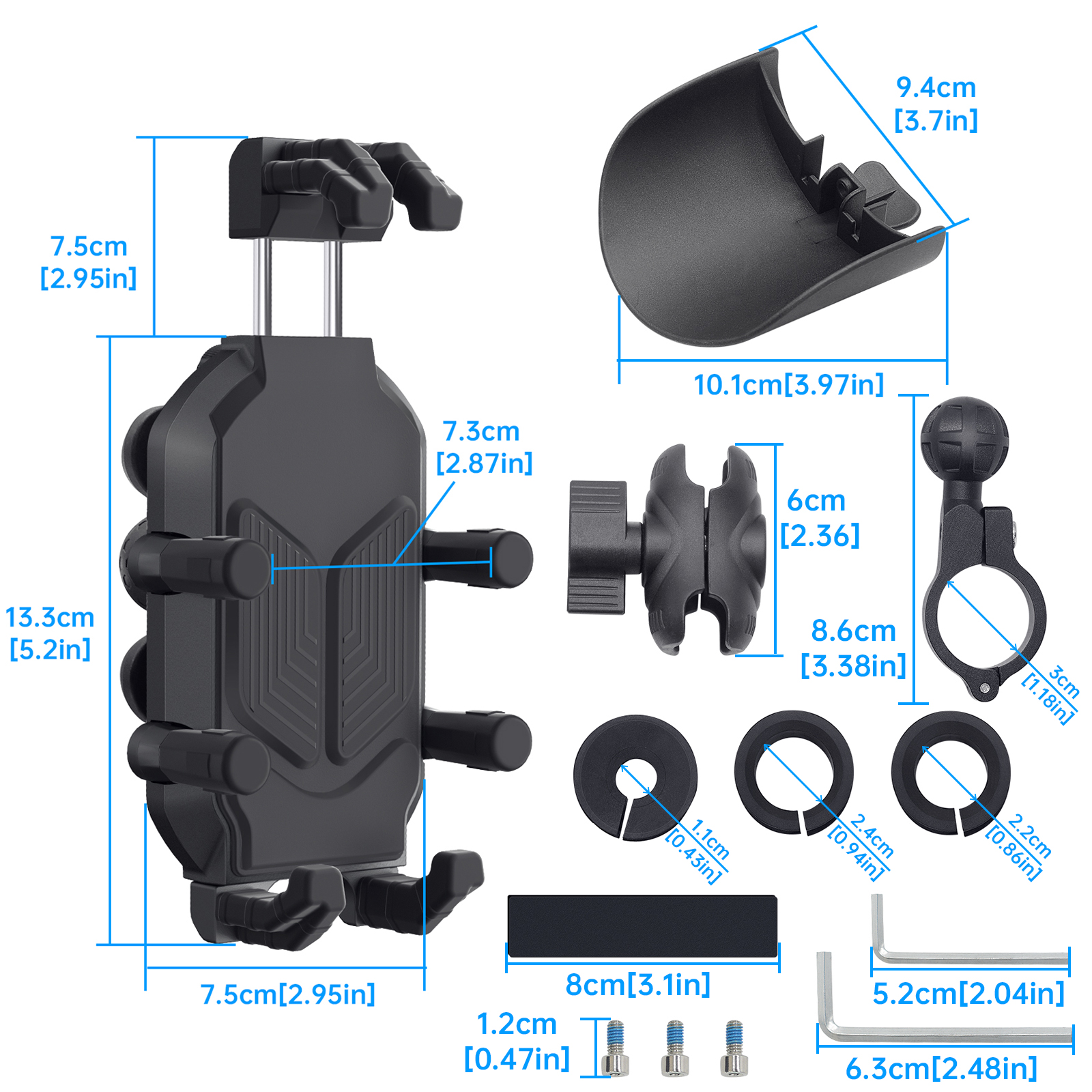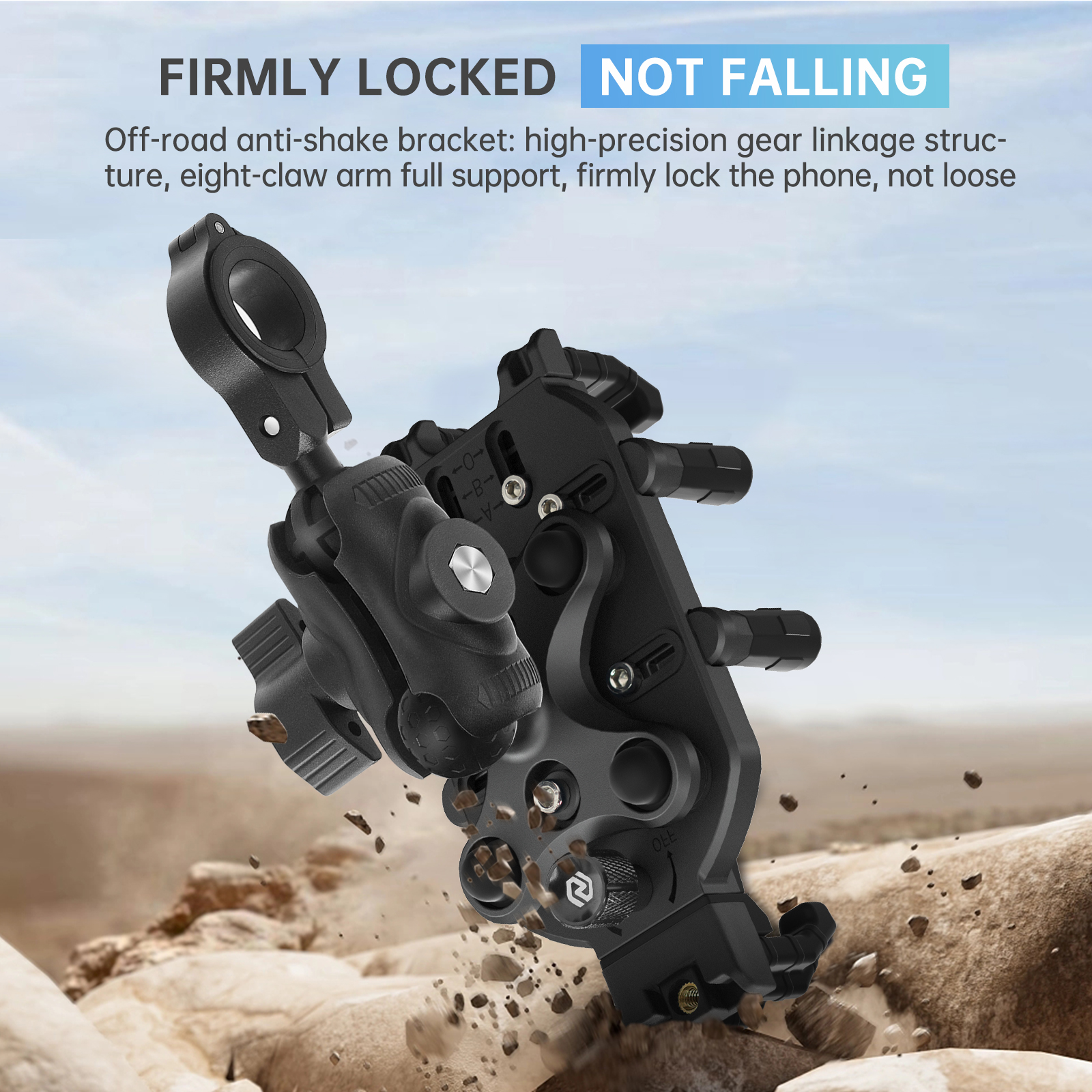 l Cross-country level anti-shaking bracket: high-precision gear linkage structure, eight claws clamping arm all-around support, firmly lock the phone, do not come loose