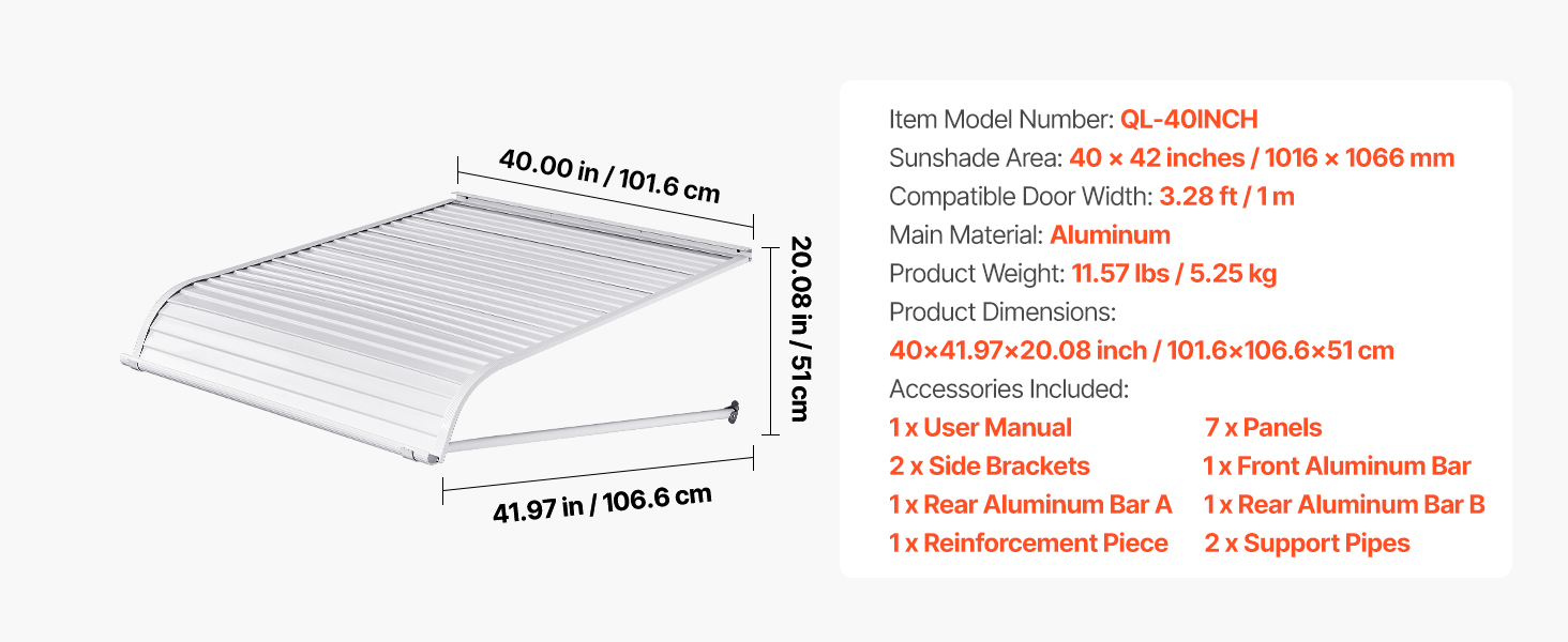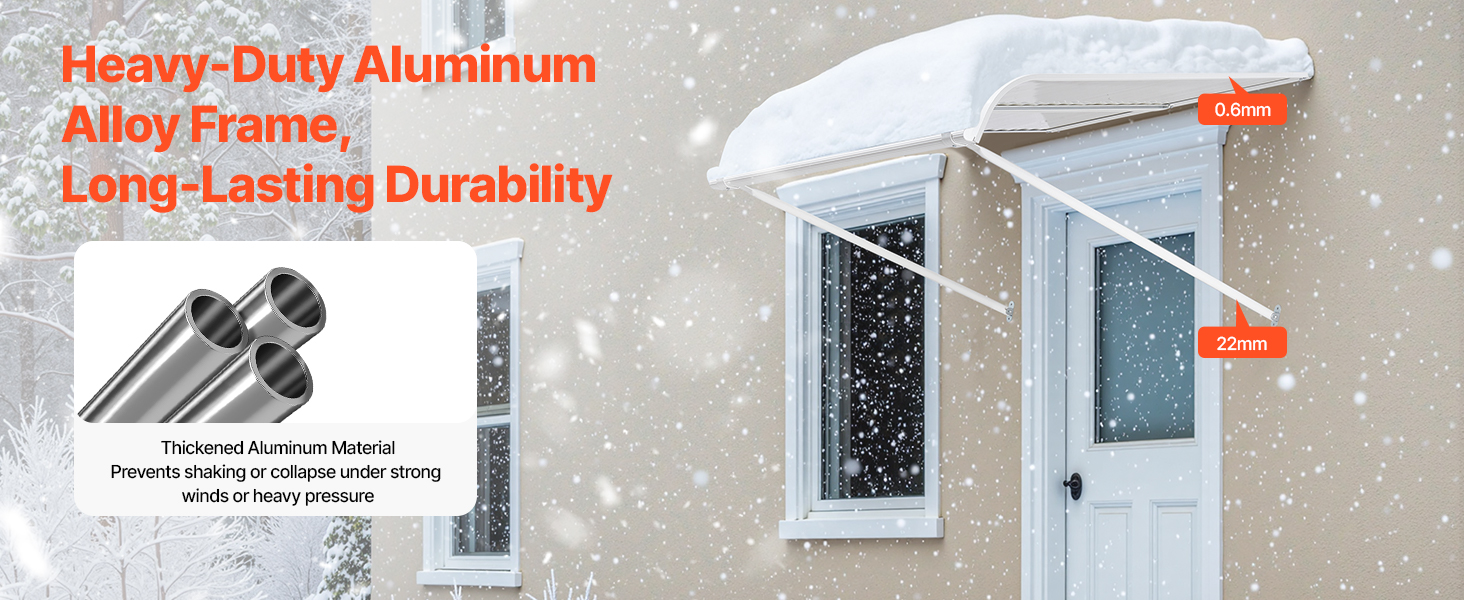 • Reinforced Aluminum Alloy Construction: With 0.6mm aluminum sheets and a heavy-duty frame, featuring 22mm thick support rods, this door window awning is built to last. Whether it’s scorching heat or a snowstorm, you can rely on it for long-term, durable protection.
