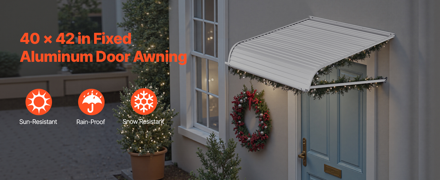 • All-Season Protection: The 40x42-inch fixed metal door awning offers strong protection against sun, rain, and snow, preventing sunlight damage to car paint and doors while keeping your outdoor items safe from the elements.