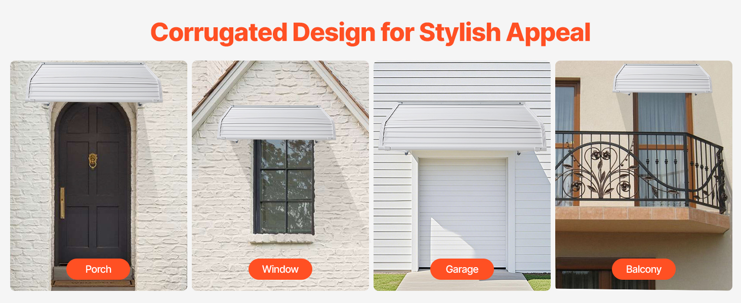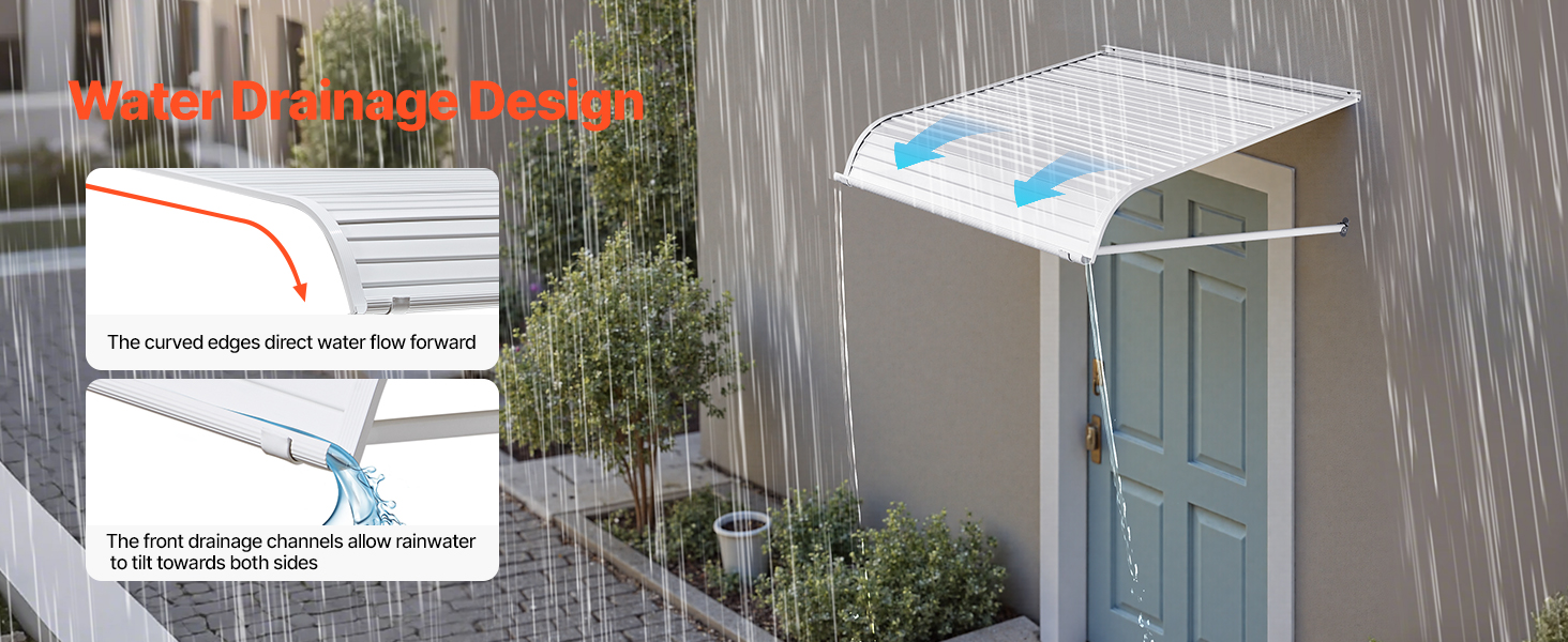 • Smart Water Flow Design: The window awning door canopy features curved edges and drainage system that effectively channel rainwater, preventing water accumulation and keeping the canopy clean and dry. The 7.87-inch (20 cm) wide aluminum ripple panels are tightly connected, ensuring no leaks even on rainy days.