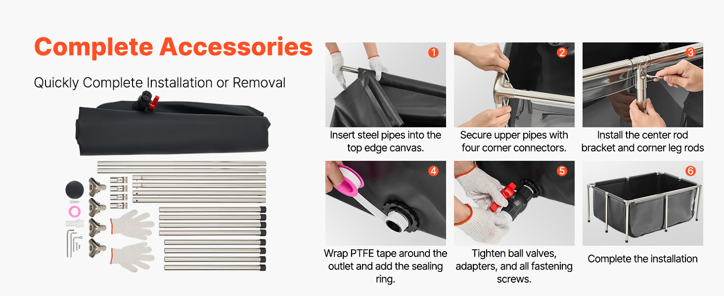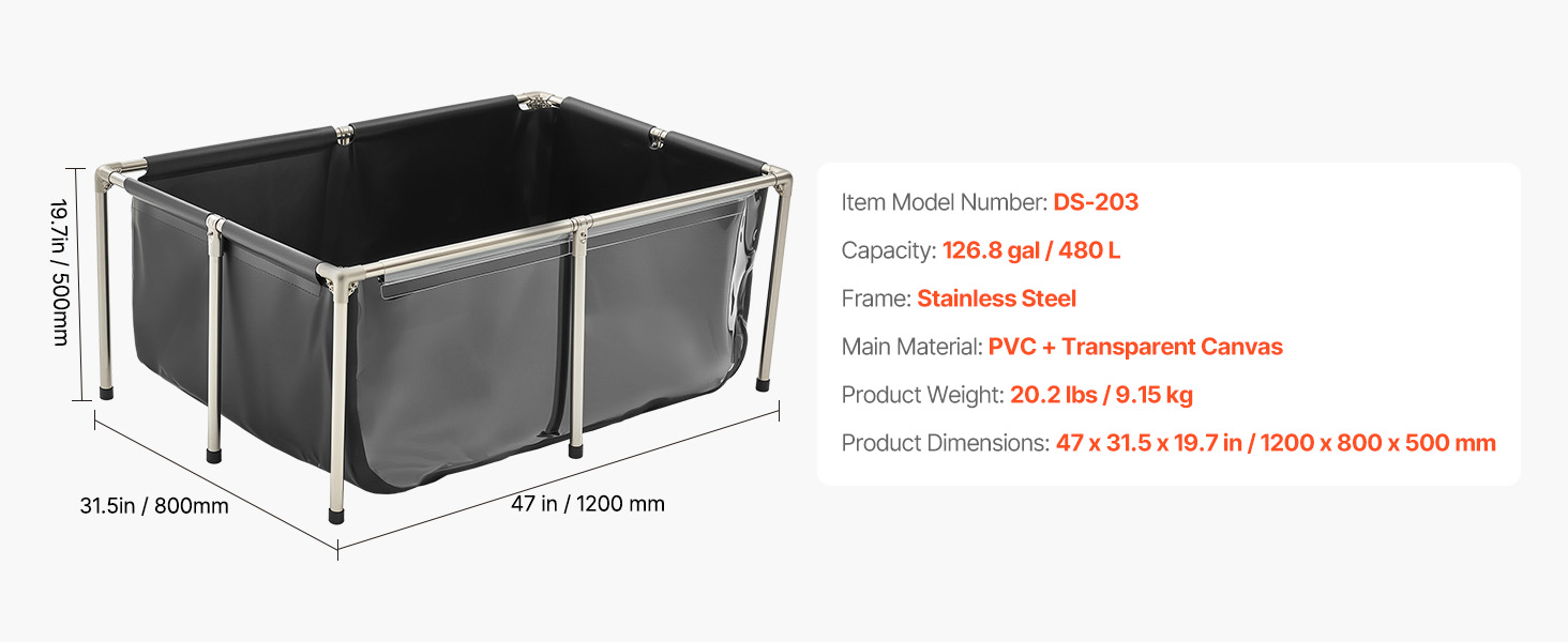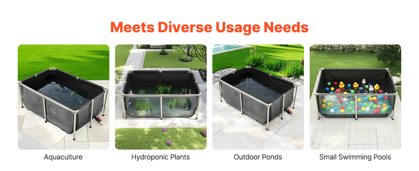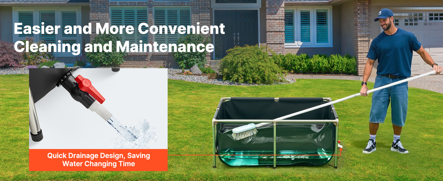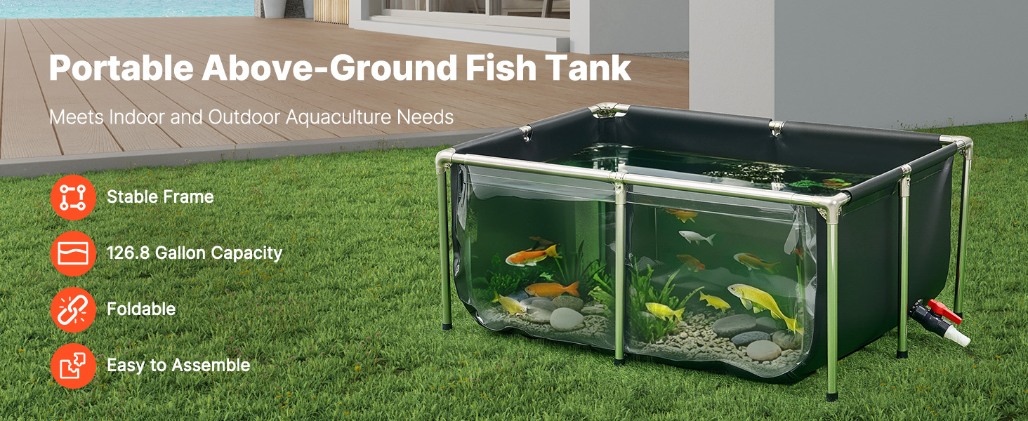 Made of thickened PVC fabric and high-transparency PVC, the pond is tear-resistant with seamless, waterproof stitching. With rust-resistant stainless steel pipes and a 126.8-gallon capacity, it’s ideal for indoor and outdoor use for koi, goldfish, shrimp, crabs, etc.